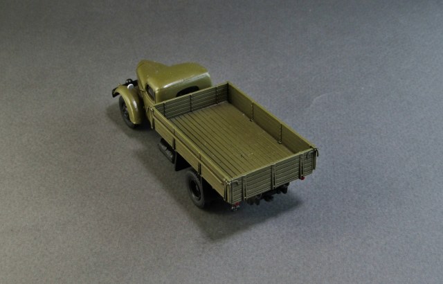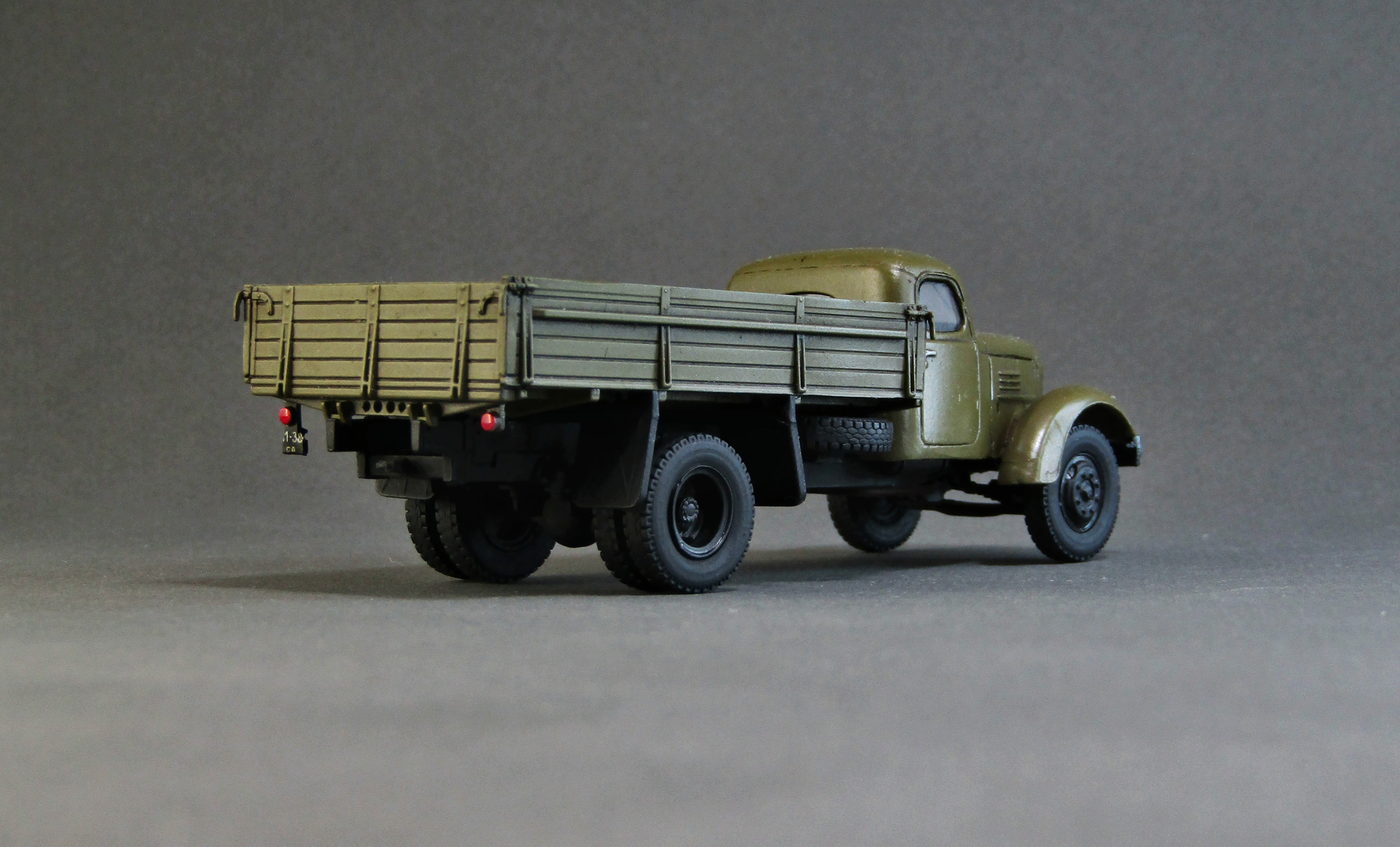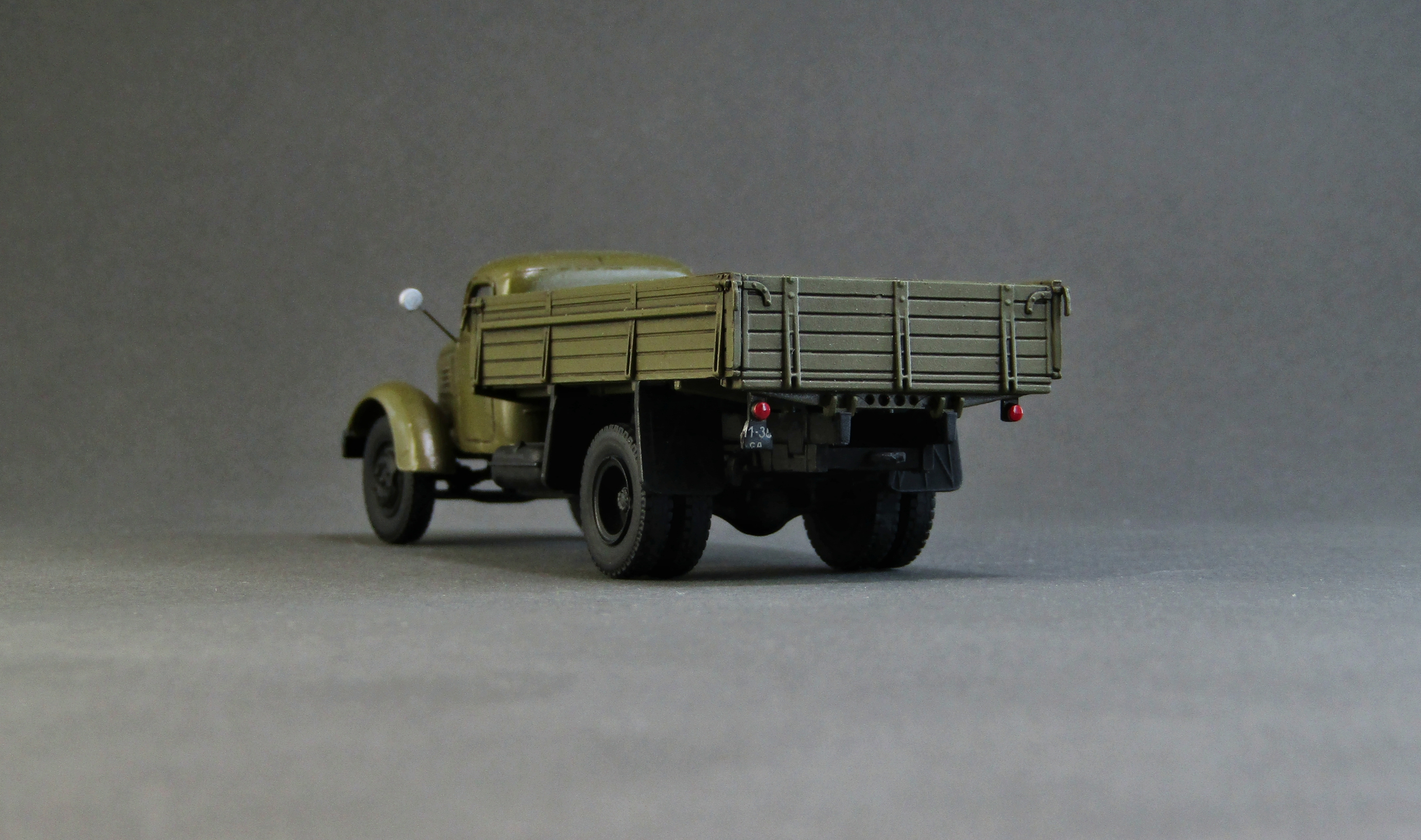 Пару моментов я бы поправил; убрал бы правый задний фонарь, ранние ЗиС-150 комплектовались одним задним фонарем ФП-1Б, поздние - одним задним фонарем ФП-13 с левой стороны и двумя указателями поворота УП-5.