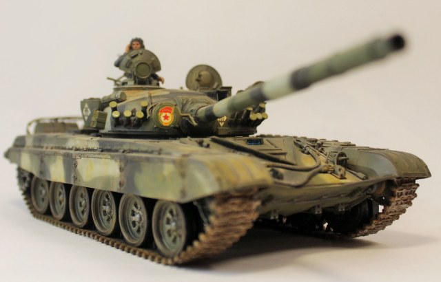 ну если бы не детские косячки в виде не покрашенных фар и не зашпаклёванной башне с тыльной стороны то можно и в галерею. Танкист покрашен нормально. Но вот прототип сильно спорный, я вот пока не решаюсь сделать тамийский Т-72, так как хочу советский вариант а из данного набора его сделать сложно. пока вот лежит, ждёт своего времени.