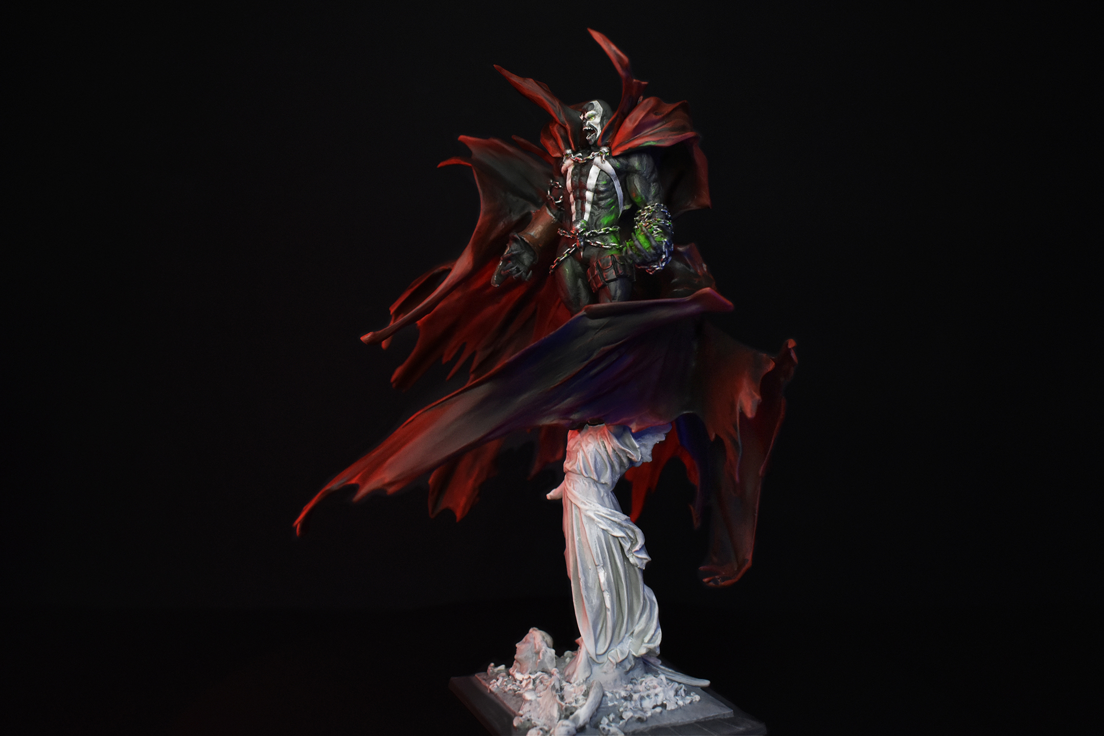 Приветствую Вас коллеги моделисты. Решил попробовать свои силы в росписи фигурок из фотополимерной смолы. Выбор пал на персонажа из фильма «Спаун» 1997 года. Хорошо детализирован, выглядит очень зрелищно. Размер самой фигурки 75 мм. Вся композиция около 150 мм. Работать было интересно, следующая задумка уже в процессе реализации. Спешу утешить своих постоянных зрителей, «переделки» из сборных моделей будут продолжены))) Приятного просмотра!