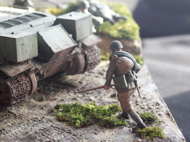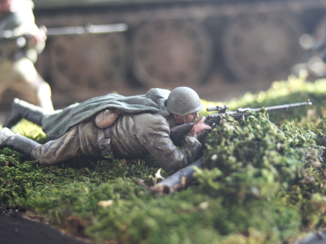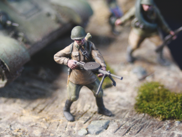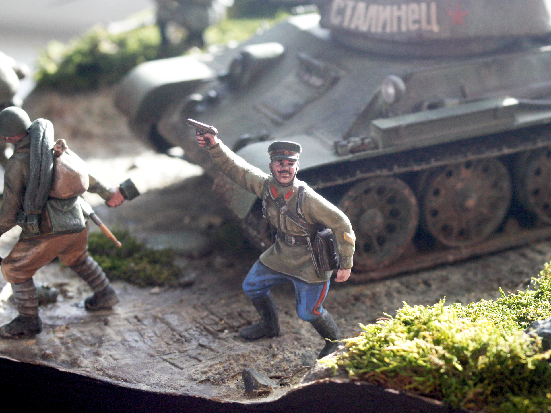 Наверное с этих солдатиков от "Звезды" у всех начиналось!))) Помню в далеком 1992 году меня сильно "зацепила" диорама моего крёстного с похожим сюжетом и такими же солдатиками от "Звезды" и немцами от древней Тамии. Этот момент и определил мой путь в моделизм! Я помогал крёстному с этой диорамой, клеил танк Т-60 от "Звезды", помогал расставлять все на нужные места! Дааа, ностальгия... Одно странно: набор пехоты РККА что в 90-е был гов..о, что ныне ничего не изменилось по качеству- зачем "Звезда" его выпускает по сей день? Чтоб ностальгию в людях пробуждать?)))))