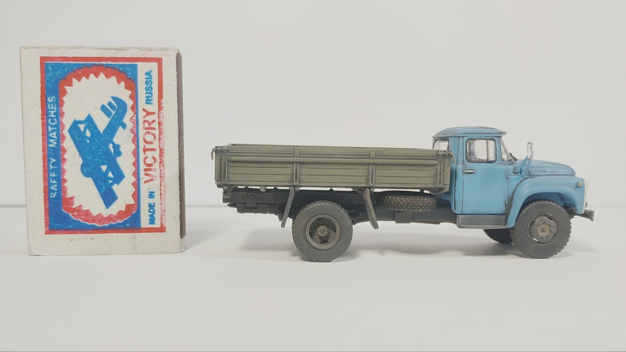 Всех приветствую! Моя первая работа в автотранспорте, немного решил отойти от ббт и собрать что из гражданской тематики, под руки попал вот такой кит от авд набор неплох, цена качество как говорится. Нечего в этой модели глобально не переделывалось, сточил немного зеркала и добавил опорные стойки на них же.
