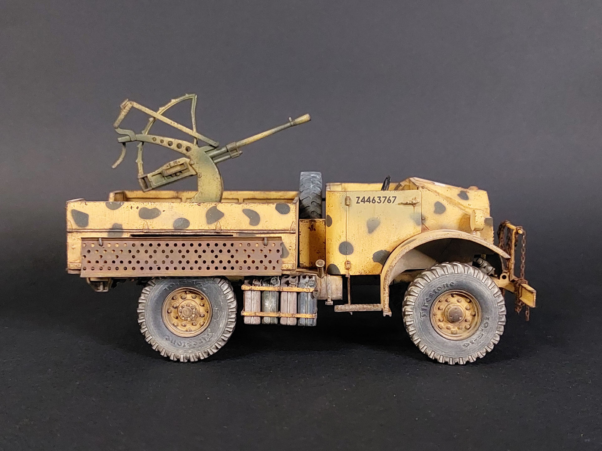 представляю Вашему вниманию трофейный канадский легкий военный грузовик Ford F15 c 20-мм итальянским зенитным орудием Breda mod.1939 (Mirror Models 35107).