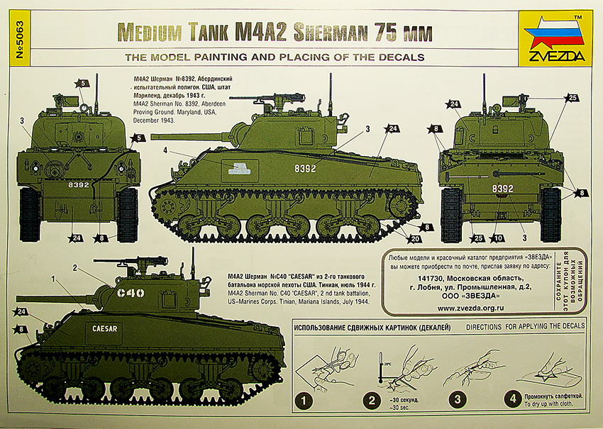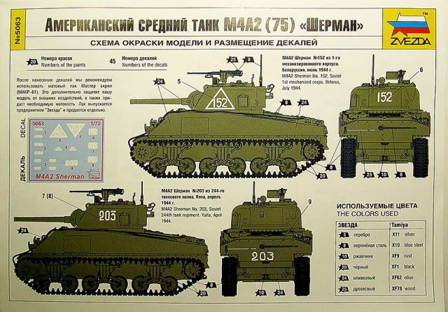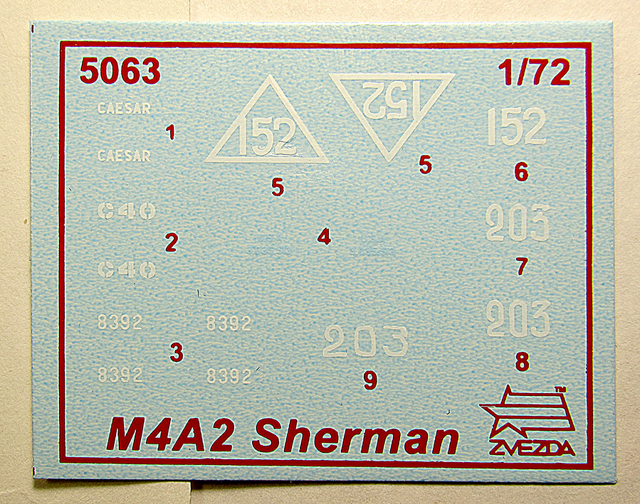 Декаль- повторяет декаль от «Шермана» в 35 масштабе (советский вариант).