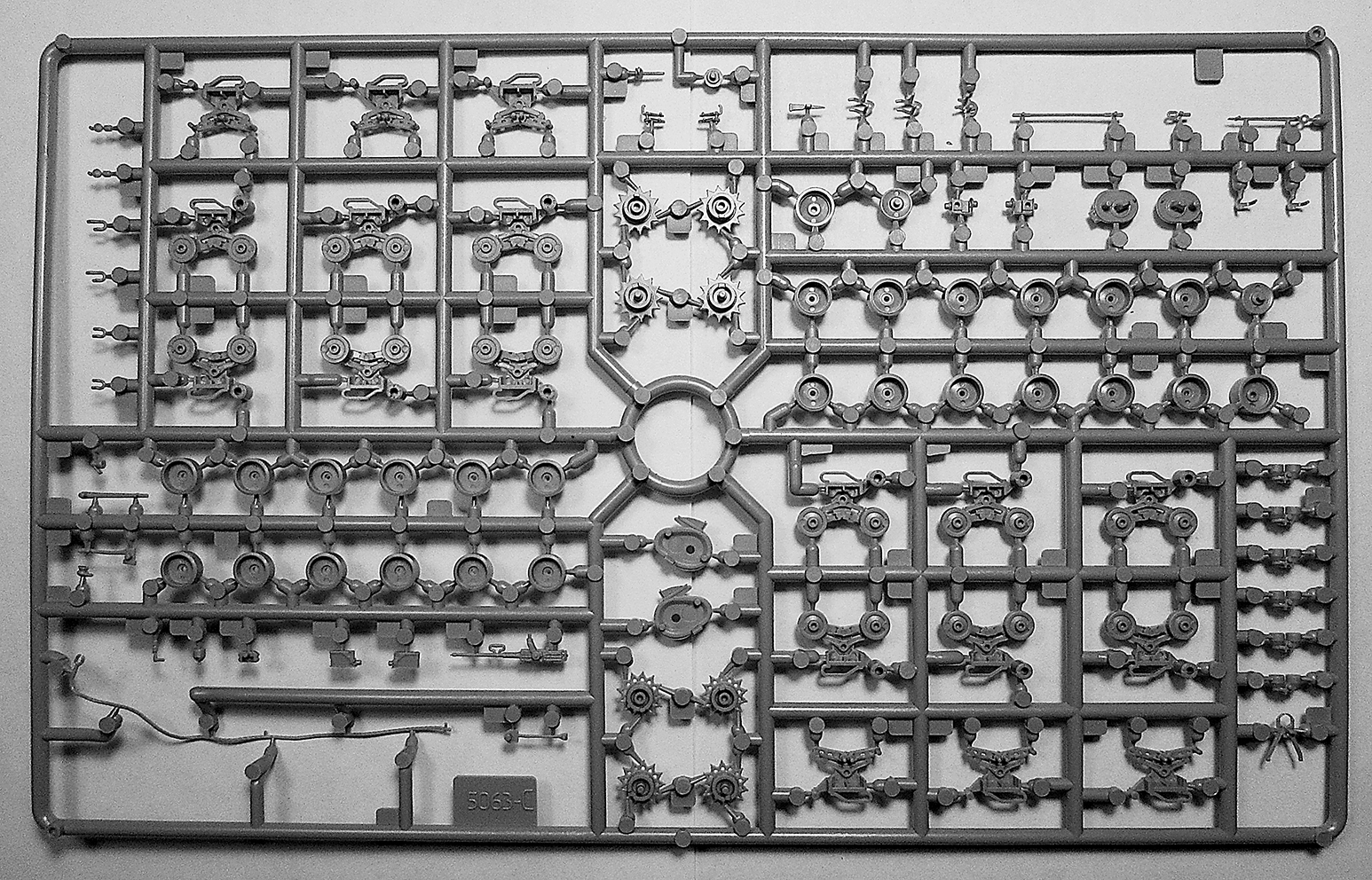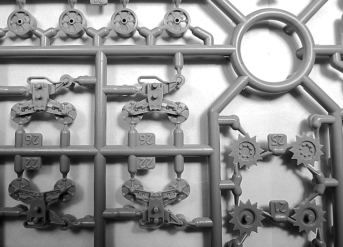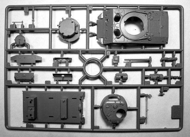 Корпус- без наплывов, утяжин и трещин. Хорошо проработаны мелкие элементы. Но вот имитацию «сварки» броневых листов, в таком масштабе- фирма не осилила. Придётся моделистам дорабатывать самим.