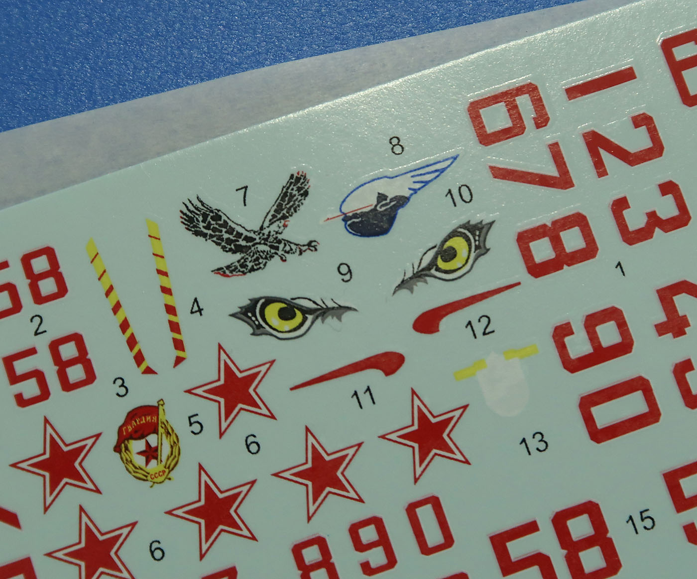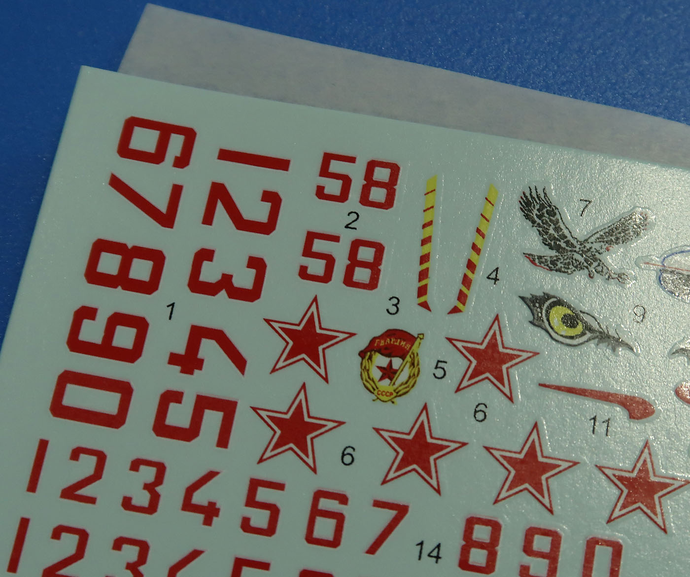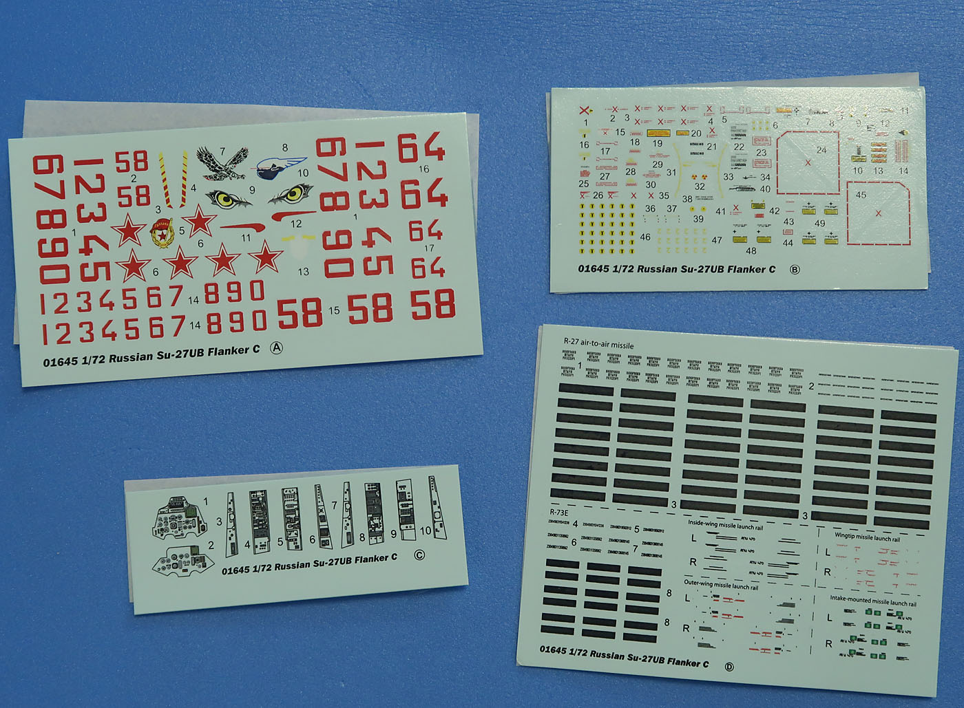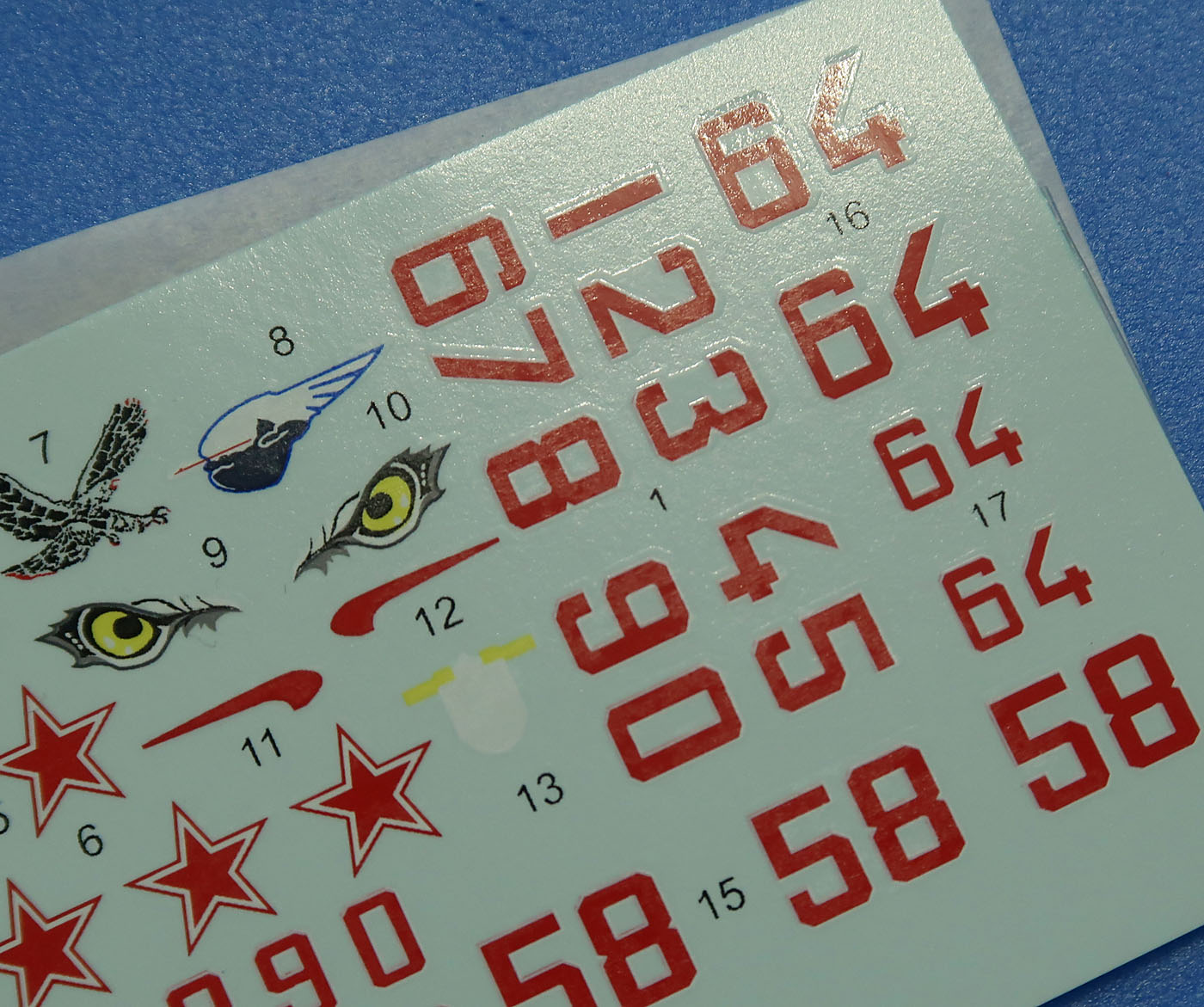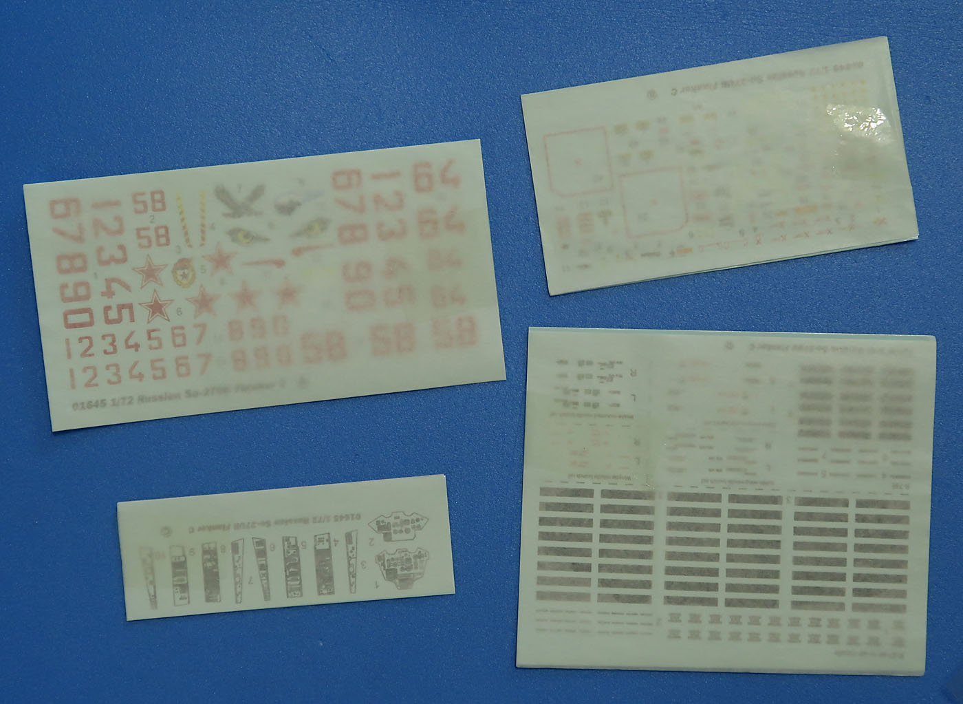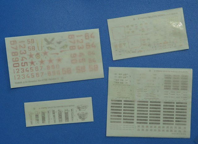 4 листика декальки: ОЗ, техничка, техничка на вооружение и кокпит.