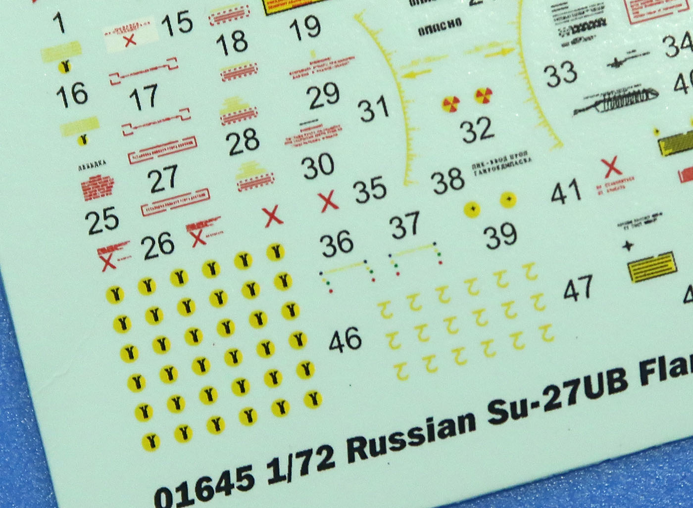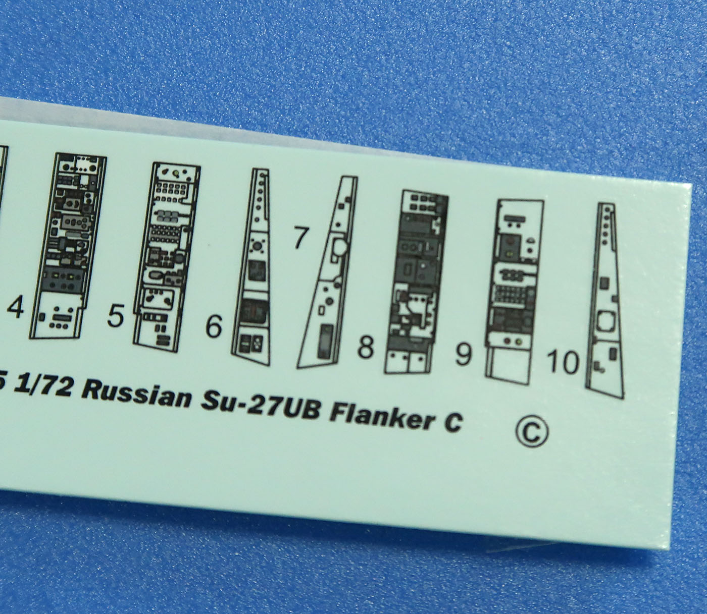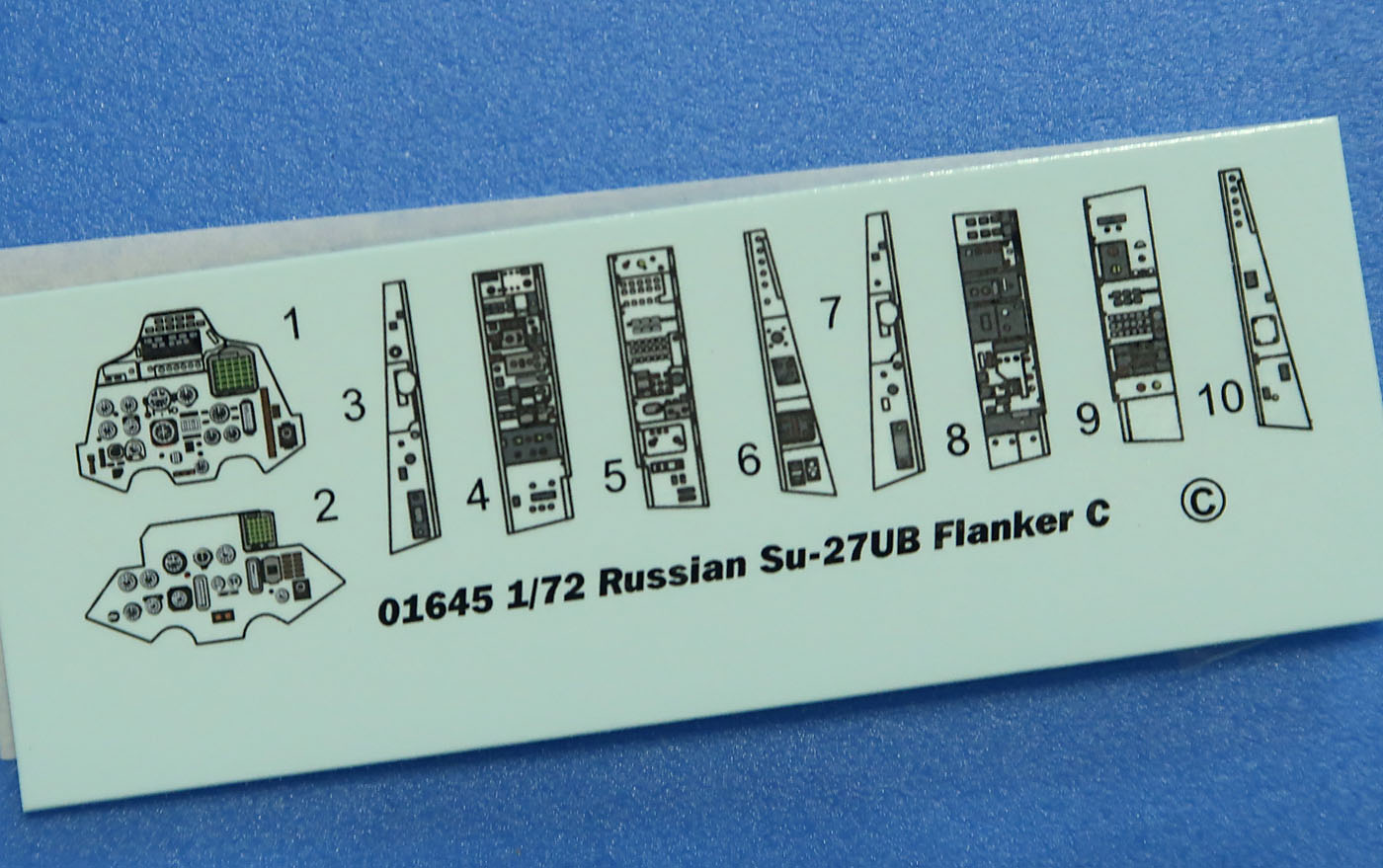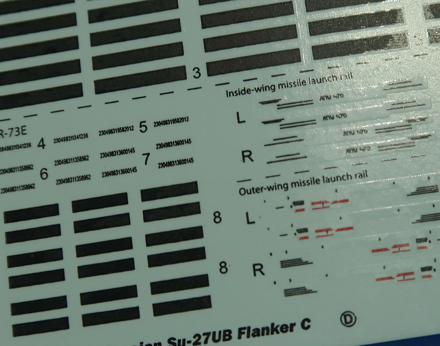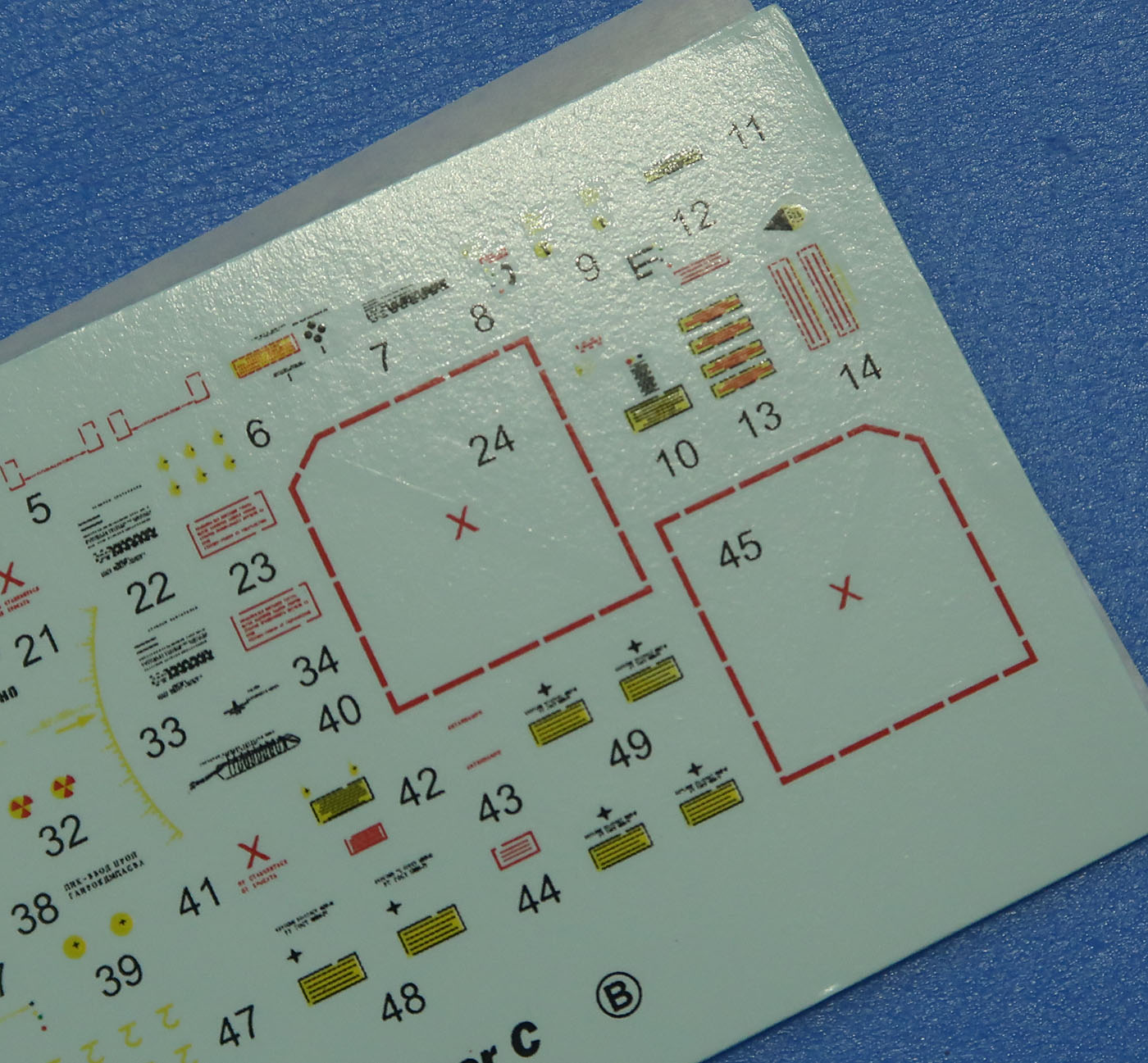 4 листика декальки: ОЗ, техничка, техничка на вооружение и кокпит.