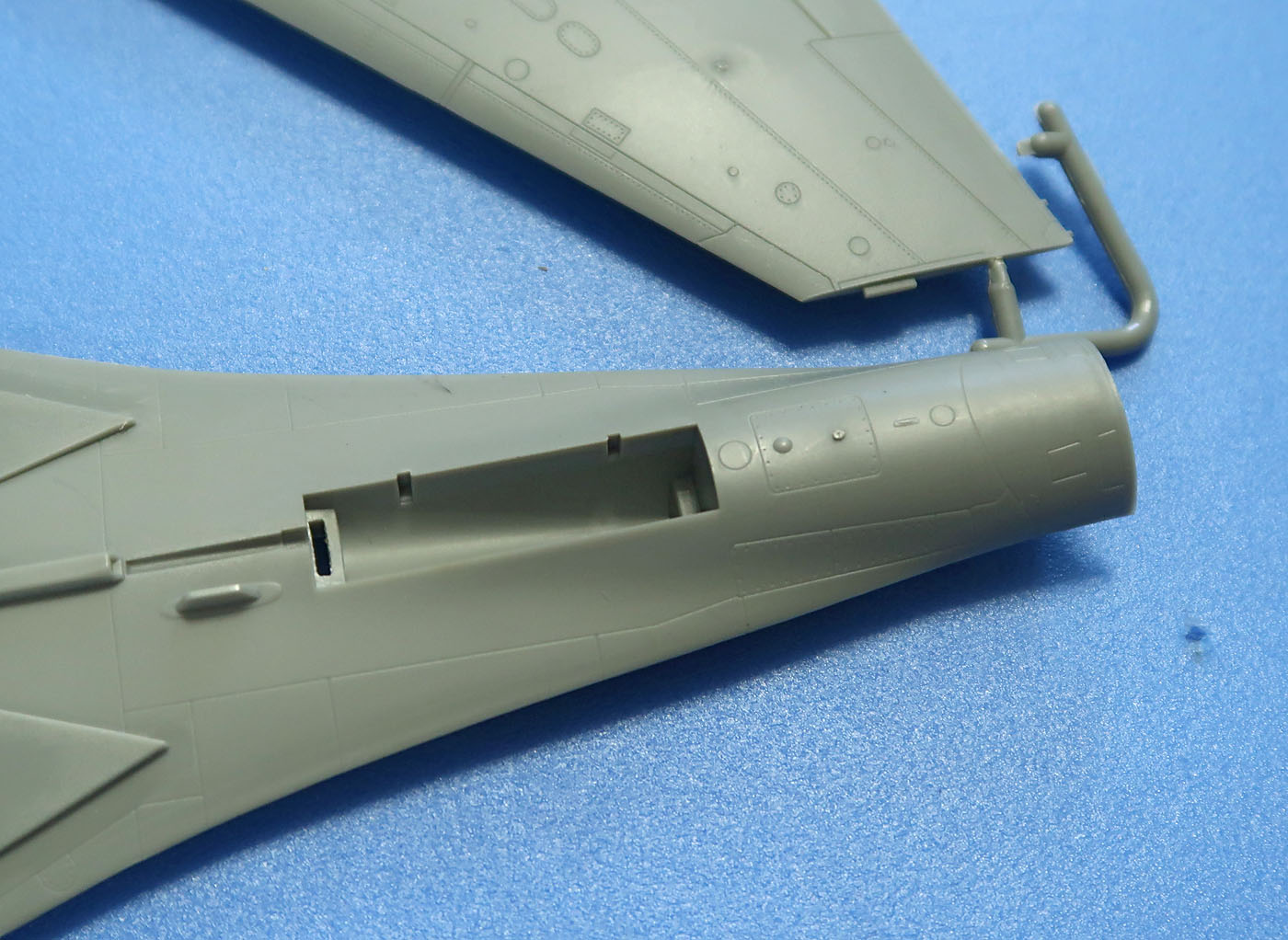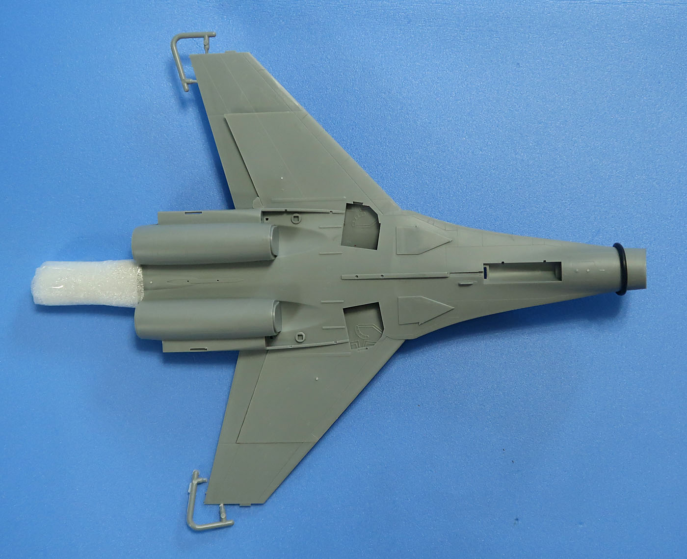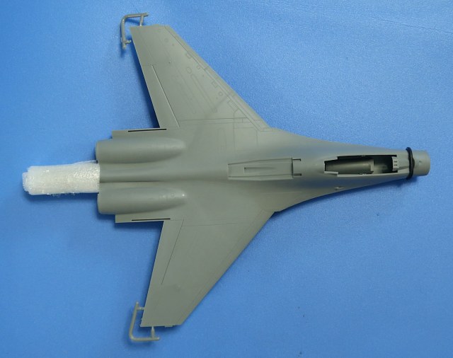 Единственный трудно исправимый недостаток - развернутые ниши шасси (но меня лично это не парит). Ракеты, да, дубовые, я заменил Р-27Э звездовскими, Р-73 - хасегавовскими из 15-го набора. Из этого же набора взял и пилотов. Шов на фонаре убирается без проблем.