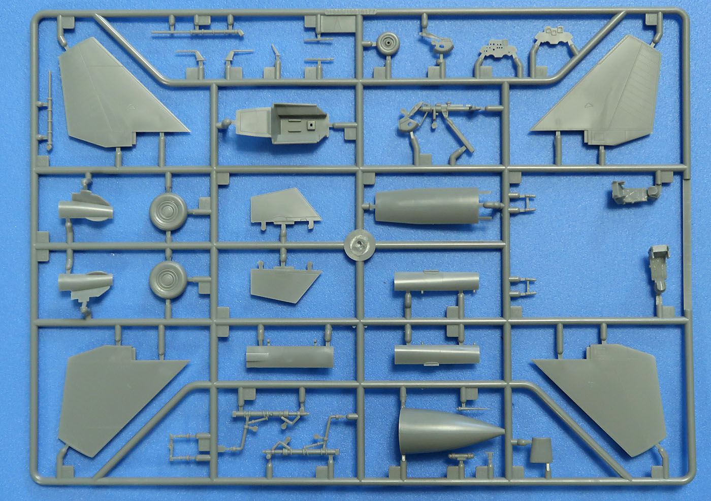 Большой литник с парой вариантов стабов, шасси и кабиной на одноместный вариант (не пригодится) - хорошо известен по соседним китам