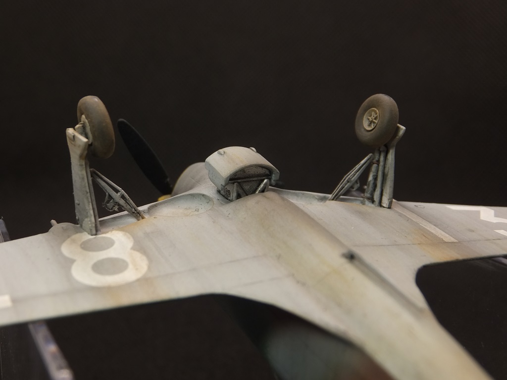 Кромки крыльев и оперения а так-же створки шасси очень толстые, надо было сточить. Имеется общая неаккуратность (загрязнённость низа и особенно пропеллера), перераспыл цветов на крыльях, патрубки надо было выделить. Антенна отсутствует. Понравилось как хорошо покрашен фонарь.