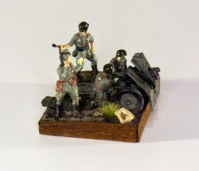 Пример бюджетного моделизма. Делался одновременно со Schwimmwagen + FLAK-38, солдатики красились, соответственно, тоже, так что тоже первый опыт в их покраске. 2 дополнительных солдата - из набора "Немецкая регулярная пехота" Звезды.