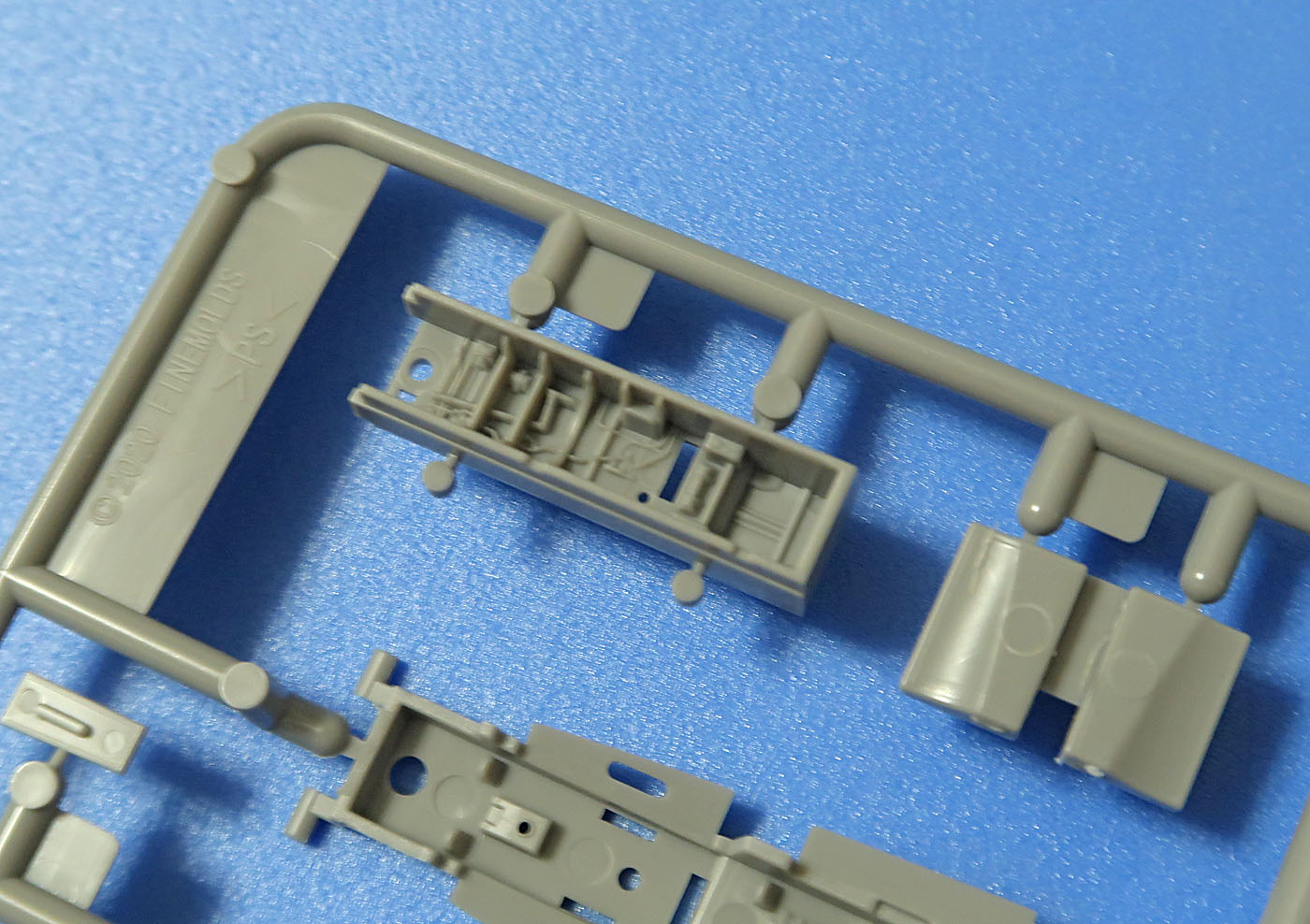 Литник F: половинки носовой части фюзеляжа, ее низ, киль (большая часть), диски.
