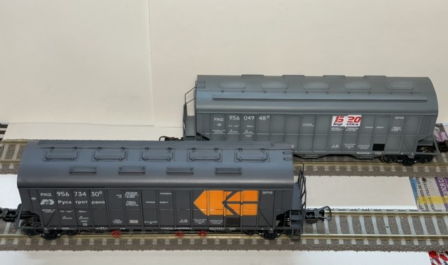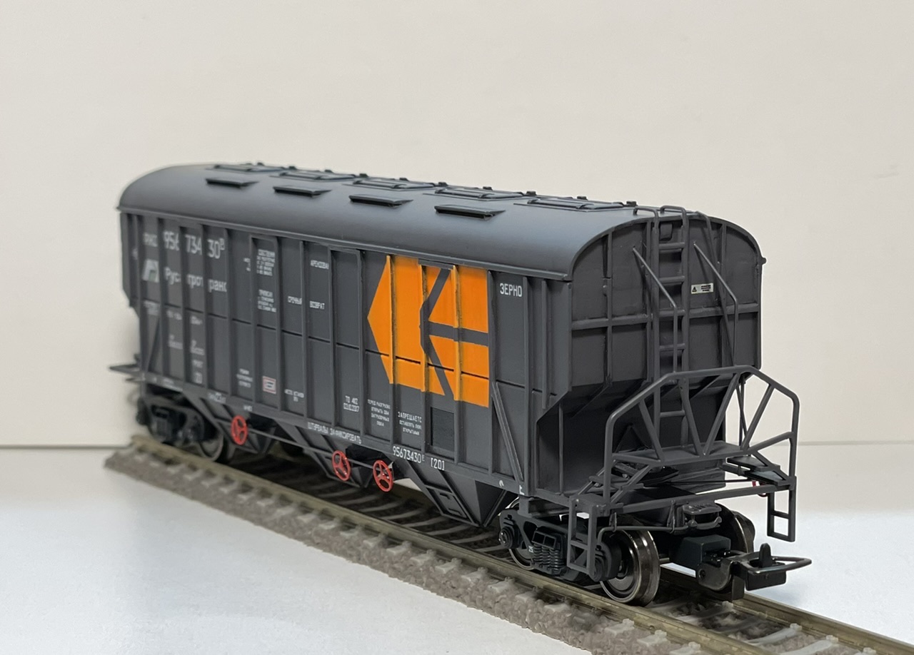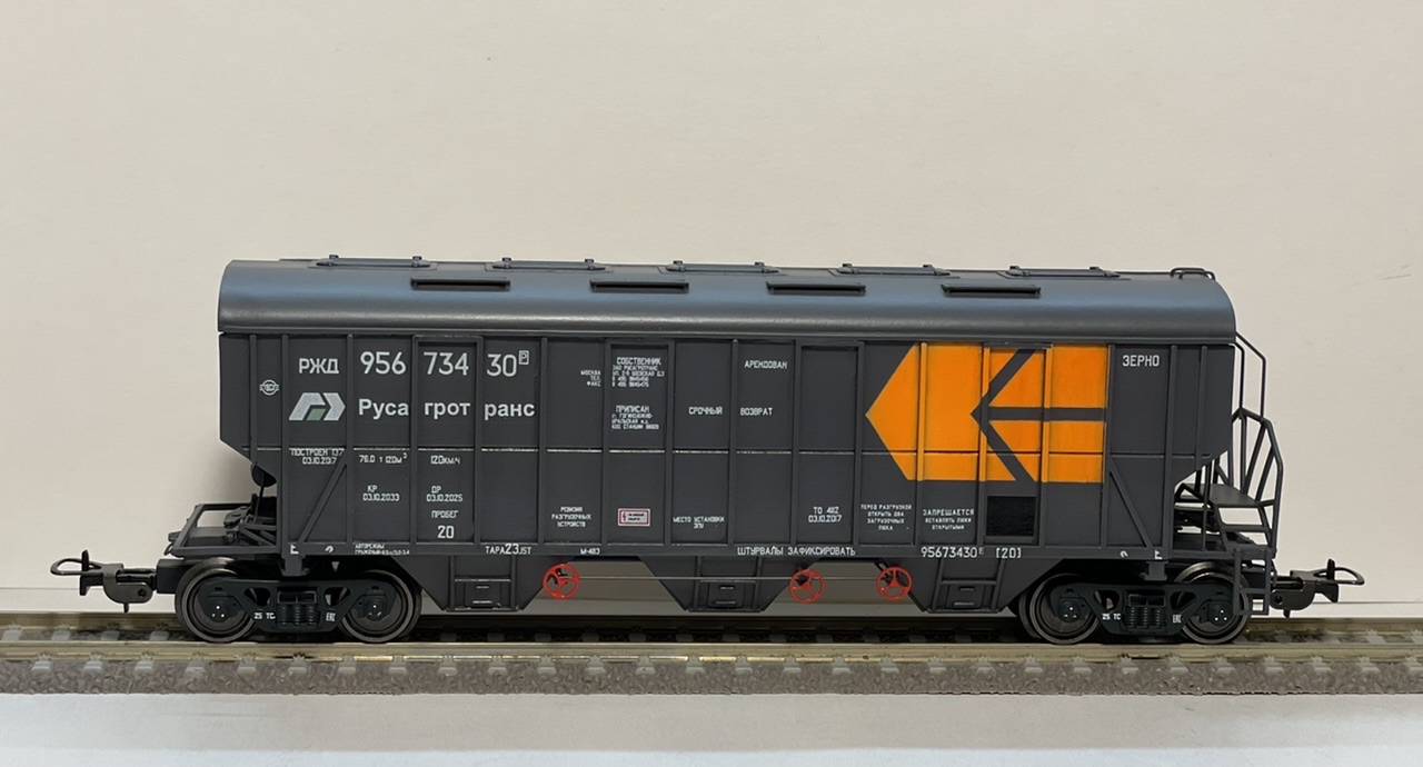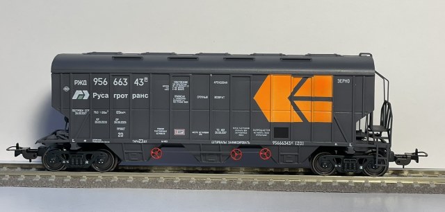 Вагоны Росагротранс покрашены немного в другой цвет и стрелки покрасил оранжевым флером с белой подложкой.