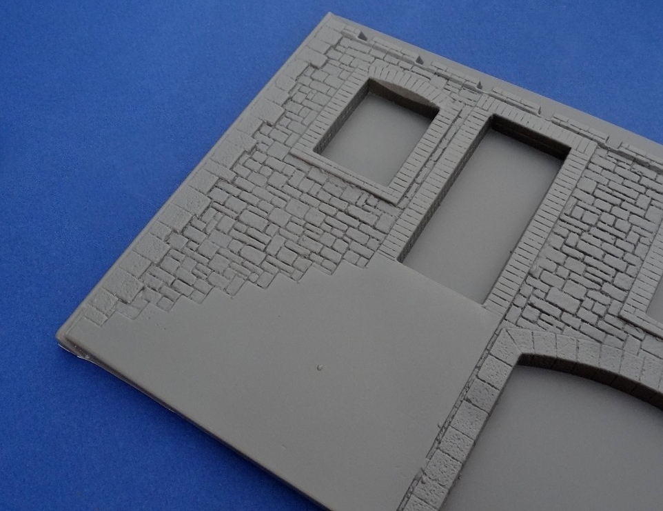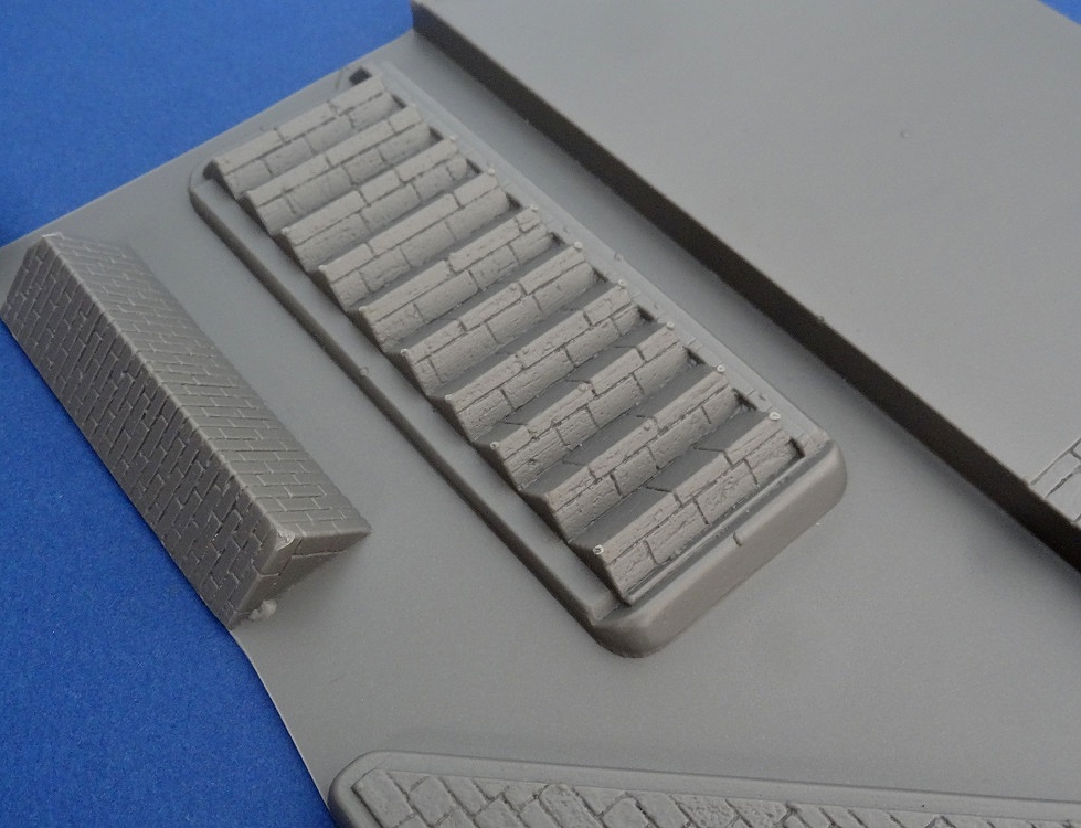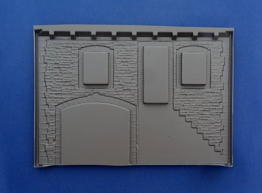 В наборе представлено 8 вакуумных литника серого цвета на которых расположены основные детали здания: стены дома, входная лестница, оконные и дверные проёмы, дымоход, крыша. На стенах есть имитация каменной кладки. На крыше изображена имитация черепицы.