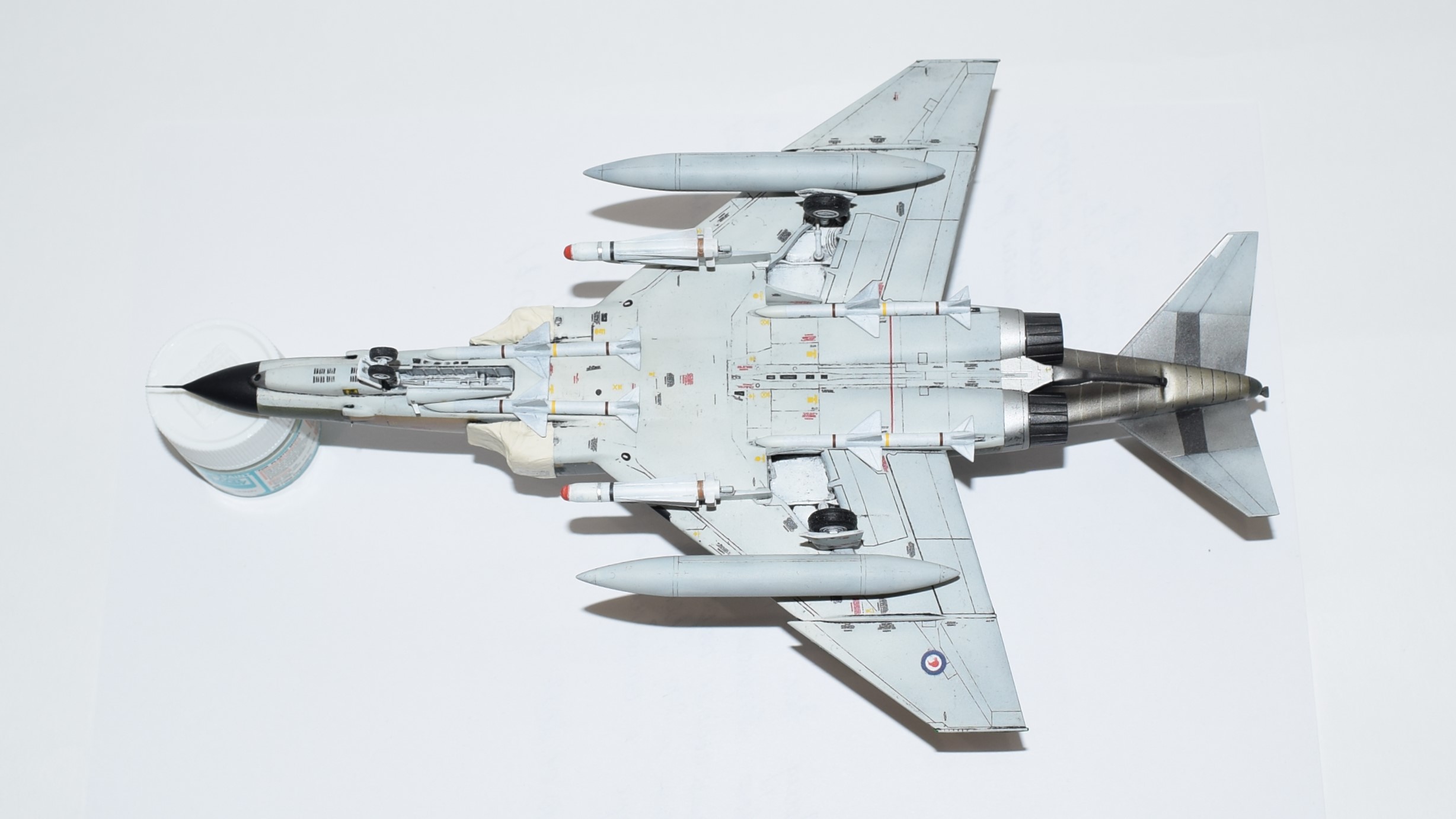 К модели приступил в середине августа 2021 г. Она собрана "изкоробки" с ПВД "Мастер Моделз", колес "Экипаж", технички Print Scale, ракеты "Маверик" ResKit. Декали ОЗ и прочую "красоту" печатал сам. Также использовал декали для Sparrow из набора Italeri. Сам изготовил чехлы на ВЗ. Штоки передней стойки шасси заменены на иглы.