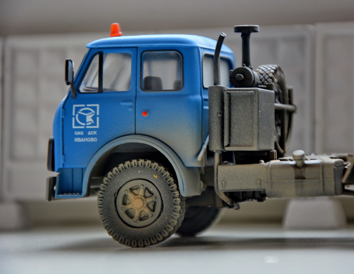 Спасибо за комментарии. МАЗ делался по прототипу работающего на Ивановской ДСК, там что только не делали с ним в условиях мастерской, и кабину меняли, эту трубу вывели за кабину, задние крылья были сделаны из всего возможного, ещё кабина вся была в заплатках, все варёно, перевалено! Все делал по памяти и некоторые вещи возможно не учёл, но думаю со временем ещё доработаю его.