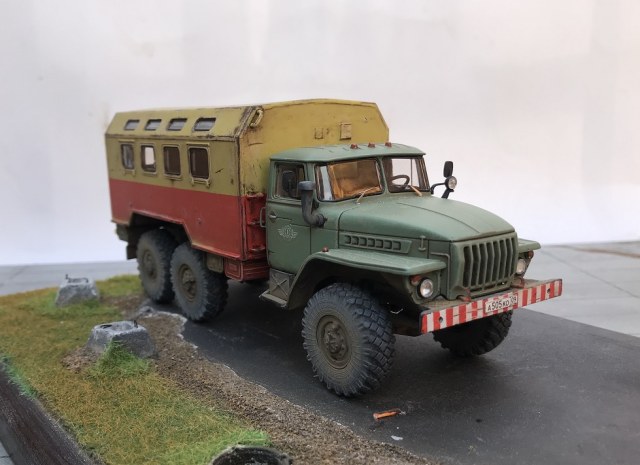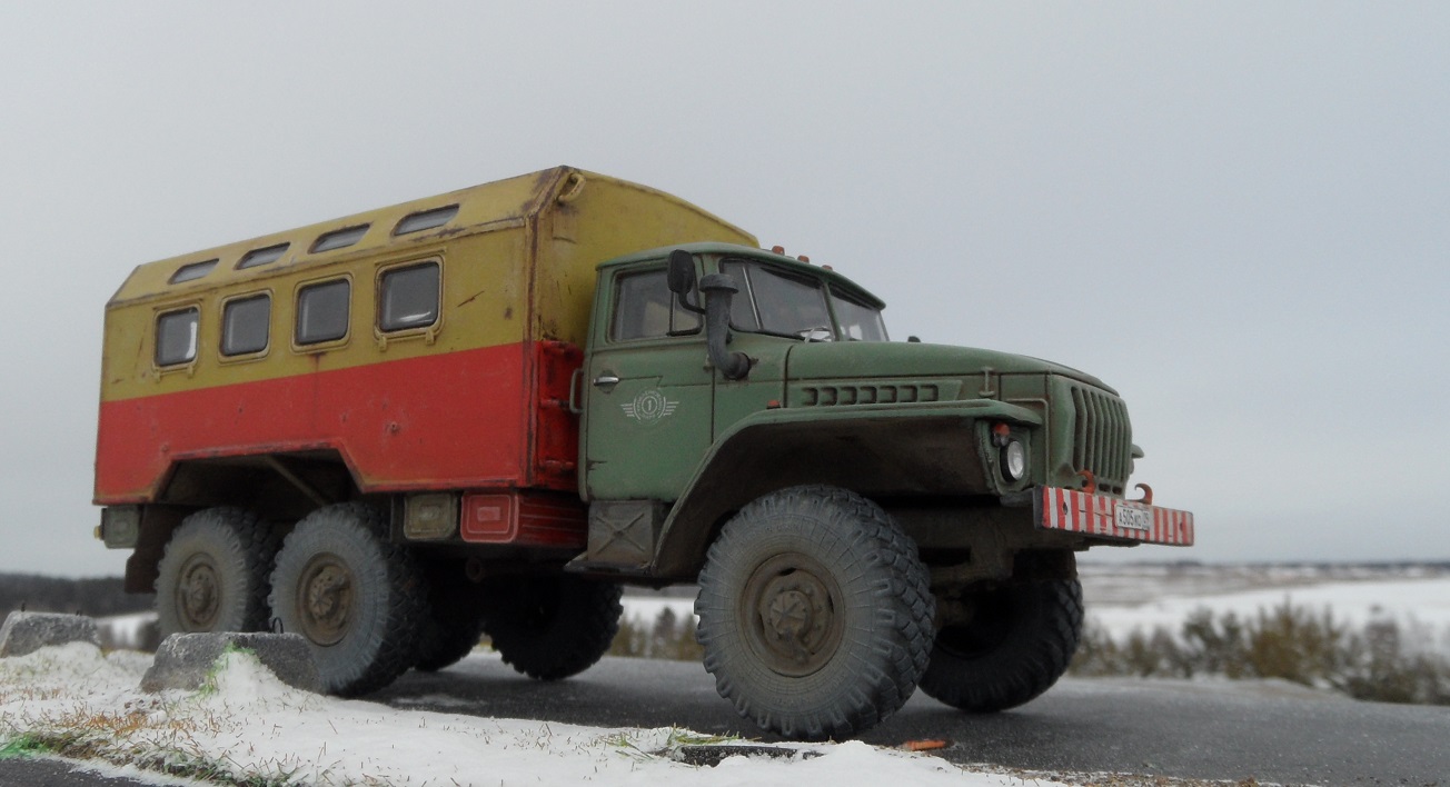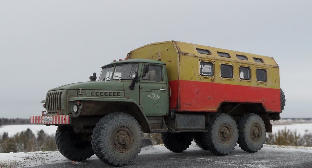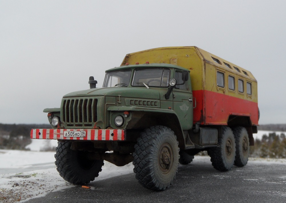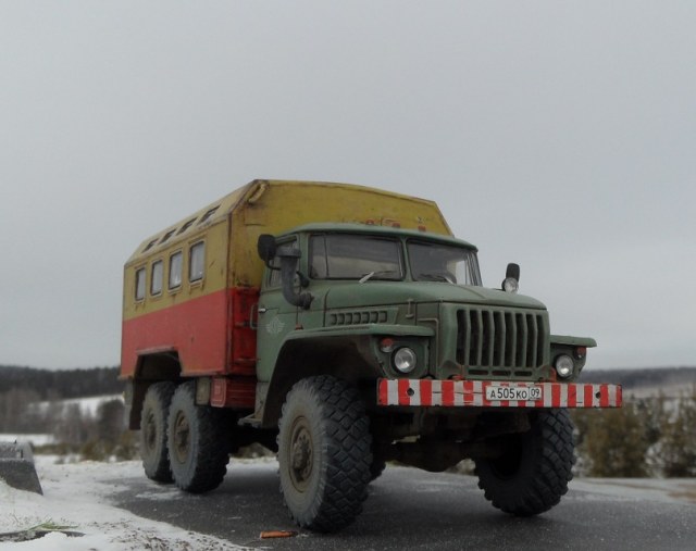 Еще одна новинка от AVD Models и тоже Урал , но с другой так сказать надстройкой). Модель имеет металлическую раму и кабину, остальное пластик. Изначальноэтот Урал кунг военный, но я решил его заколхозить под обычную аварийную техничку. Сборка модели труда не составляет, она очень легкая. Из доработок аналогично предыдущему Уралу только ручки на кабине. Окрашена модель эмалью мотип, грунт кудо. Приятного просмотра!