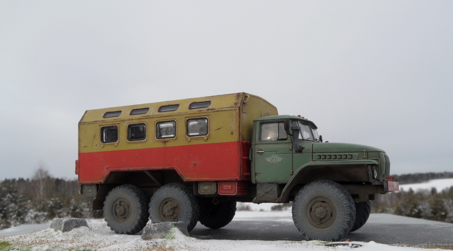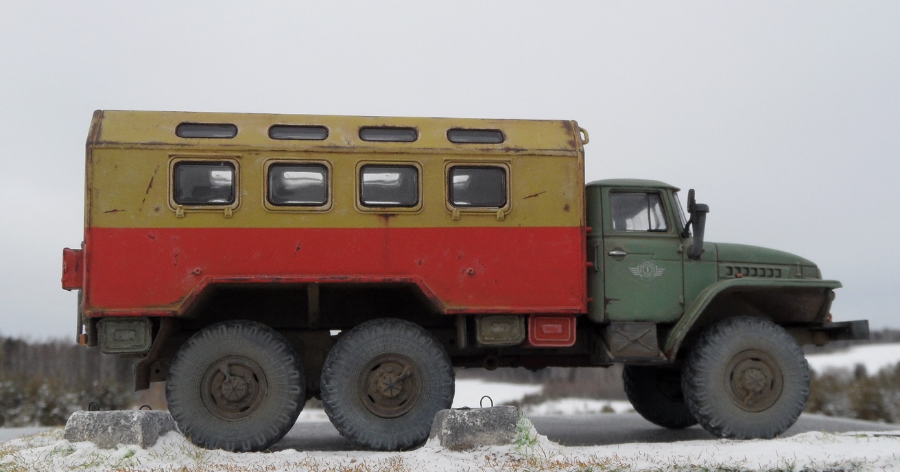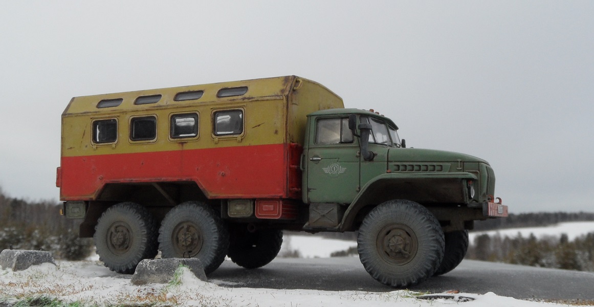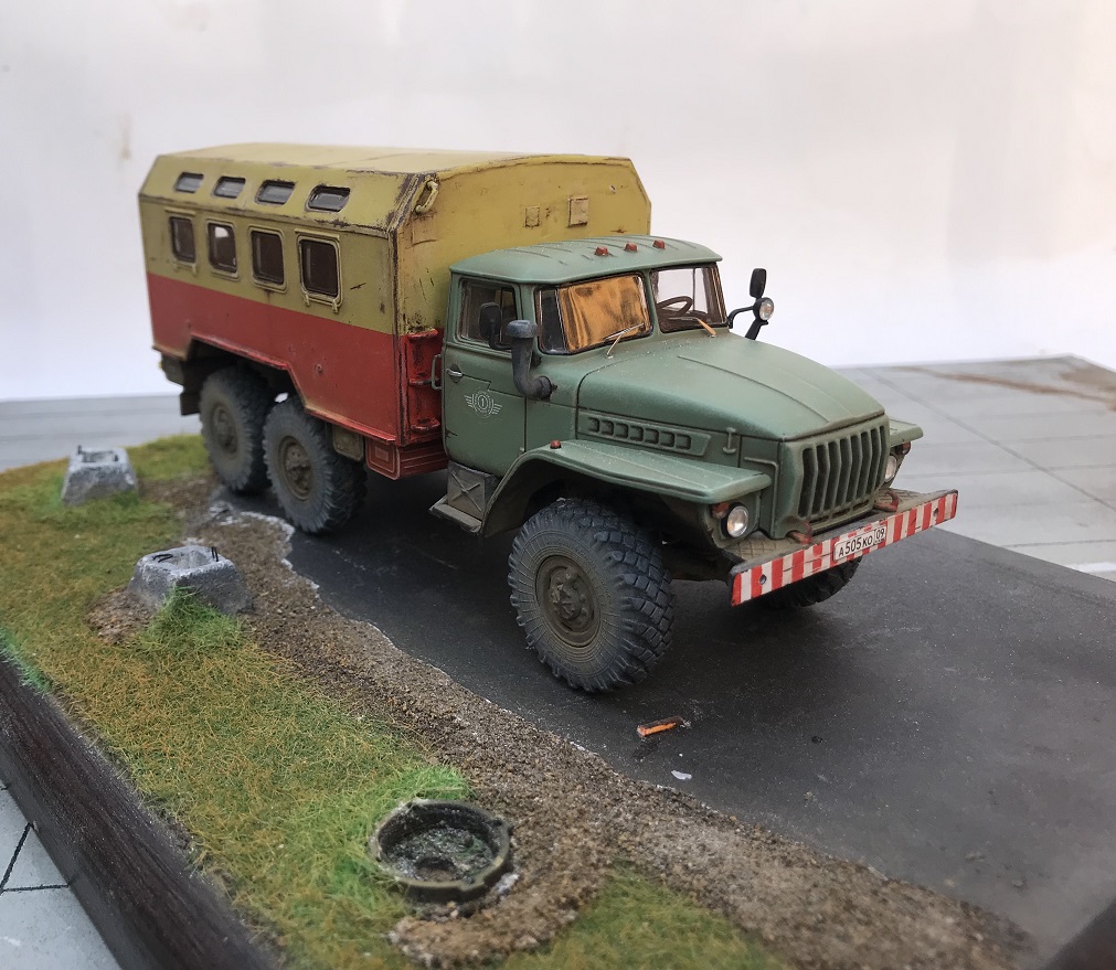 Еще одна новинка от AVD Models и тоже Урал , но с другой так сказать надстройкой). Модель имеет металлическую раму и кабину, остальное пластик. Изначальноэтот Урал кунг военный, но я решил его заколхозить под обычную аварийную техничку. Сборка модели труда не составляет, она очень легкая. Из доработок аналогично предыдущему Уралу только ручки на кабине. Окрашена модель эмалью мотип, грунт кудо. Приятного просмотра!