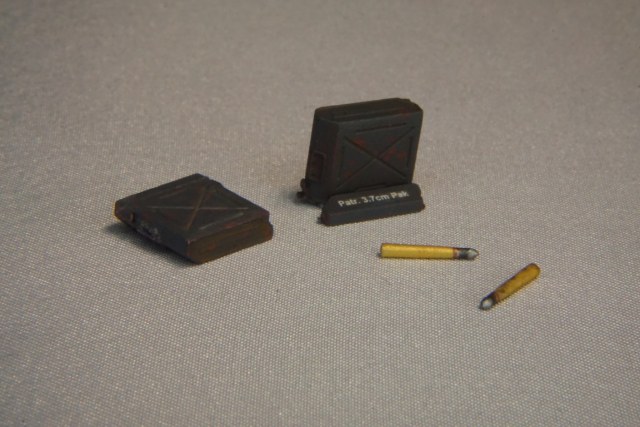 Данная пушка представлена такими фирмами как Bronco и Riich (делает репак с 2-мя орудиями в наборе). На мой взгляд, это лучшая по качеству и проработке модель на текущий момент. Отливки ажурные, четкие. В комплекте металлический ствол, небольшая, но очень уместная плата травления и даже декали на снарядные ящики (что ранее вообще никто не делал). Отличная стыкуемость. На выходе получается довольно копийная модель. Отличный вариант для сборки «из коробки»!