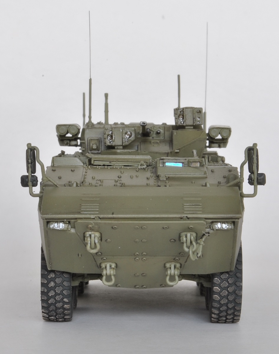 Здесь я заменил дульник на СГ и добавил немного травления от него же, водометы – смола. Искоробочные колеса неплохие, и я не вижу необходимости их менять. Буксировочные скобы на нижних передних рымах у парадных машин, как правило, отсутствуют, но я решил их оставить. По-хорошему, надо было поменять кронштейны зеркал, но я поленился) Основная часть доработок -- на допокрасочных фото.