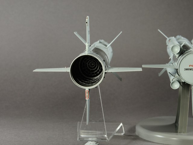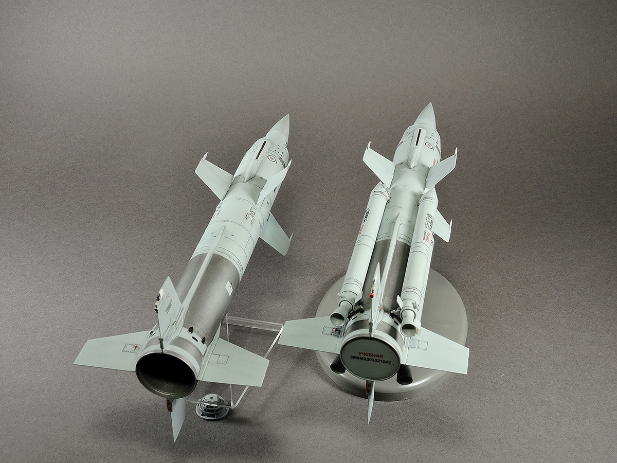 Для того, чтобы оживить модель ракеты сделаны в двух вариантах: одна учебная, вторая боевая. Боевая ракета предусматривает показ в полете (без стартовых ускорителей, чехла воздухозаборника, заглушки сопла маршевого двигателя, а также крышки антенны ответчика). Кроме этого, дополнительно сделана имитация устройства маршевого двигателя: стабилизатора горения и жаропрочной рубашки.