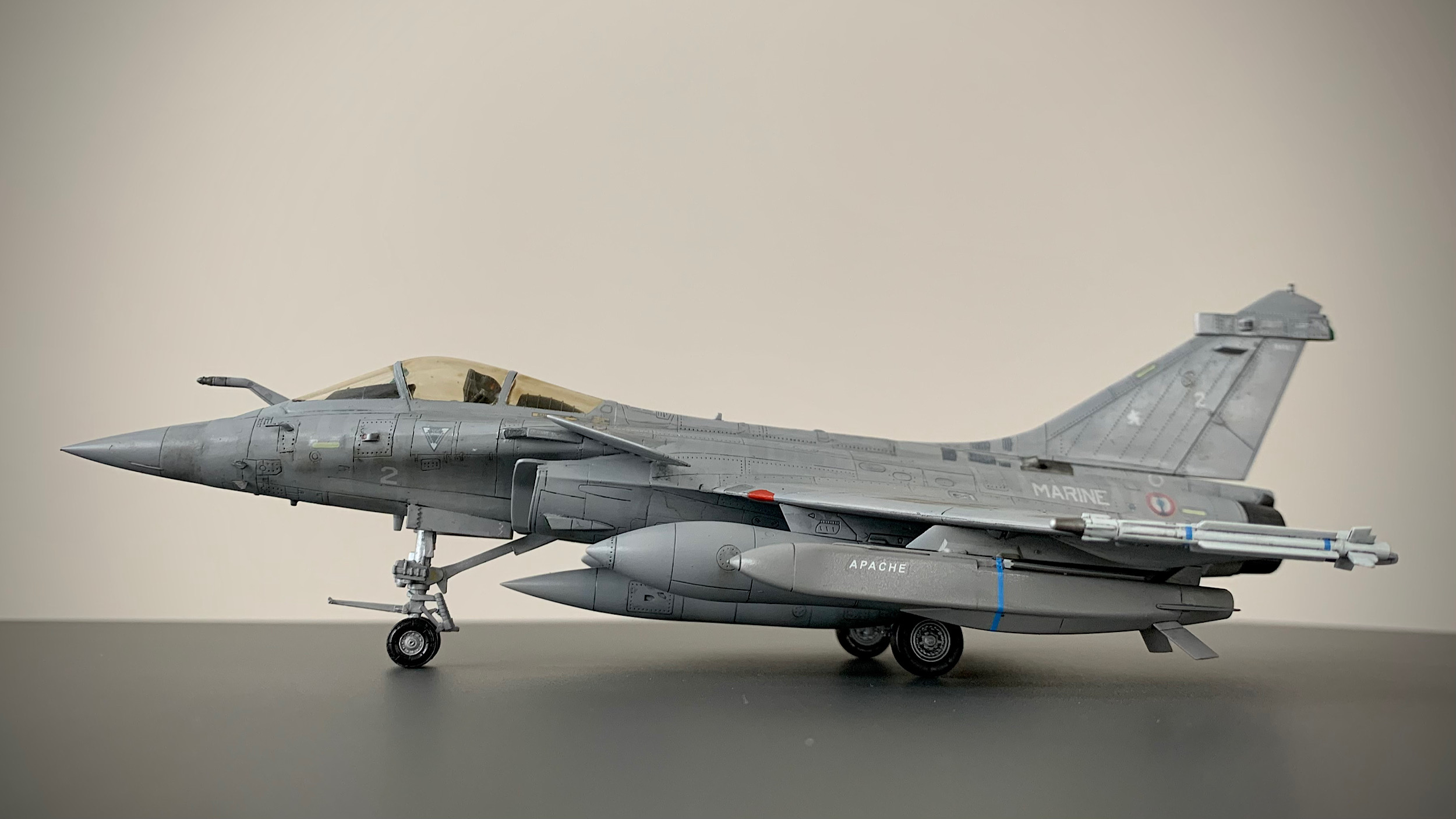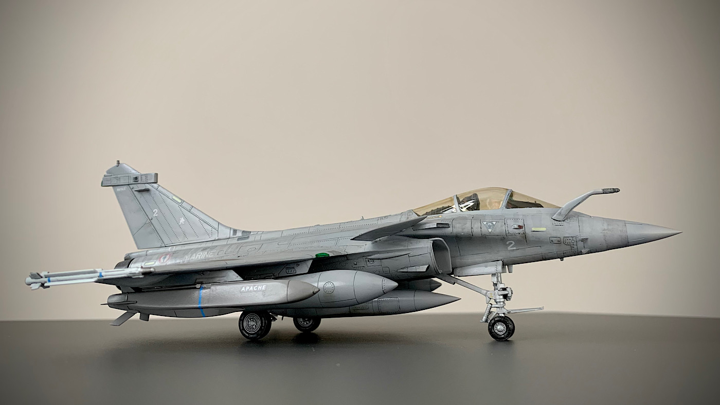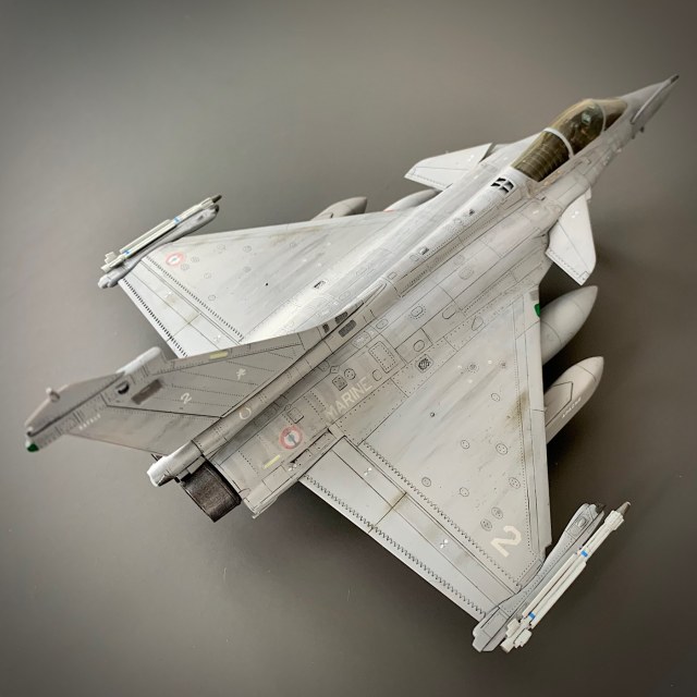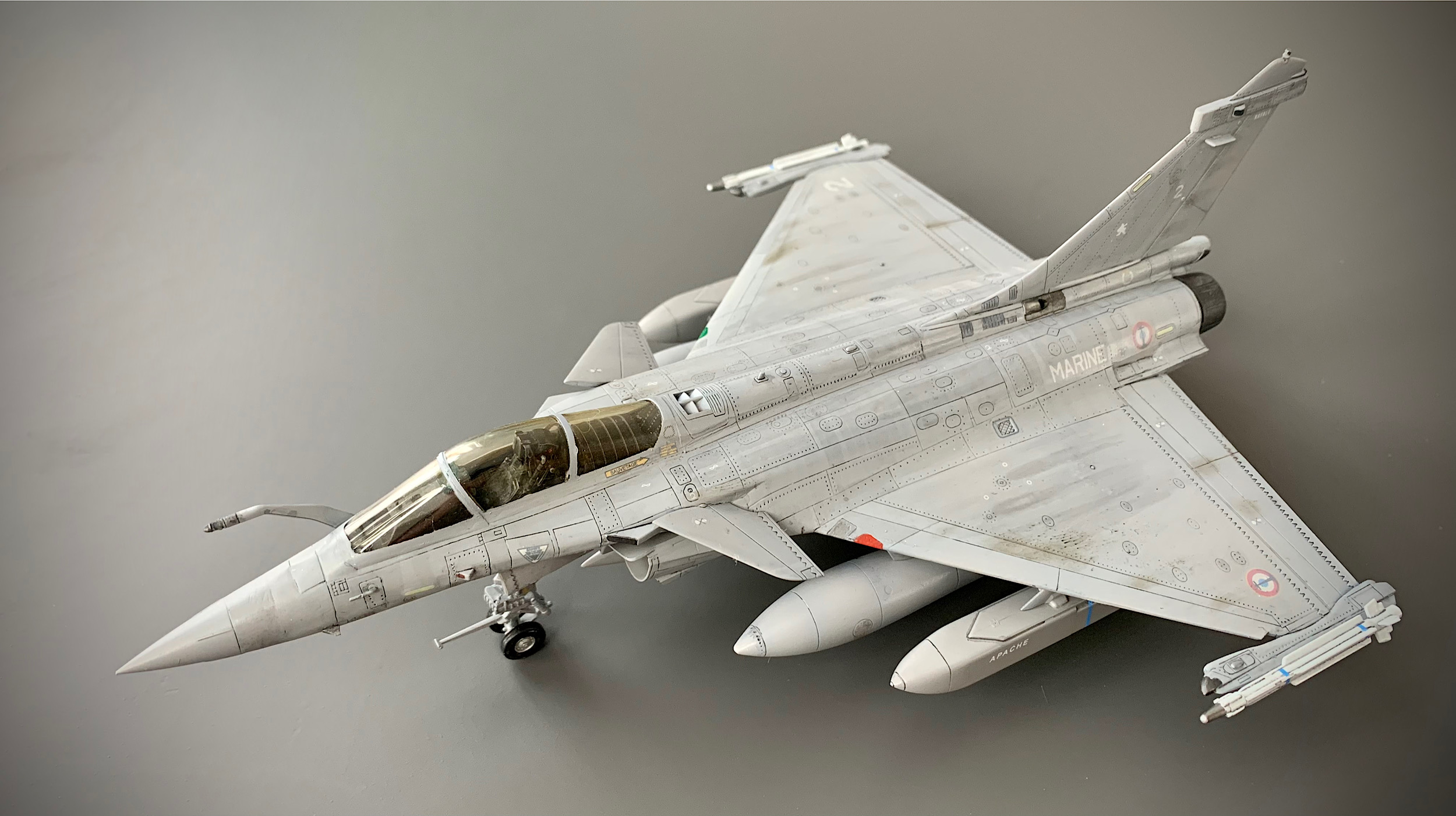 Окраска — АКАН 6й серии (67011 - цвет Gris Bleu Clair, специальный для Миражей и Рафалей), лаки и металлики Mr.Hobby, смывка и легкий загрязинг (с которым немного перестарался на крыле, каюсь) — Tamiya и АКАНовский пигмент на лаке Mr.Hobby. Прешейдинг делал первый раз, очень не хотел с ним переборщить. Фонарь тонирован лаками от АКАН, а именно смесью из Тика (74047) и Дымчатого (74029). Получилось похоже, как мне кажется.