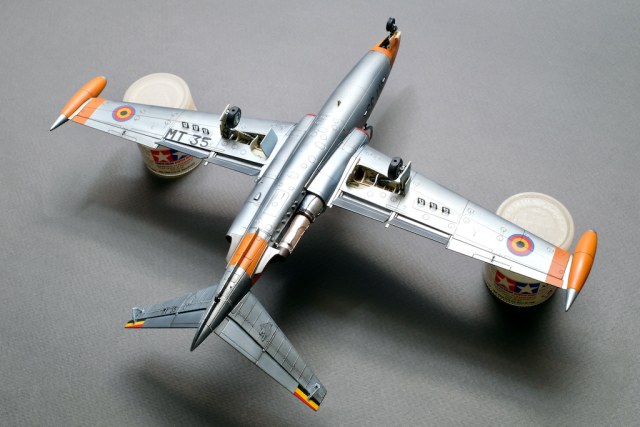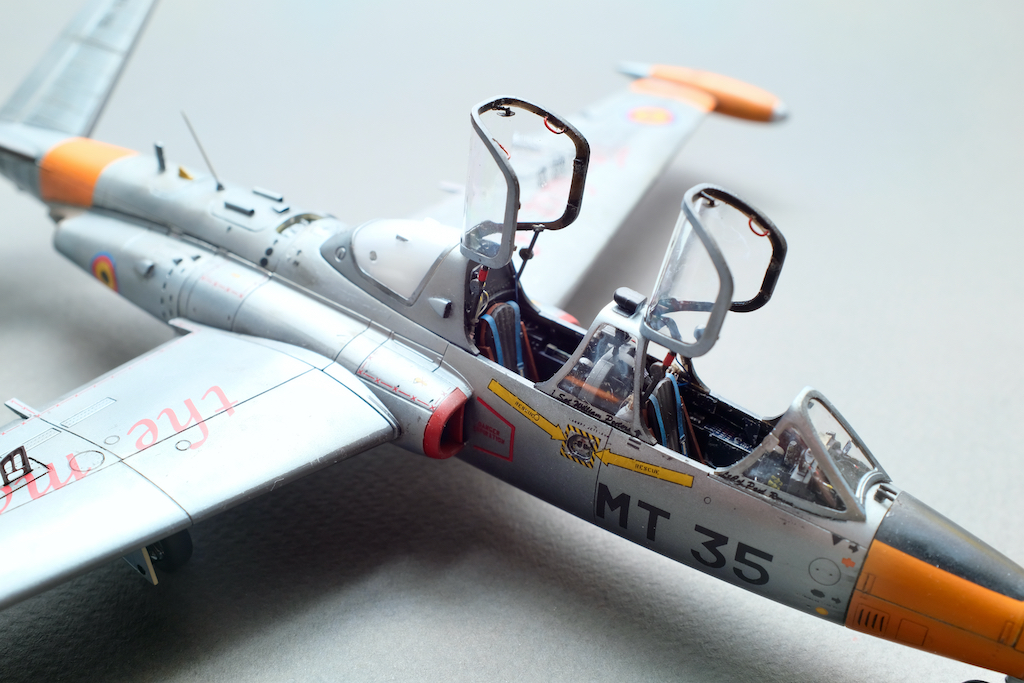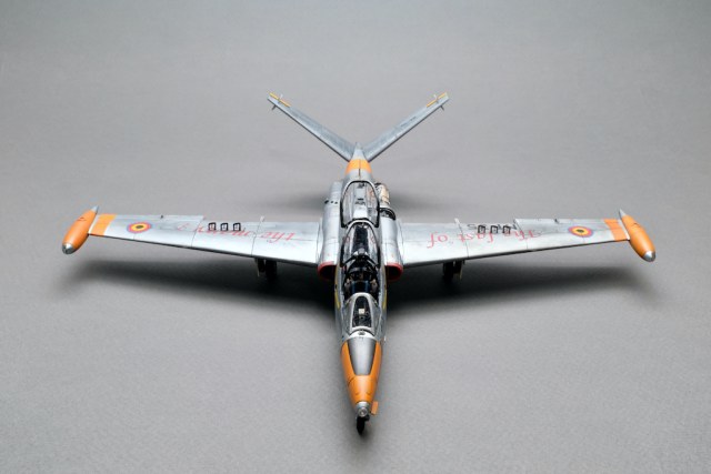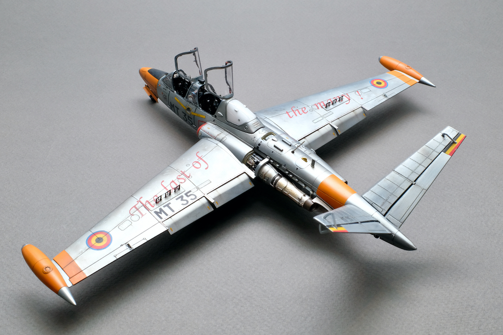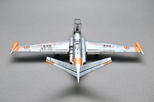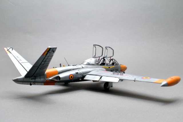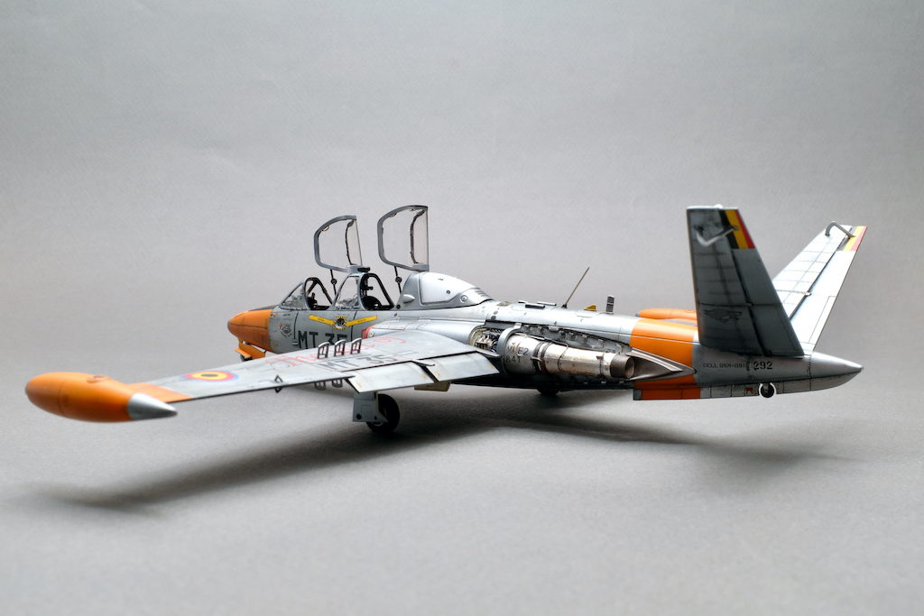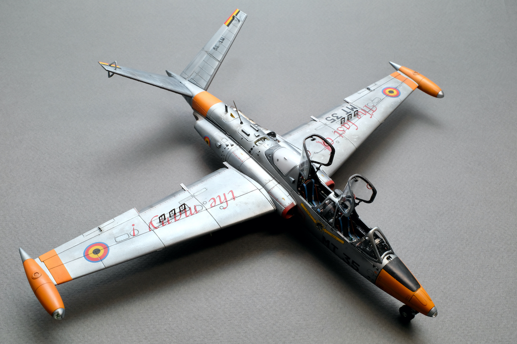 Разрешите представить вам свою очередную работу - модель учебно-боевого самолёта Fouga CM.170 Magister. Самолёт очень интересный, симпатичный, с долгой историей эксплуатации. Принимал участие в боевых действиях и, думаю, обучил немало отличных лётчиков. В качестве прототипа была выбрана машина бельгийских ВВС с б/н MT 35. Уникальность этого борта заключается в том, что это была последняя Фуга, находящаяся в эксплуатации бельгийских ВВС, она была выведена из состава в 2007 году. Об этом факте говорит красочная надпись на крыле "The Last of the Many".
