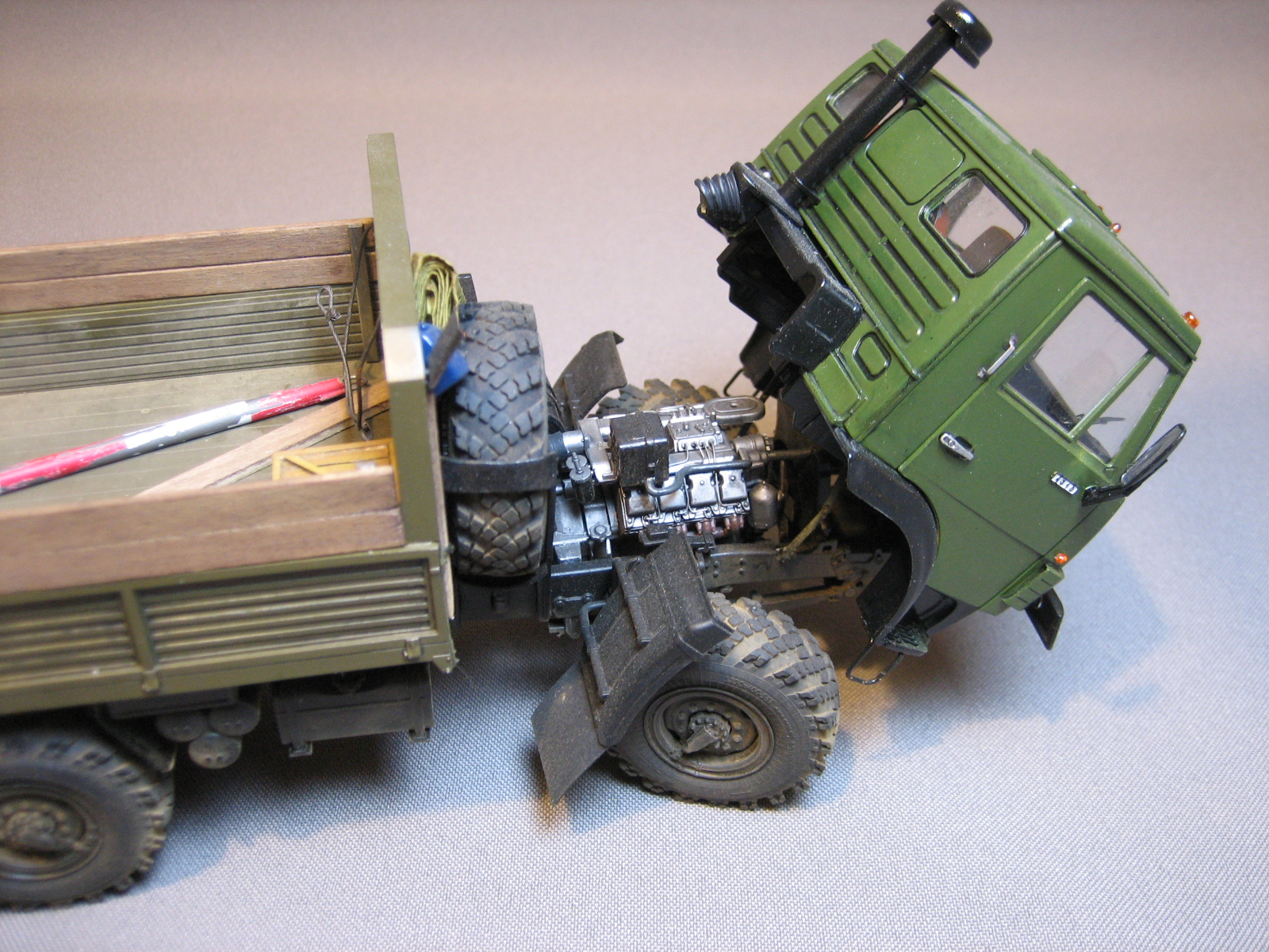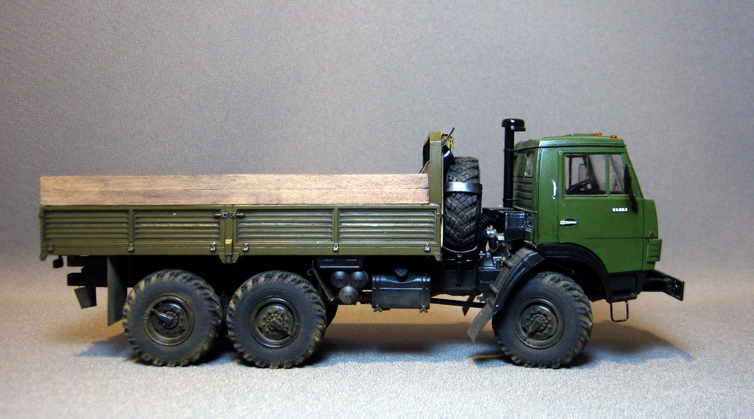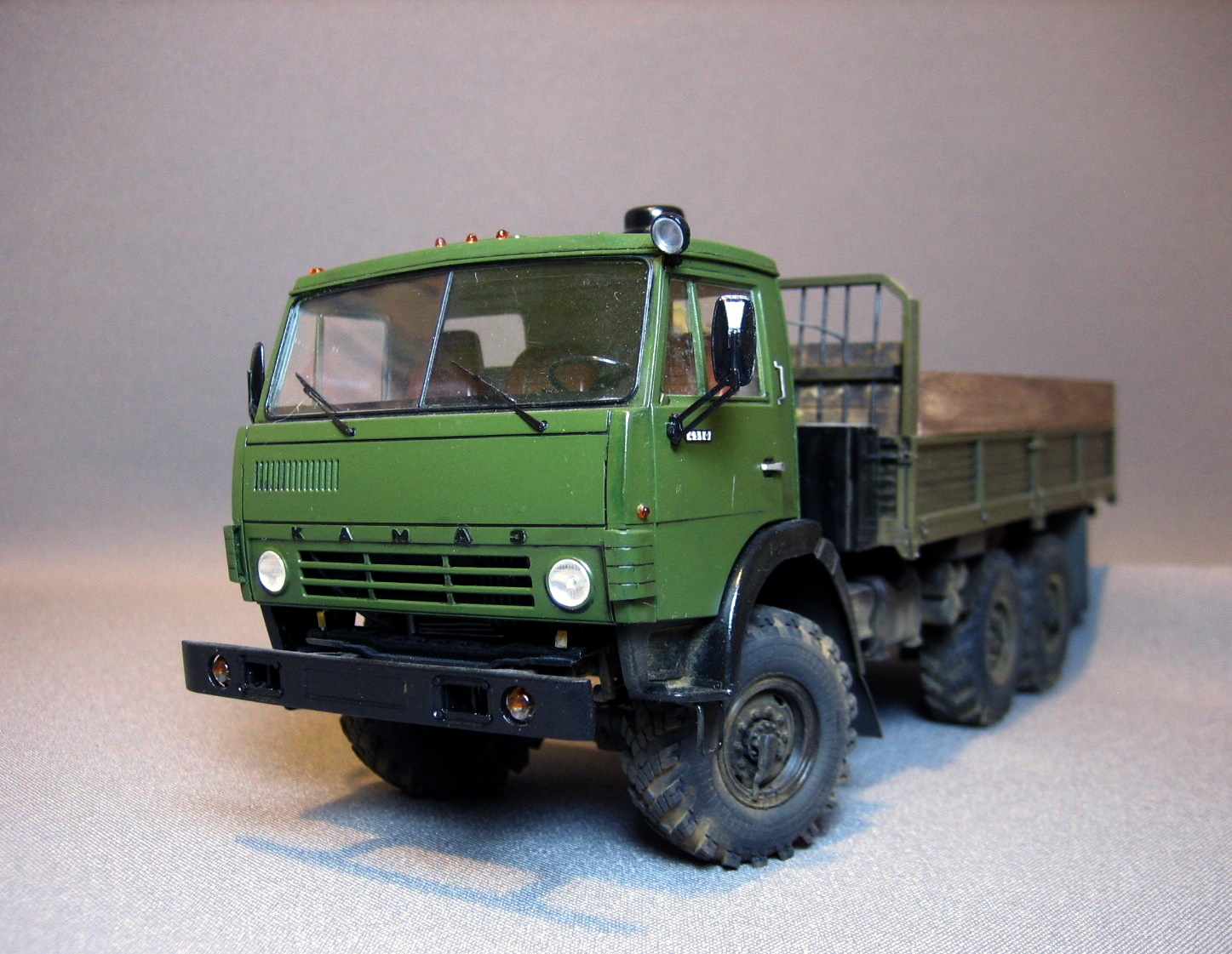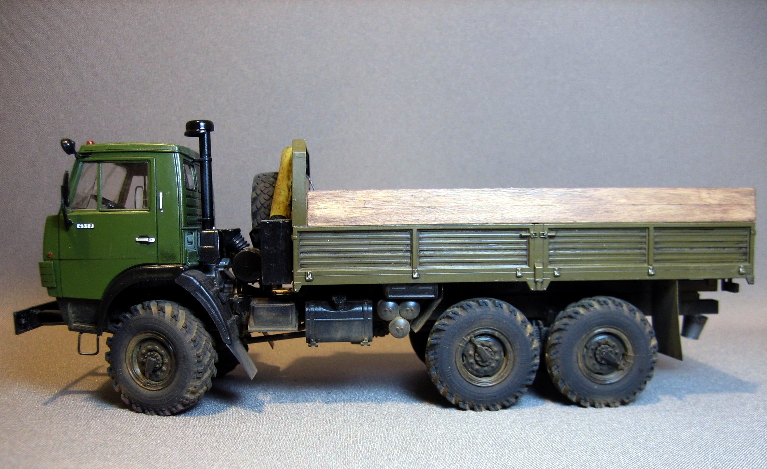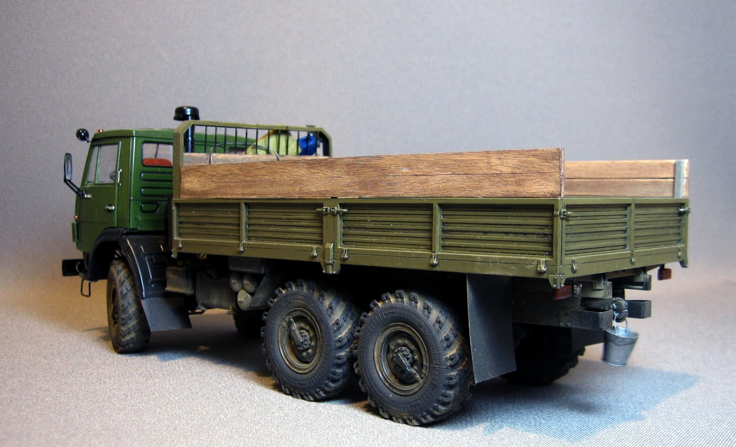 Серёжа, ДРУЖИЩЕ! Классный КамАЗ получился, поздравляю! У тебя теперь пополнение парка ещё на две единицы! Этот мне понравился больше из 2-х представленных. Может потому, что техника времён СССР вызывает у меня много светлых воспоминаний из детства, а может потому, что ДУШИ в нём больше (как ты сам написал). Имитация деревянных бортов хорошо получилась, окрас хороший (на другом шагрень великовата в некоторых ракурсах), мелочёвка здорово оживляет модель, легкая запылённость то, что надо (и эксплуатация чувствуется и перебора нет - попал в точку). Единственно что - чуть запылить задний борт со светотехникой прямо слегка, а то он уж сильно чистый получился.