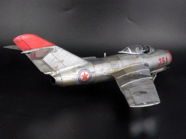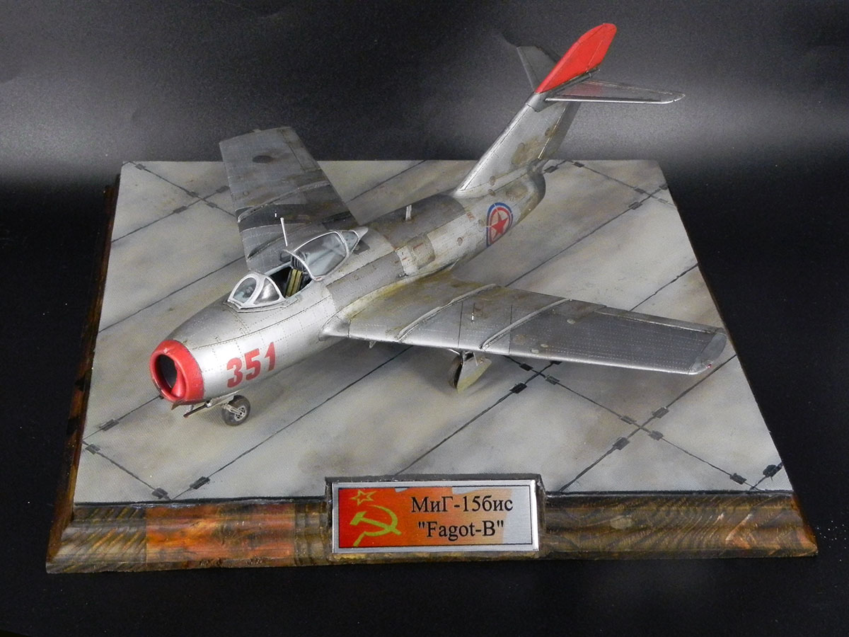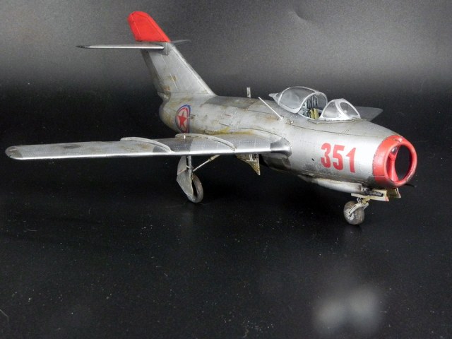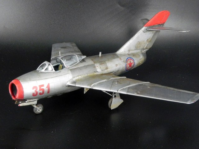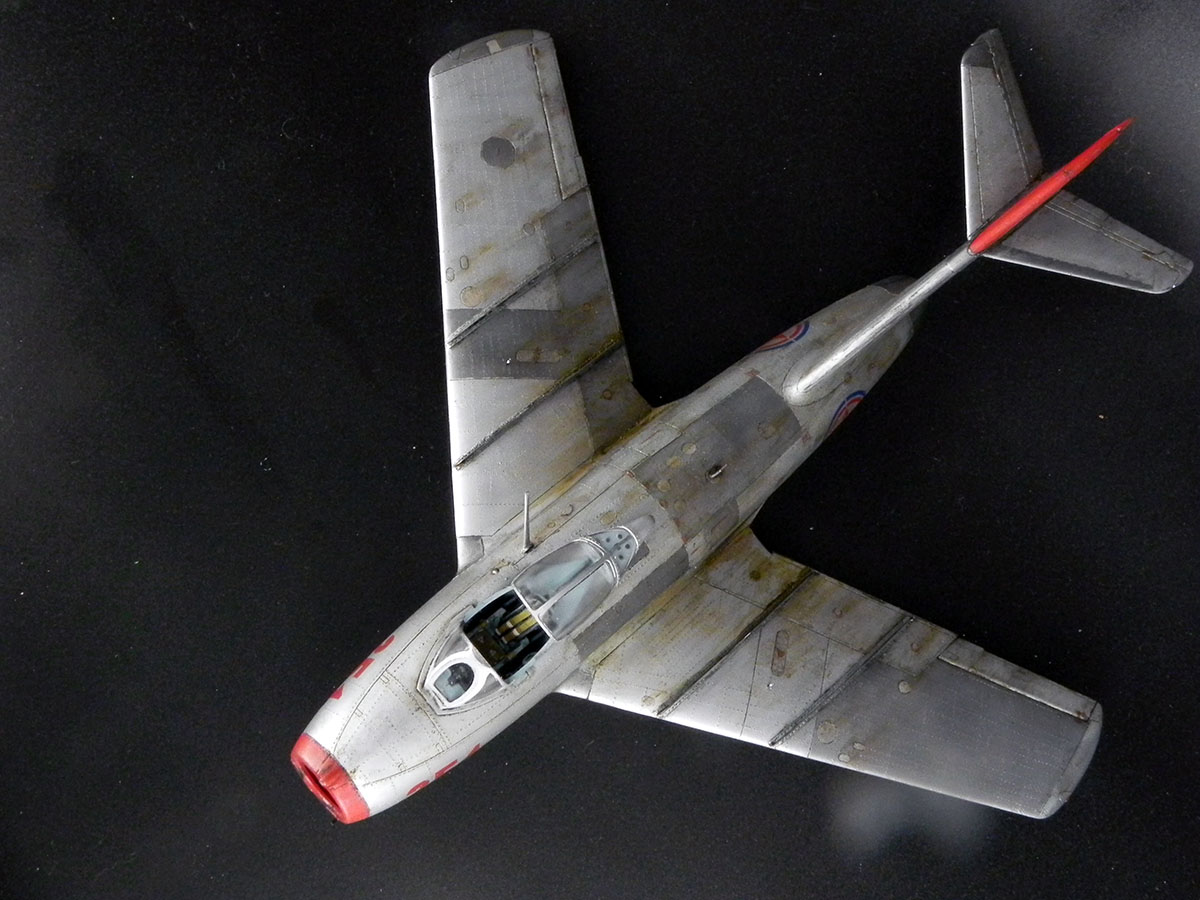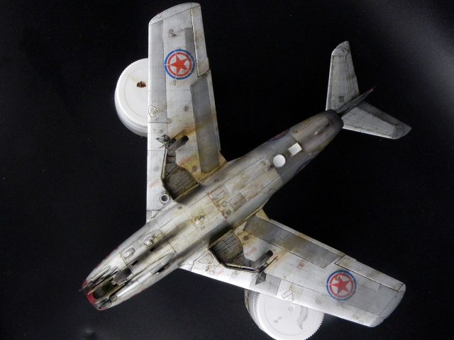 Модель от Bronko. Прототип - машина майора Оськина, принимавшая участие в Корейской войне. Сборка проблем не вызвала. Самой сложной операцией была накатка клёпки. Использовал смоляные колёса, интерьер от "Квинты" и травлёнку от "Микродизайна". При покраске попробовал разные эффекты "из книжек". Сами по себе эффекты мне понравились. Но именно на этом самолёте в эффектами вышел перебор.