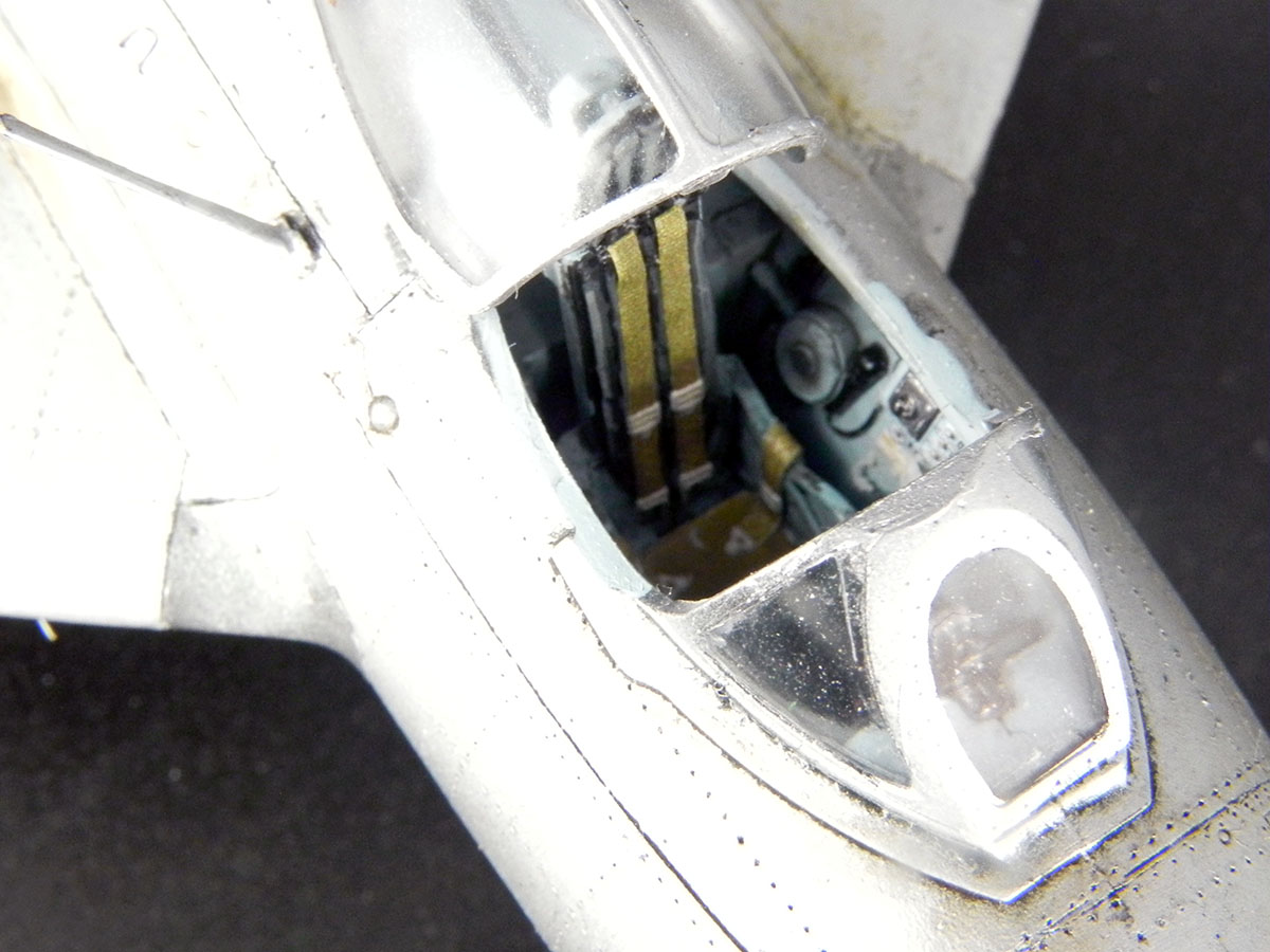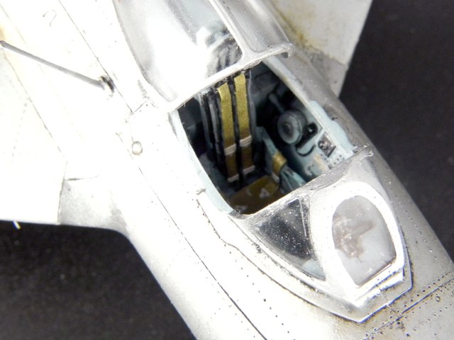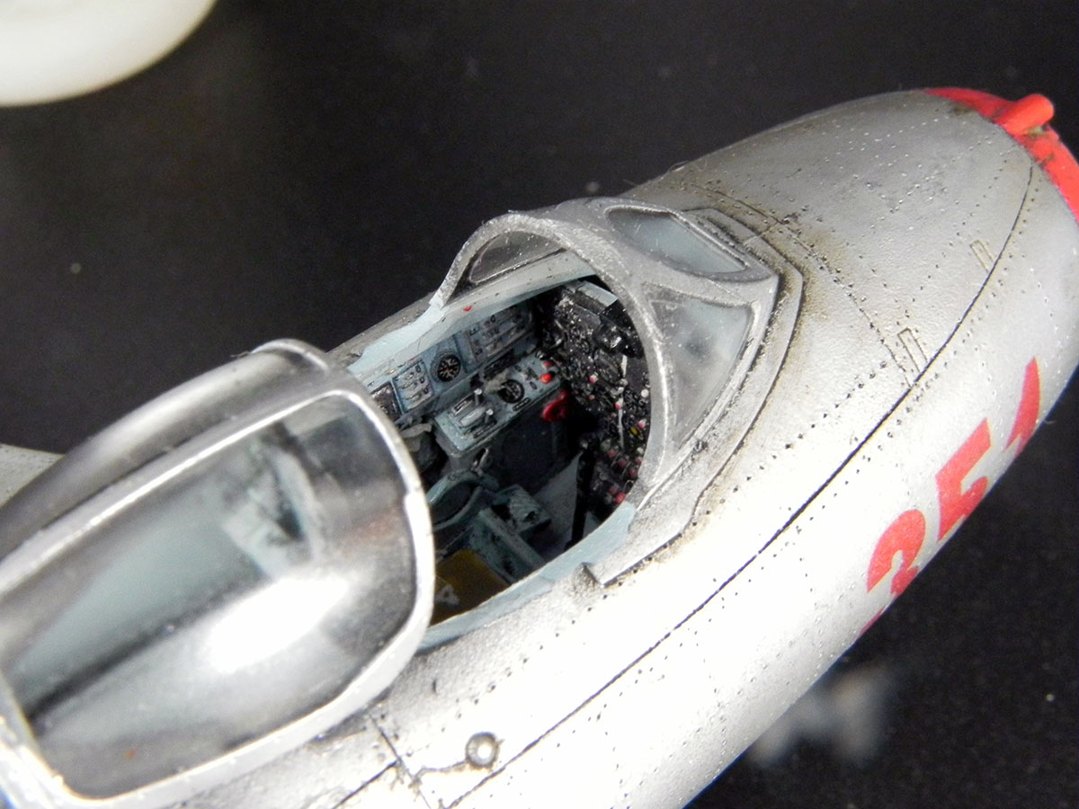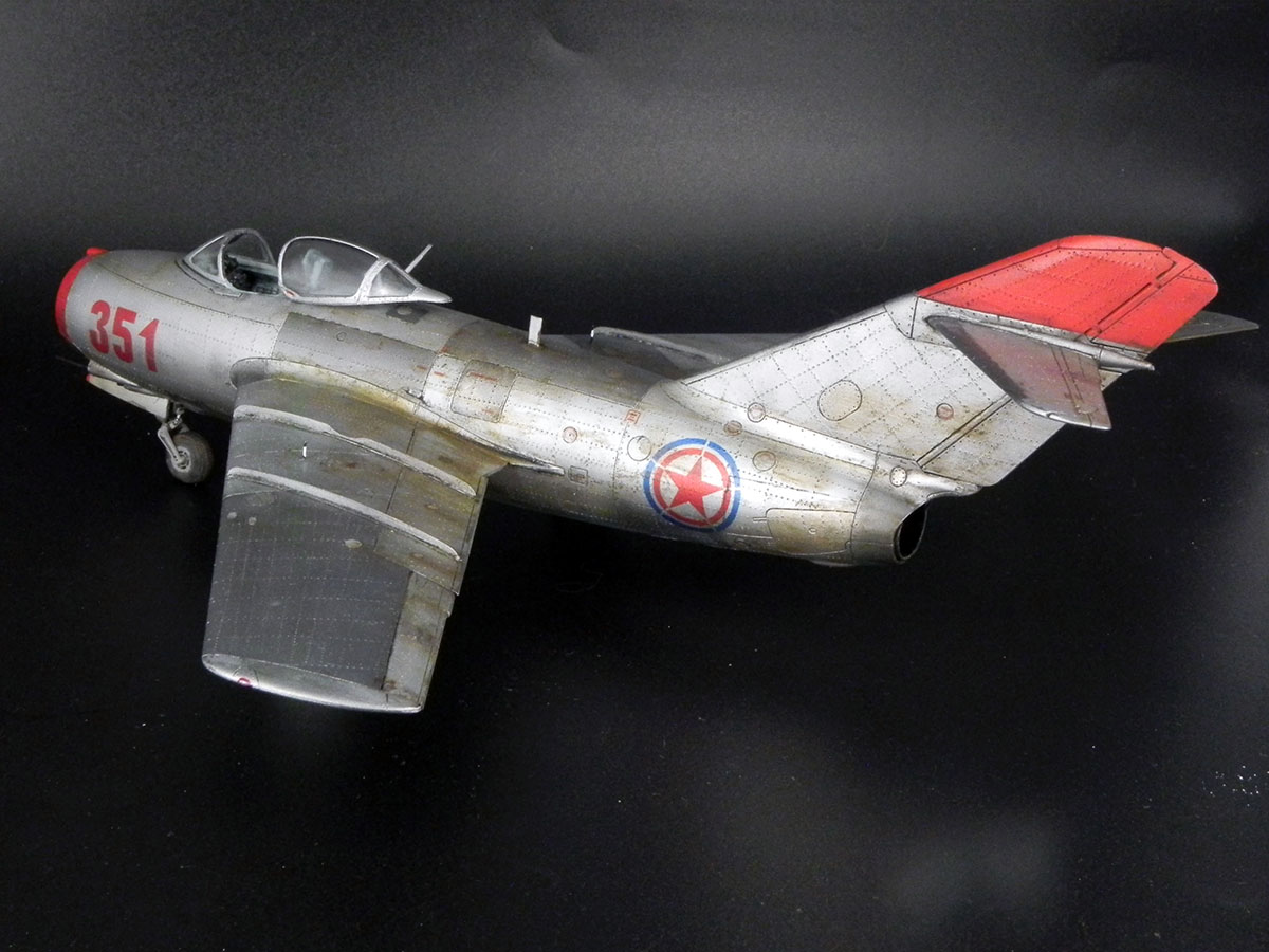 Модель от Bronko. Прототип - машина майора Оськина, принимавшая участие в Корейской войне. Сборка проблем не вызвала. Самой сложной операцией была накатка клёпки. Использовал смоляные колёса, интерьер от "Квинты" и травлёнку от "Микродизайна". При покраске попробовал разные эффекты "из книжек". Сами по себе эффекты мне понравились. Но именно на этом самолёте в эффектами вышел перебор.