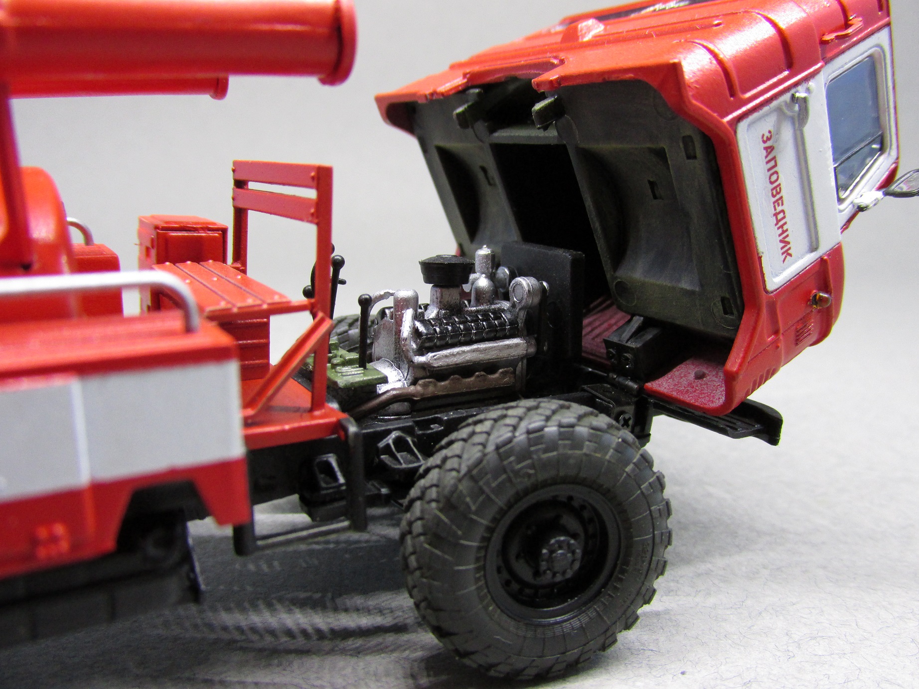 Модель собрана практически "из коробки". Отличное качество деталей и понятная инструкция позволяют собрать модель, как говориться, "на одном дыхании". Модель окрашена красками серии TS от Тамии (49,26) и после слегка припылена сухим пигментом от Тамии же. Дополнительнона модель установлен поворотный мост от Маестро моделс и 3D дворники от Петрограда.