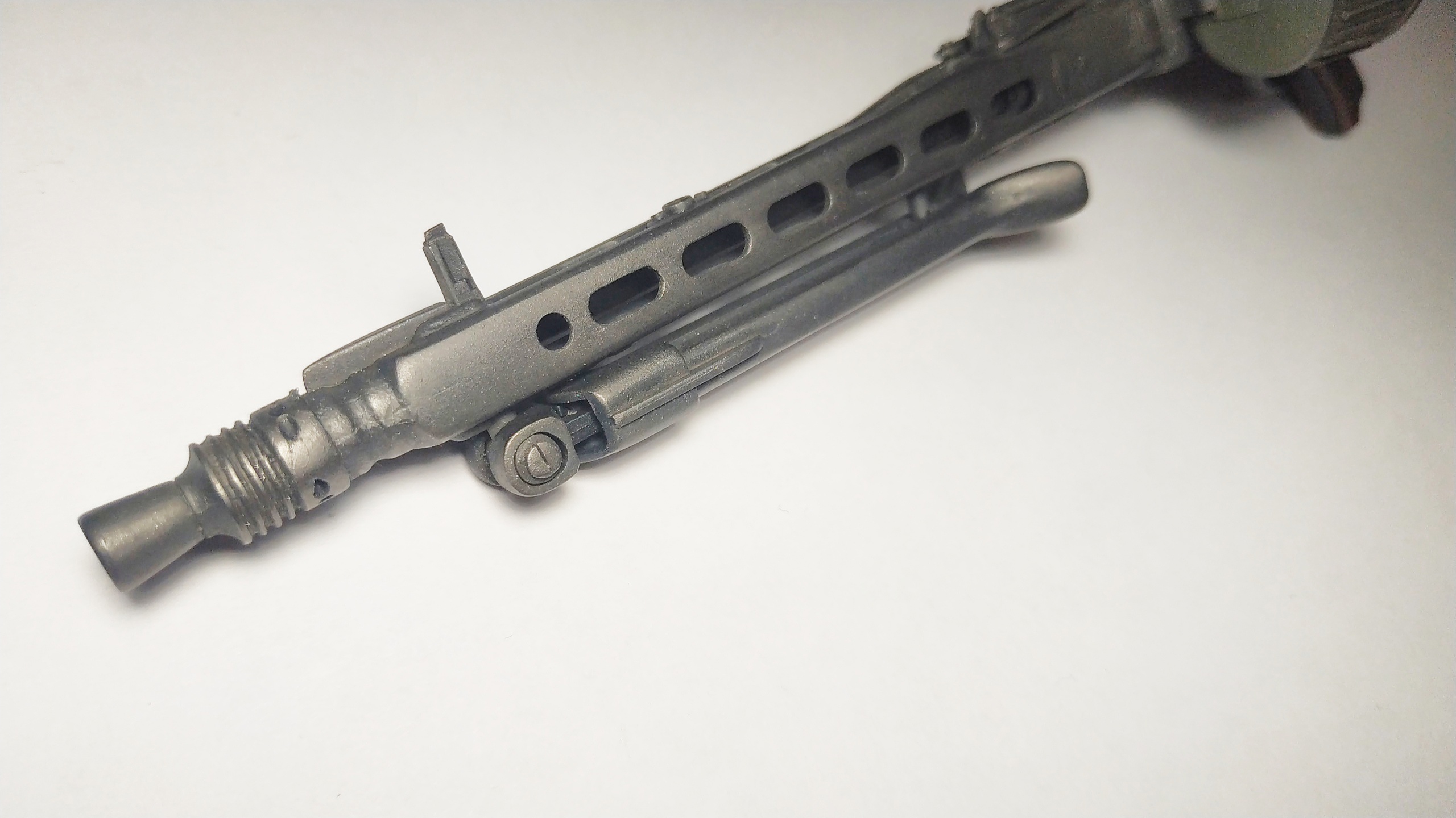 Захотелось собрать что нибудь необычное, попался вот такой быстра-сбор, заказанный с алика. Если не копать в матчасть то вполне узнаваем, немного подшаманил и добавил мелачевки. Модель имеет небольшой функционал: сменный ствол, подвижные сошки, имитацию затвора, подъемная крышка для установки патронной ленты (в комплекте идёт и она но увы не похожа на ту что должна быть)
