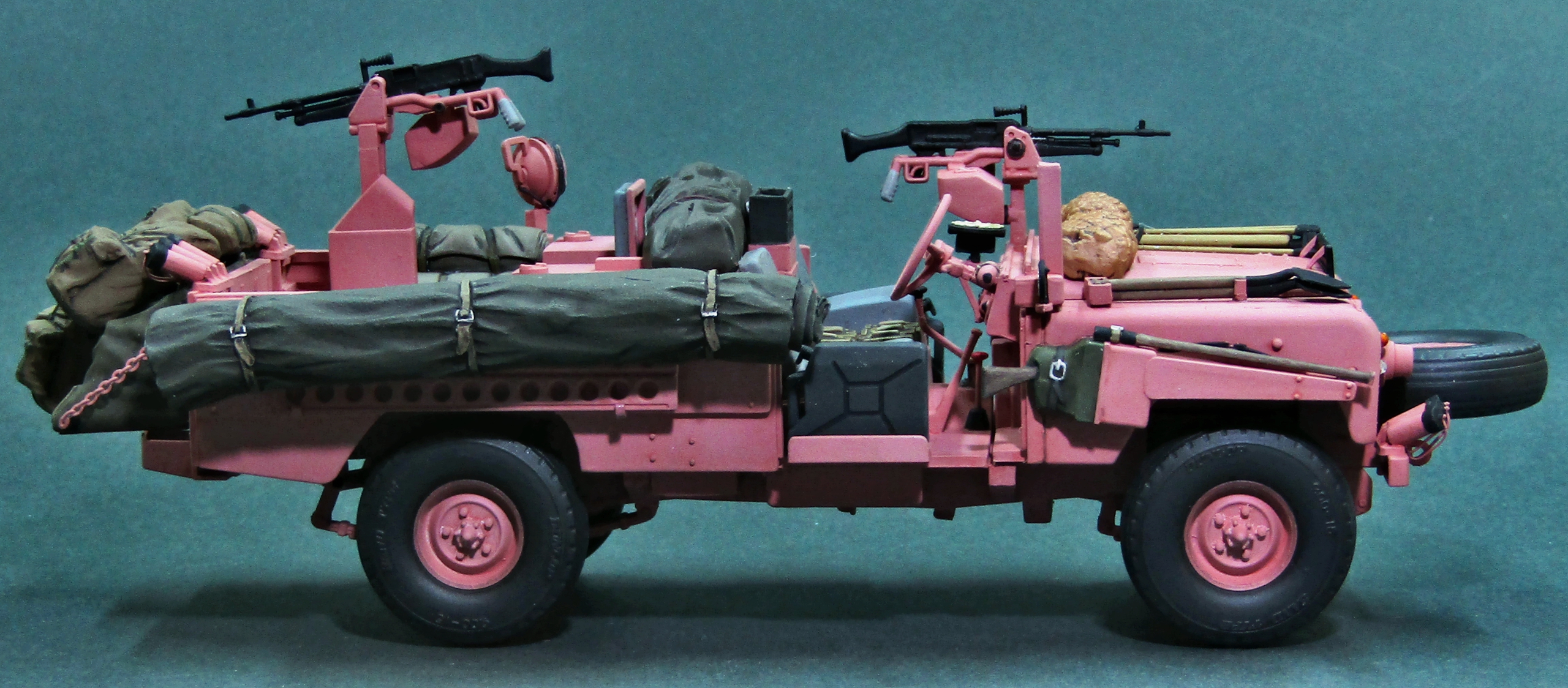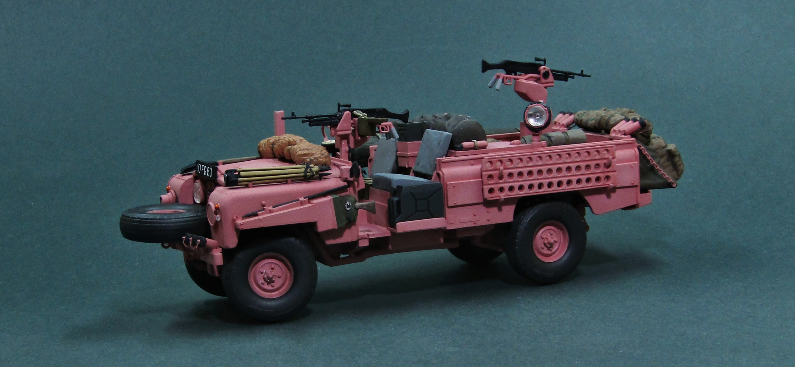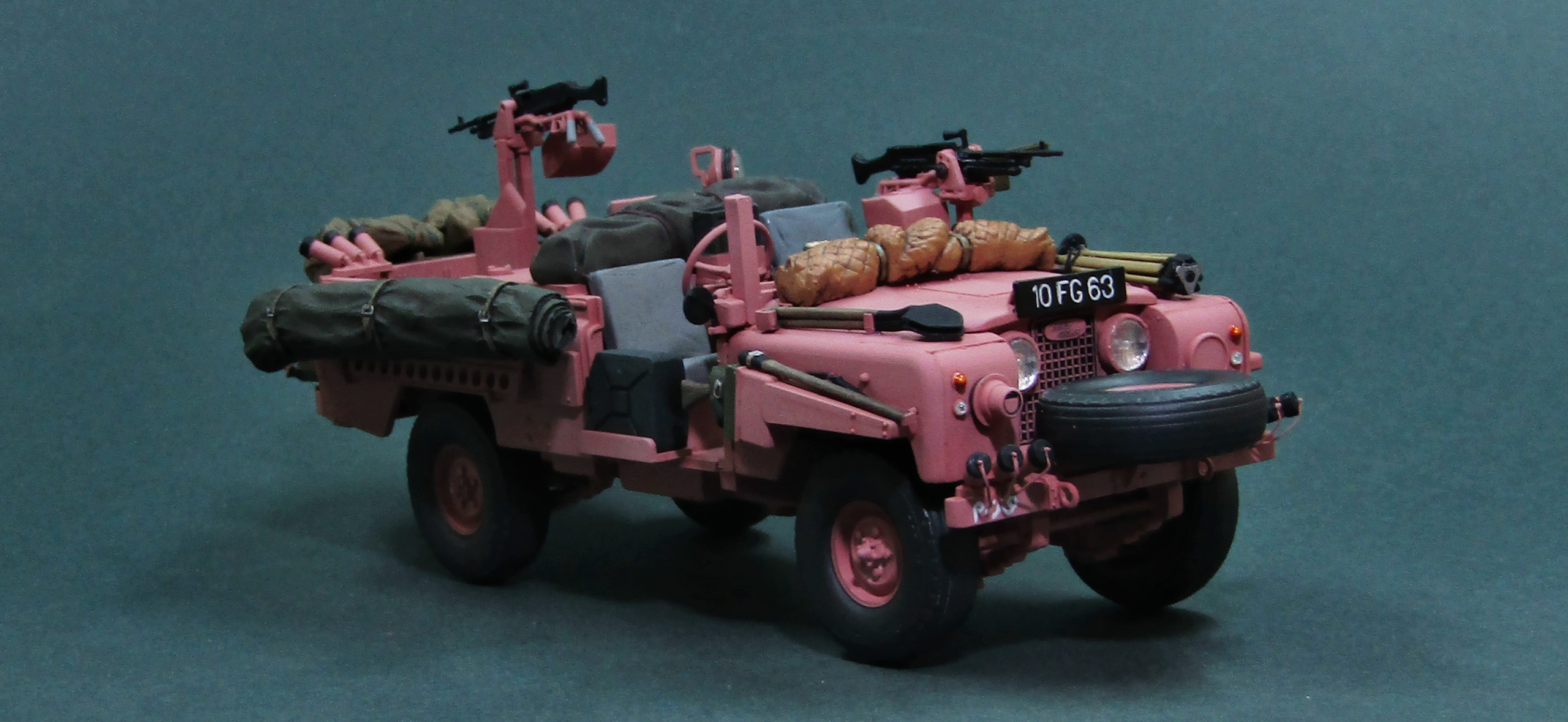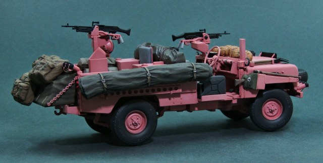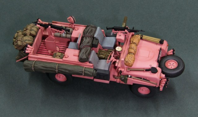 Всего было изготовлено 72 автомобиля LR Pink Panther, почти все из которых поступили на вооружение 22 полка SAS. В начале 1969 года машины отправили в Оман, где они приняли участие в боевых действиях против повстанцев так называемого Национального демократического фронта освобождения Омана, в ходе локального конфликта в провинции Дофар (The war in Dhofar, 1962-1976 гг). Немного слов о постройке модели, -