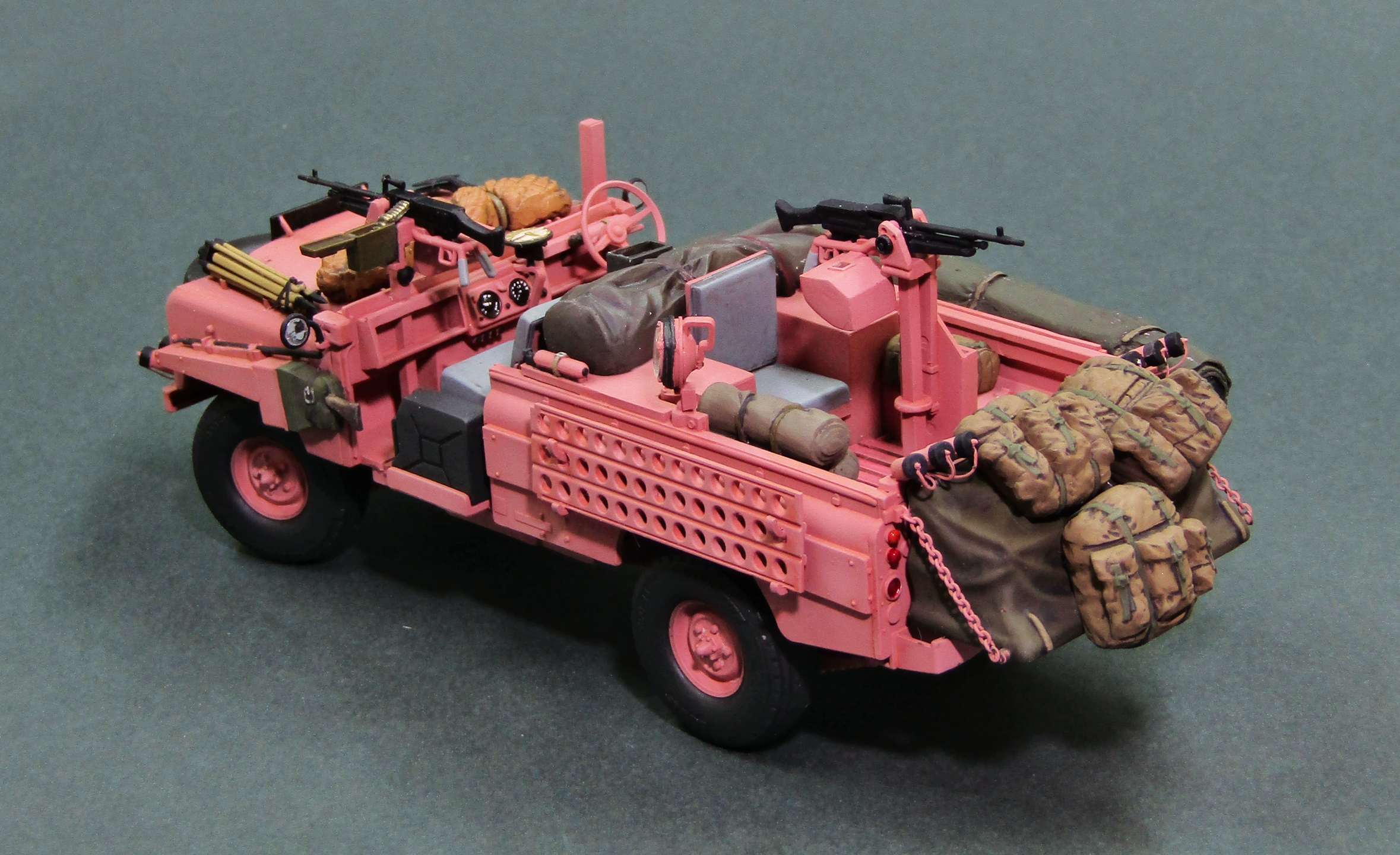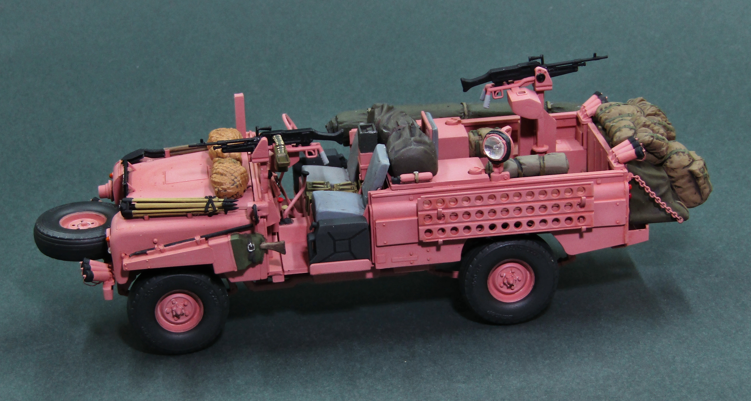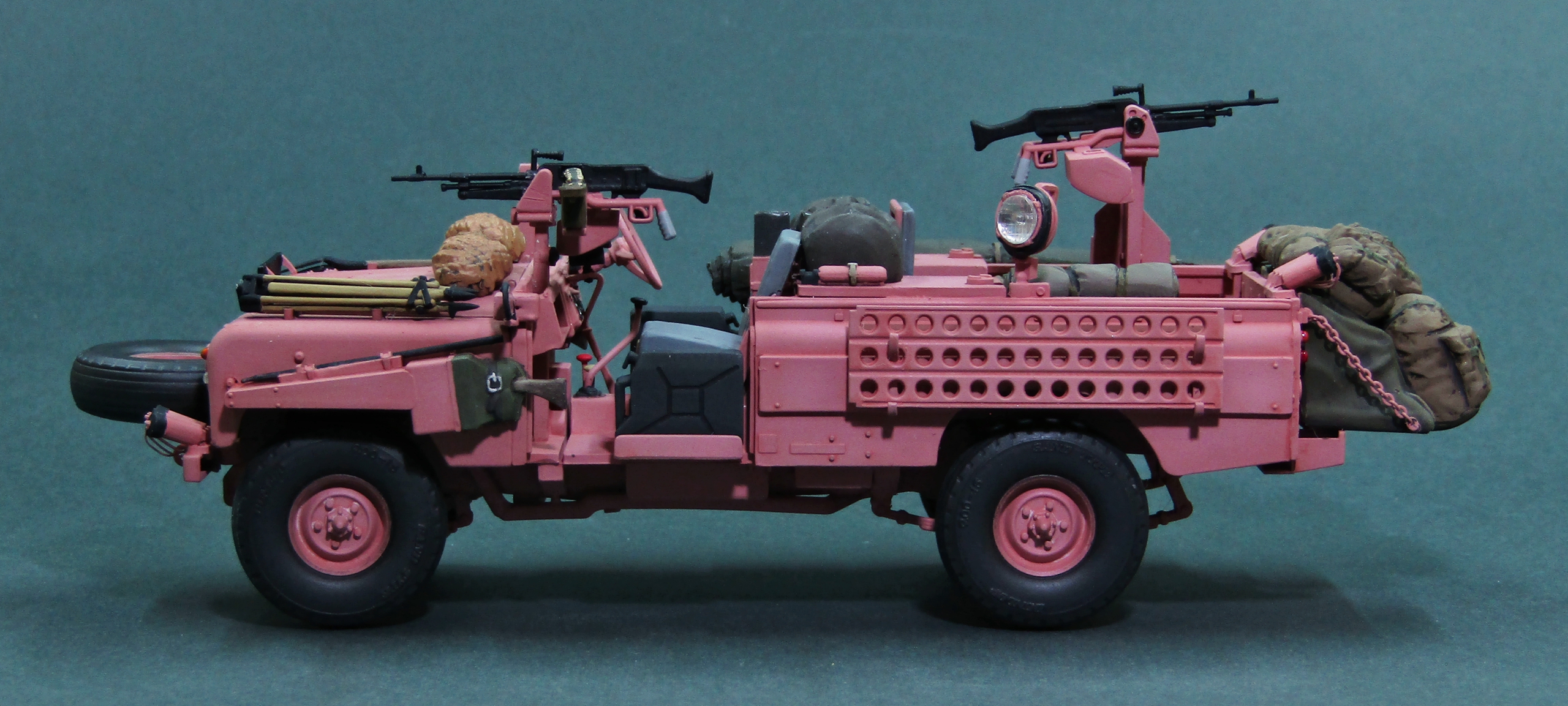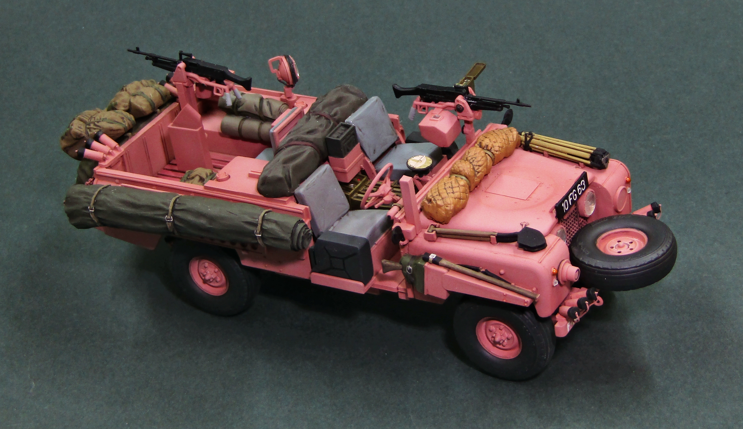 Всего было изготовлено 72 автомобиля LR Pink Panther, почти все из которых поступили на вооружение 22 полка SAS. В начале 1969 года машины отправили в Оман, где они приняли участие в боевых действиях против повстанцев так называемого Национального демократического фронта освобождения Омана, в ходе локального конфликта в провинции Дофар (The war in Dhofar, 1962-1976 гг). Немного слов о постройке модели, -