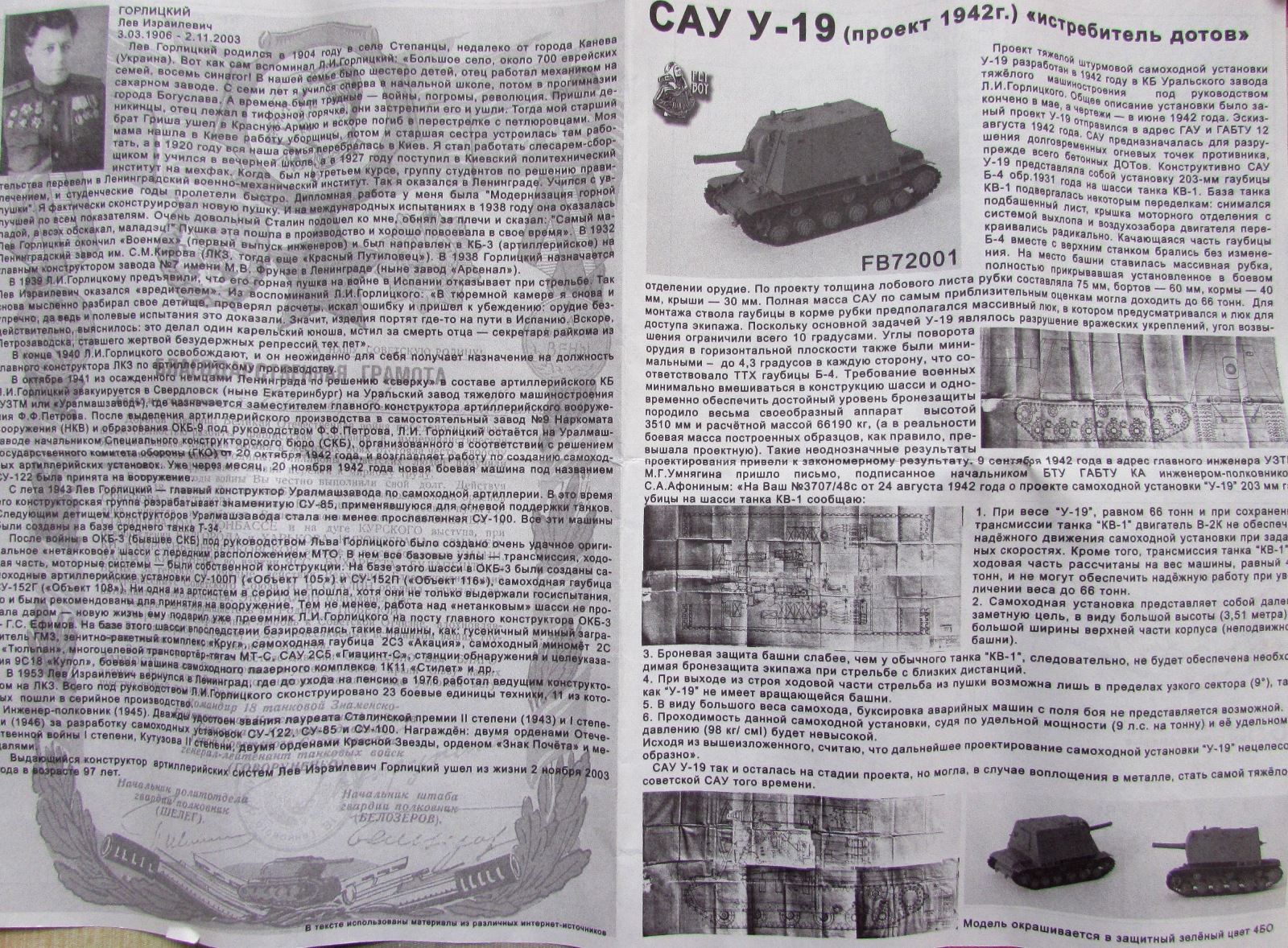 Герой данного обзора - устрашающая штурмовая САУ У-19, спроектированная КБ УЗТМ в первой половине 1942 года. Говорить о ней сложно, ибо проект был настолько сумрачный, что ужаснул ГАБТУ РККА уже на стадии чертежей. Более подробную информацию об этом проекте можно прочитать здесь и здесь.