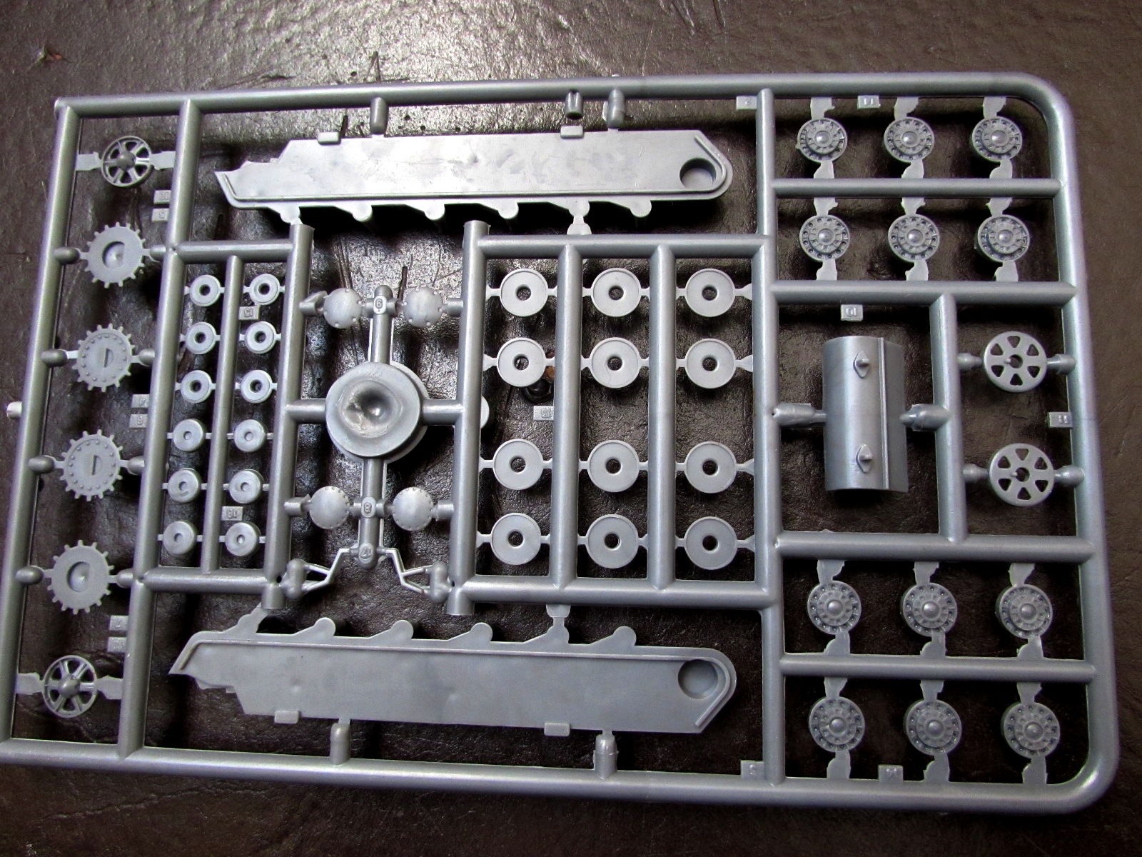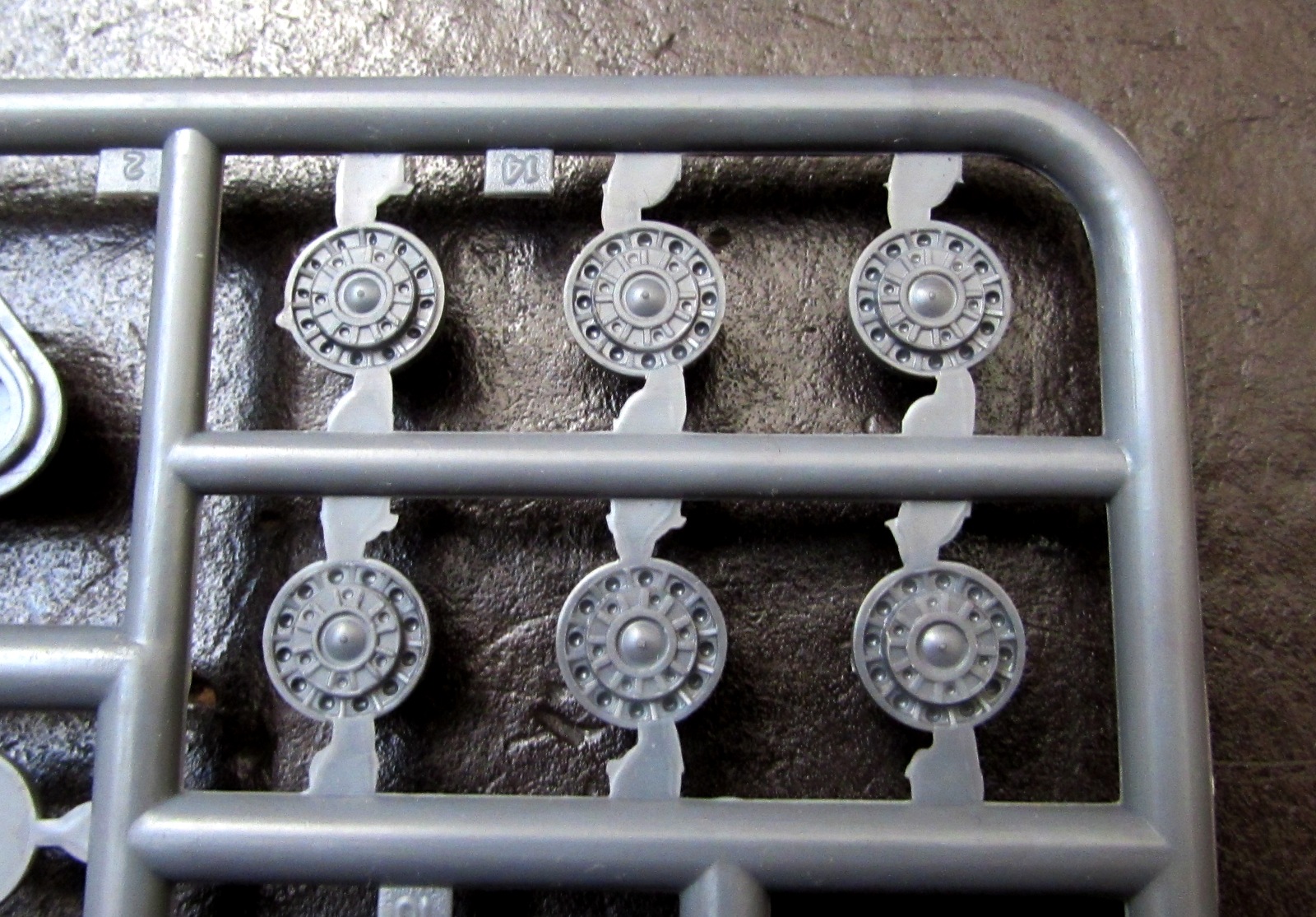 Корпус целиком взят от ПСТ - и впервые видна реальная усталость литьевой формы. На купленных мной ранее моделях такого почти не было. Про катки уже сказано выше, поддерживающие ролики стандартно для ПСТ раннего типа, с бандажами, что сразу означает и их замену на SG-Modeling. Ленивцы-звездочки - на ваше усмотрение, у меня завалялись от Григорова.