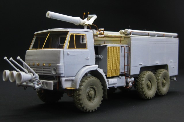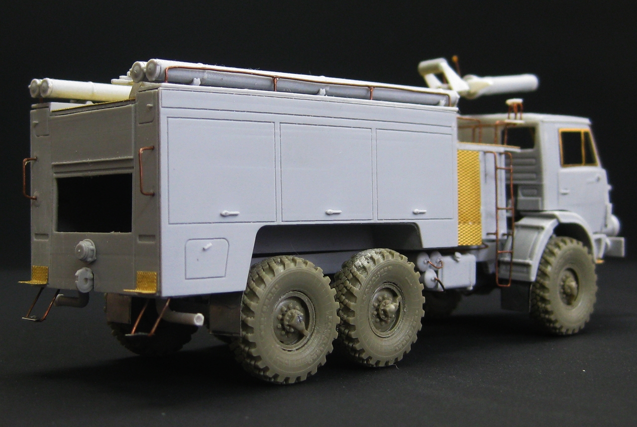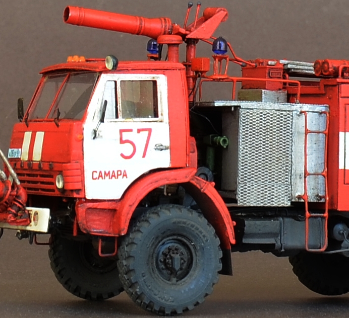 Много вопросов к разработчику сие набора: форма кабины,плоское ветровое стекло из-за чего крыша смотрится как кепка с козырьком, черезмерно выпирающие крылья с большим зазором с дверьми, есть визуальное подозрение что колёса больше нужного, кузов как будто сжат (на прототипе он визуально длиннее), также заднее колесо практически цепляет нижнюю часть кузова, серебристые трубы относительно красных раструбов на переднем бампере стоят под большим углом (на прототипе они почти параллельно стоят), раструб над кабиной коротковат и мигалки на всех фото прототипов стоят на кузове.