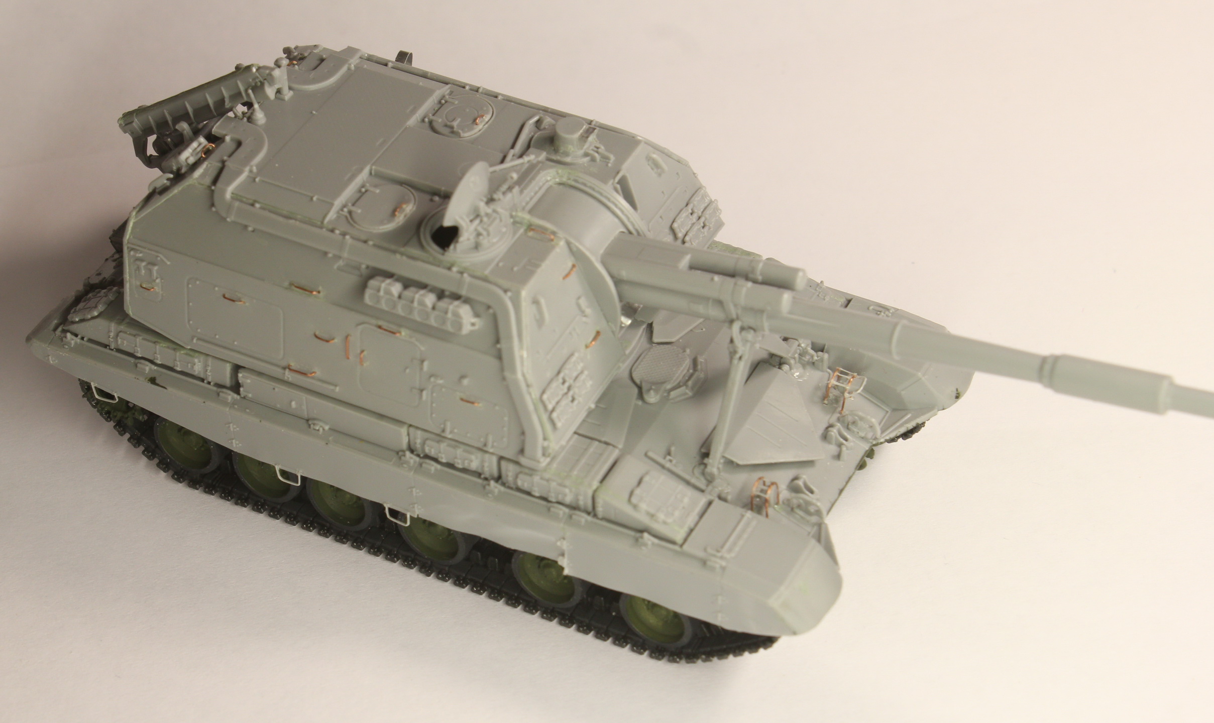 Касательно самого набора: я остался доволен качеством, собираемостью и стыкуемостью модели. Шпатлевка и напильник в основном использовались там, где делались какие-либо доработки. Ну вот стыковка панелей башни не очень очевидна, я там слегка промахнулся, но вроде подравнял так, чтобы в глаза не бросалось.