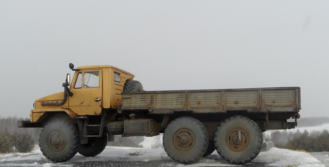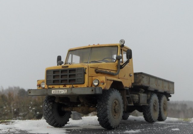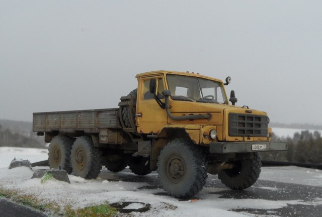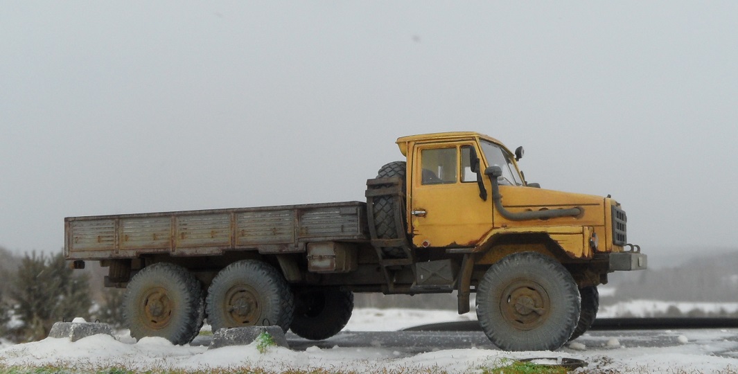 Всем привет! Сегодня пара необычных ну по крайней мере для меня новинок от AVD Models . Первая эта смесь Камаза и Урала- УРАЛ-4322. Урал-4322 мог бы быть заменой уже устаревшему "Урал-4320". Урал-4322 разработали в Миассе в рамках проекта «Суша». Согласно заданию проекта, был необходим грузовик повышенной проходимости с дизелем воздушного охлаждения. Однако в СССР такие автомобильные дизели не производили. Для его производства были начаты переговоры с немецкой машиностроительной компанией Klockner-Humboldt-Deuz (KHD). Дизели которого успешно себя зарекомендовали на автомобилях Magirus-Deutz, купленных для строительства БАМа. У немцев имелся подходящий дизель выпускавшийся с 1969 года. Производство дизеля воздушного охлаждения планировалось в Казахской ССР. В Кустанае для выпуска дизельных 8-цилиндровых V-образных Deutz мощностью 256 л. с. двигателей началось строительство нового завода вошедшего в производственное объединение "УралАЗ" и который был введен в строй лишь в 1992 году. Первый опытный образец Урал-4322 построен в 1978 году. Автомобиль был во-многом унифицирован с прежним семейством 4320, однако, получил оригинальное "оперение" и капот и кабину унифицированную с кабиной автомобилей КамАЗ. Модель интересная я даже не знал о таком авто . Кабина и рама металл, остальное пластик. По сборке ничего сложного, все легко стыкуется и собирается. Добавил от себя немного по мелочам ручки, дворники. Окрашивал эмалью Мотип, Дупли колор,грунт кудо.Приятного просмотра!