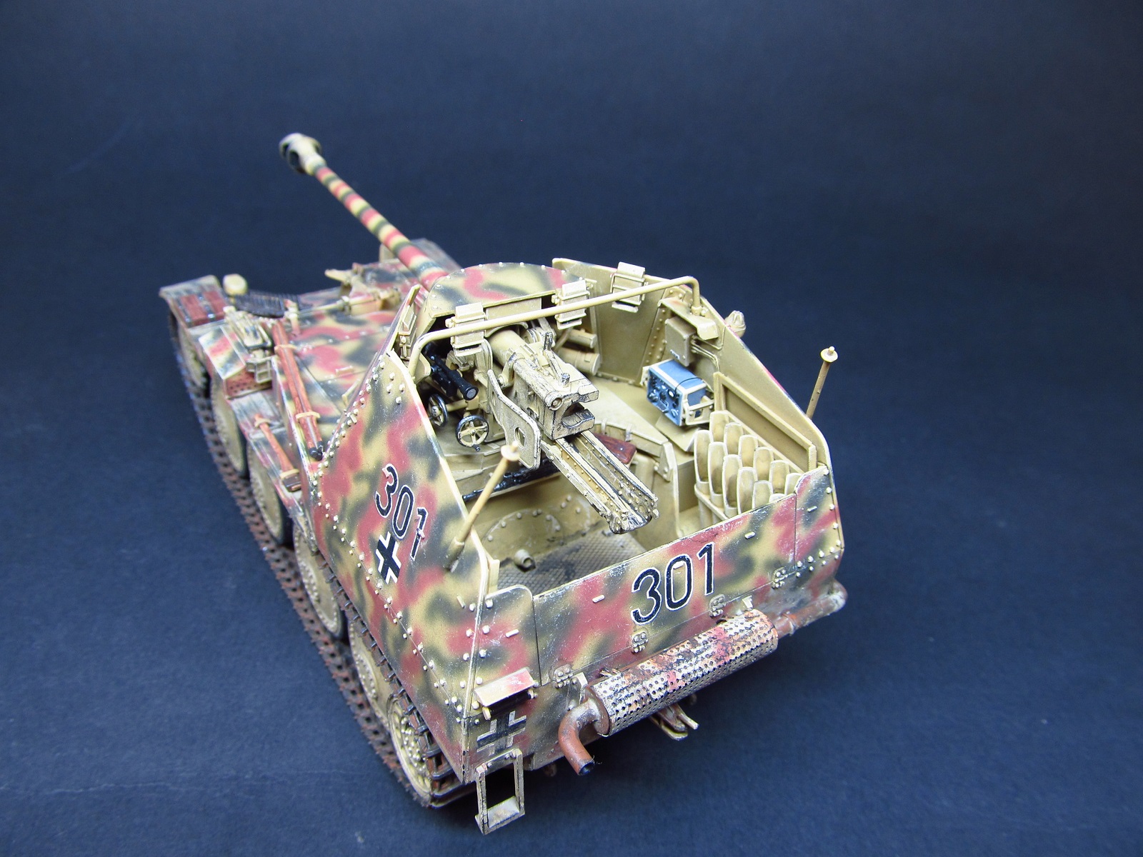 Сергей, благодарю, дружище! Да, своего рода- эксперимент. Цвета камо я всегда замешиваю вновь, применительно к каждой своей работе, шаблонов не использую. Да и боковики камуфляжа из сети всегда предлагают разные оттенки зеленого, коричневого и дункельгельба. По черно-белым фотографиям тяжело определить разность цветовой гаммы камуфляжа, но зачастую видно, что где-то пятна темнее, где-то светлее... Так как краска камуфляжа замешивалась и наносилась в предбоевых условиях силами экипажей, то логично предположить, что цвета "гуляли". В этой работе коричневый ближе к цвету грунта (замешали с грунтом- почему бы и нет?))))