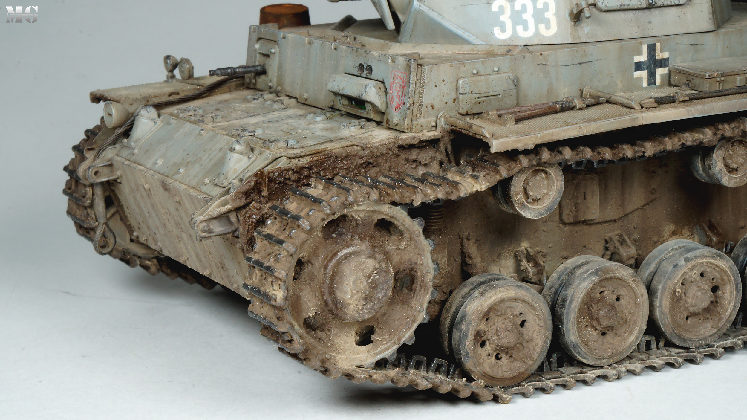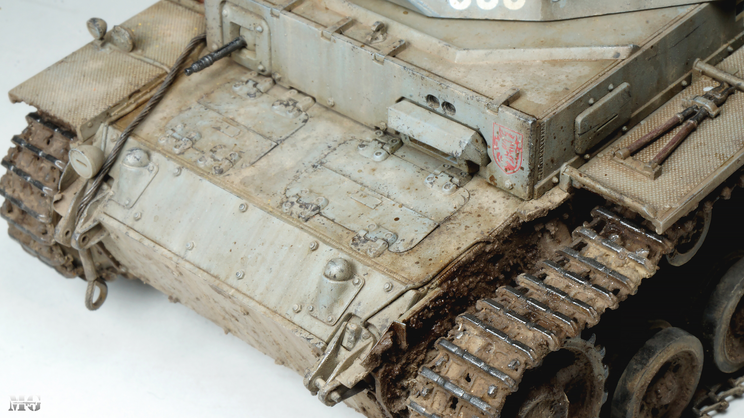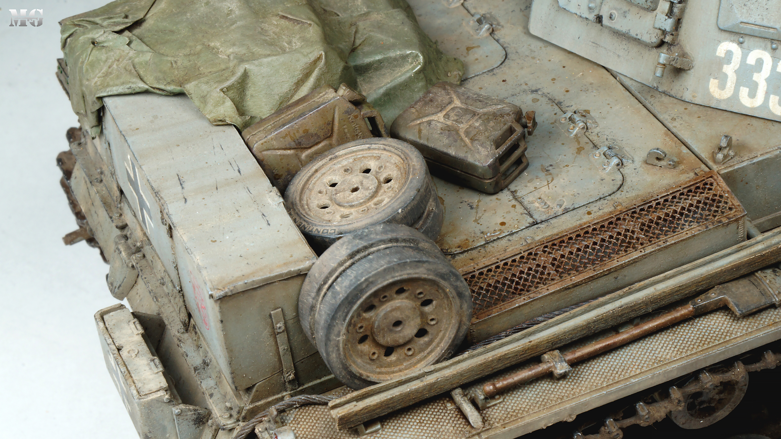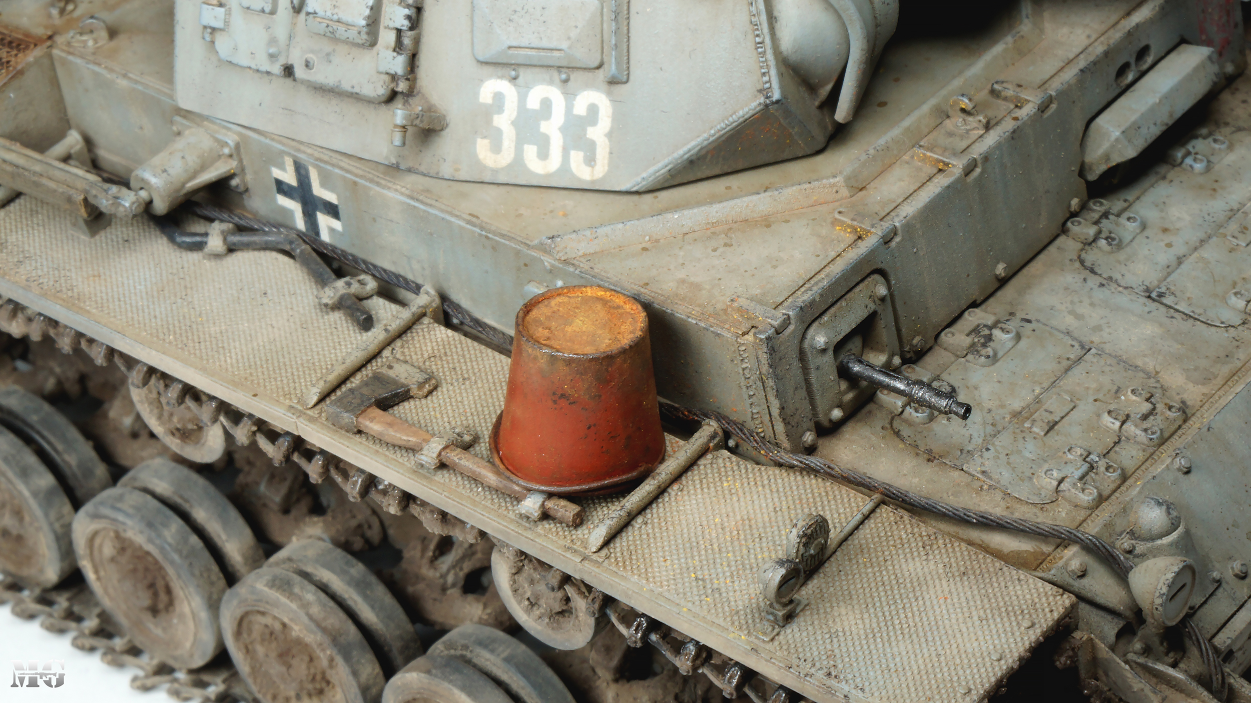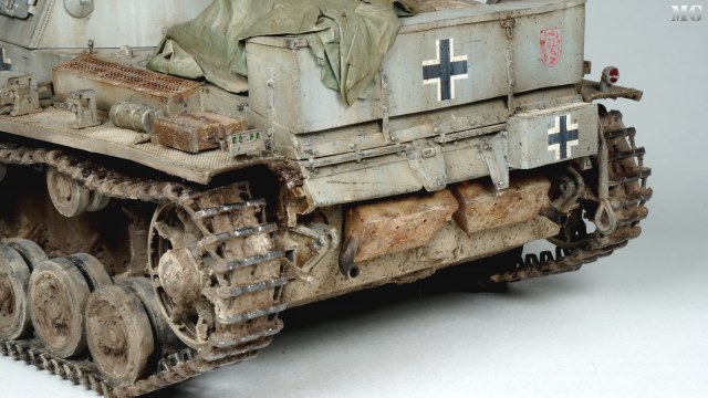 Эффектная модель в плане художки. Панцергрей, на мой взгляд, слишком светлый и Драгон так и не научился делать крепления для шанцевого инструмента. Их надо менять на травление.