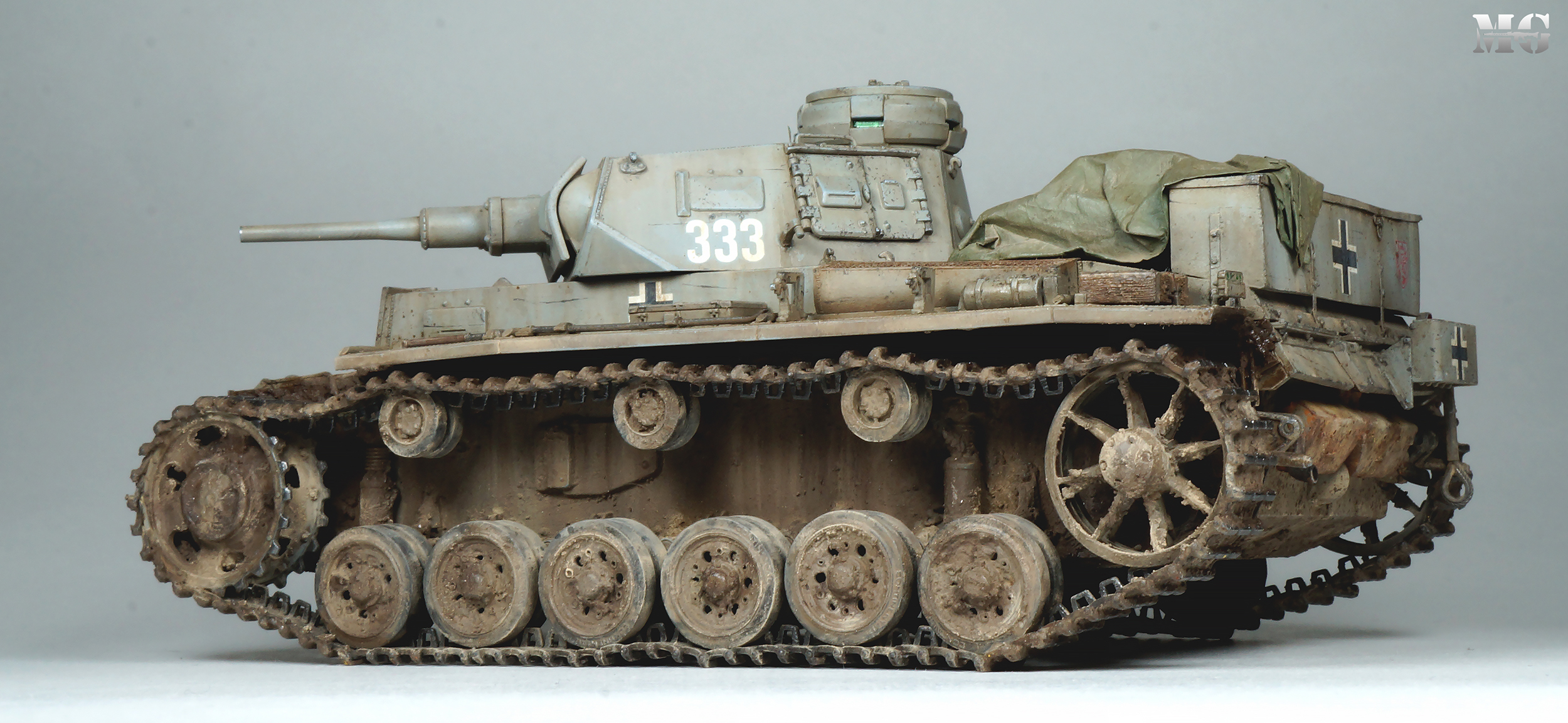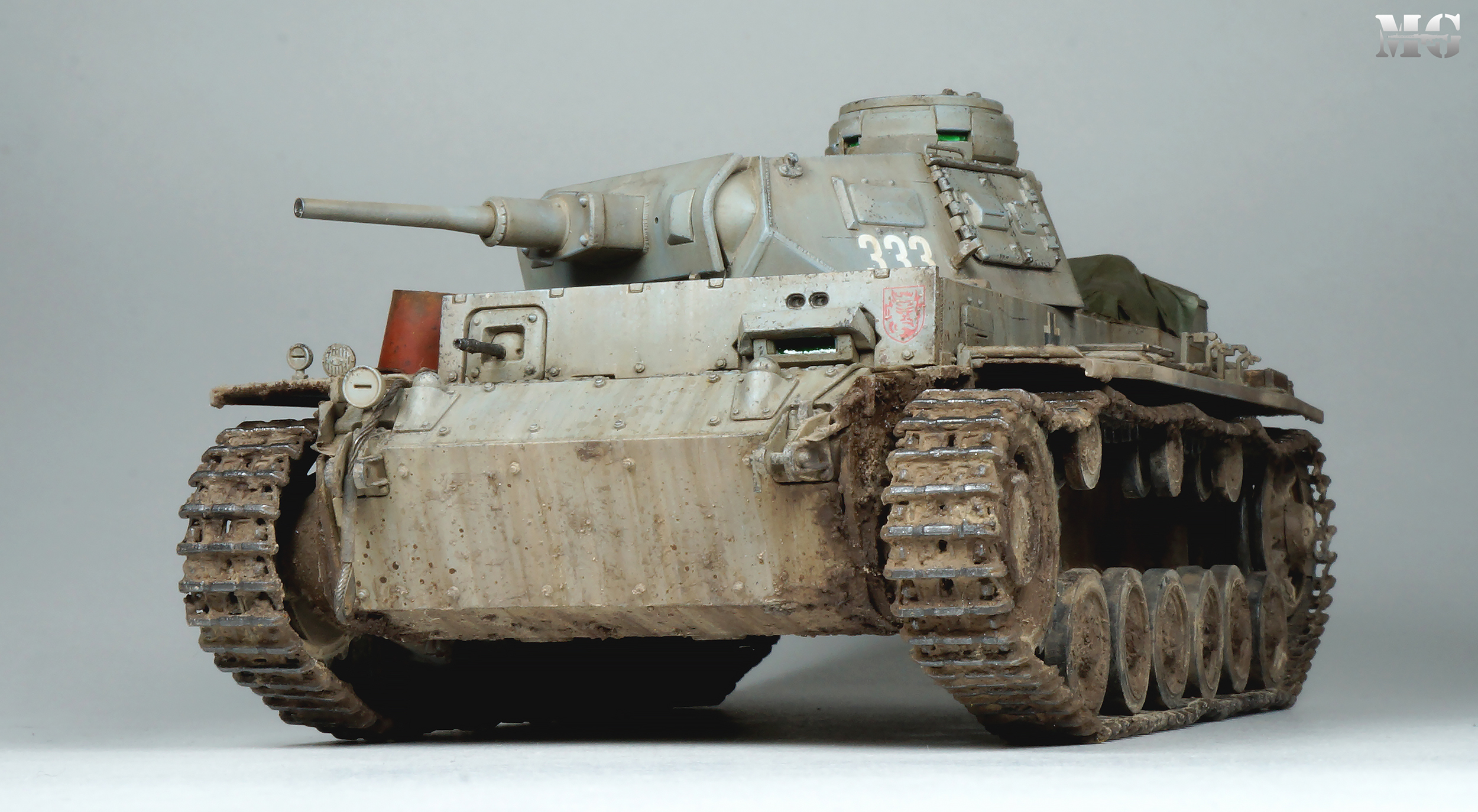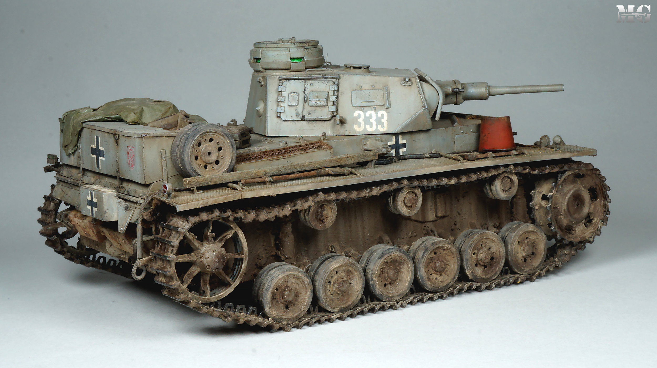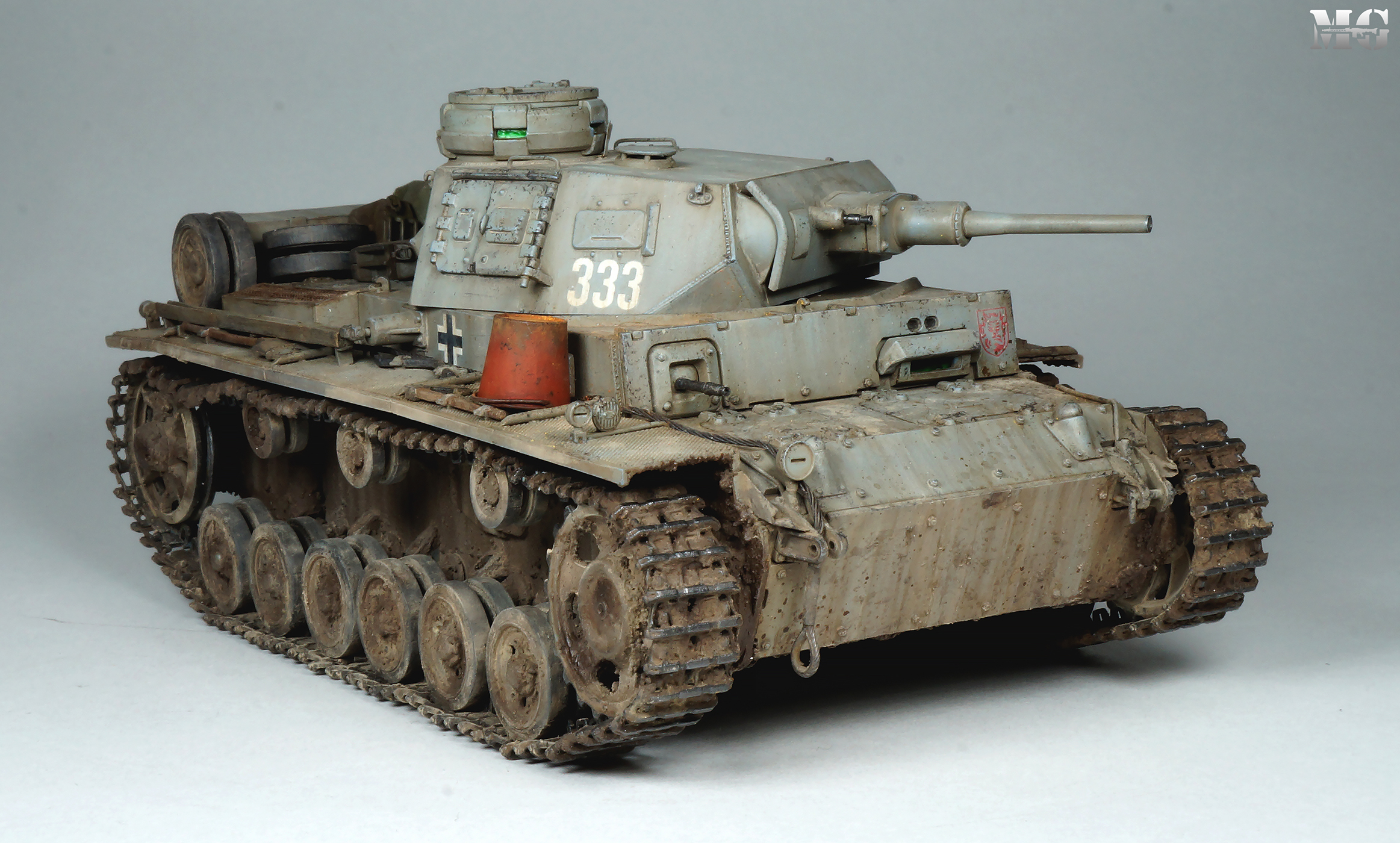 Эффектная модель в плане художки. Панцергрей, на мой взгляд, слишком светлый и Драгон так и не научился делать крепления для шанцевого инструмента. Их надо менять на травление.