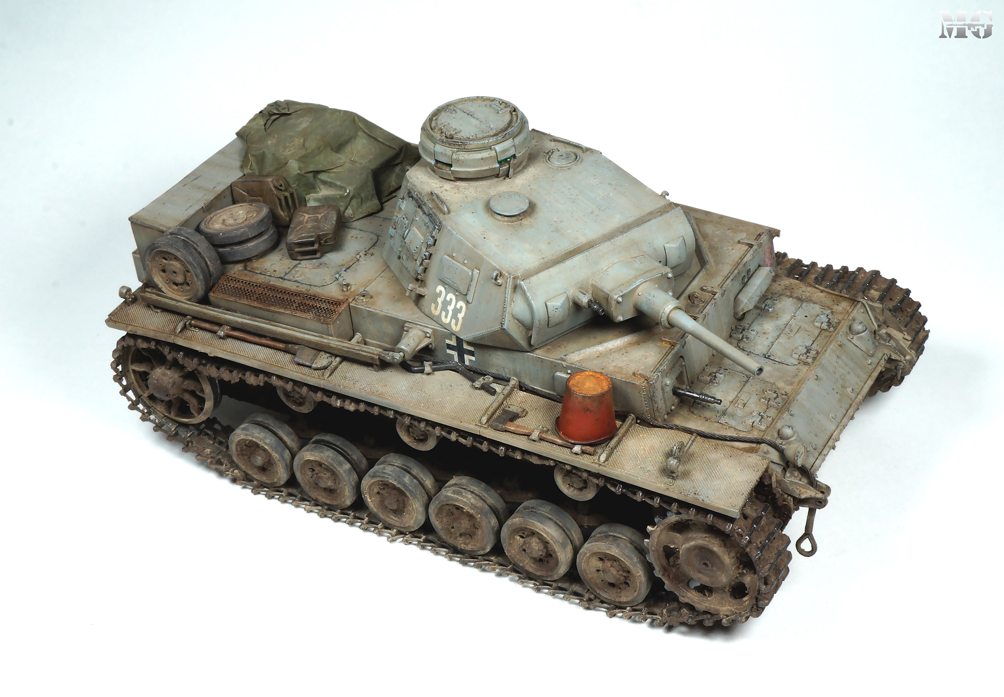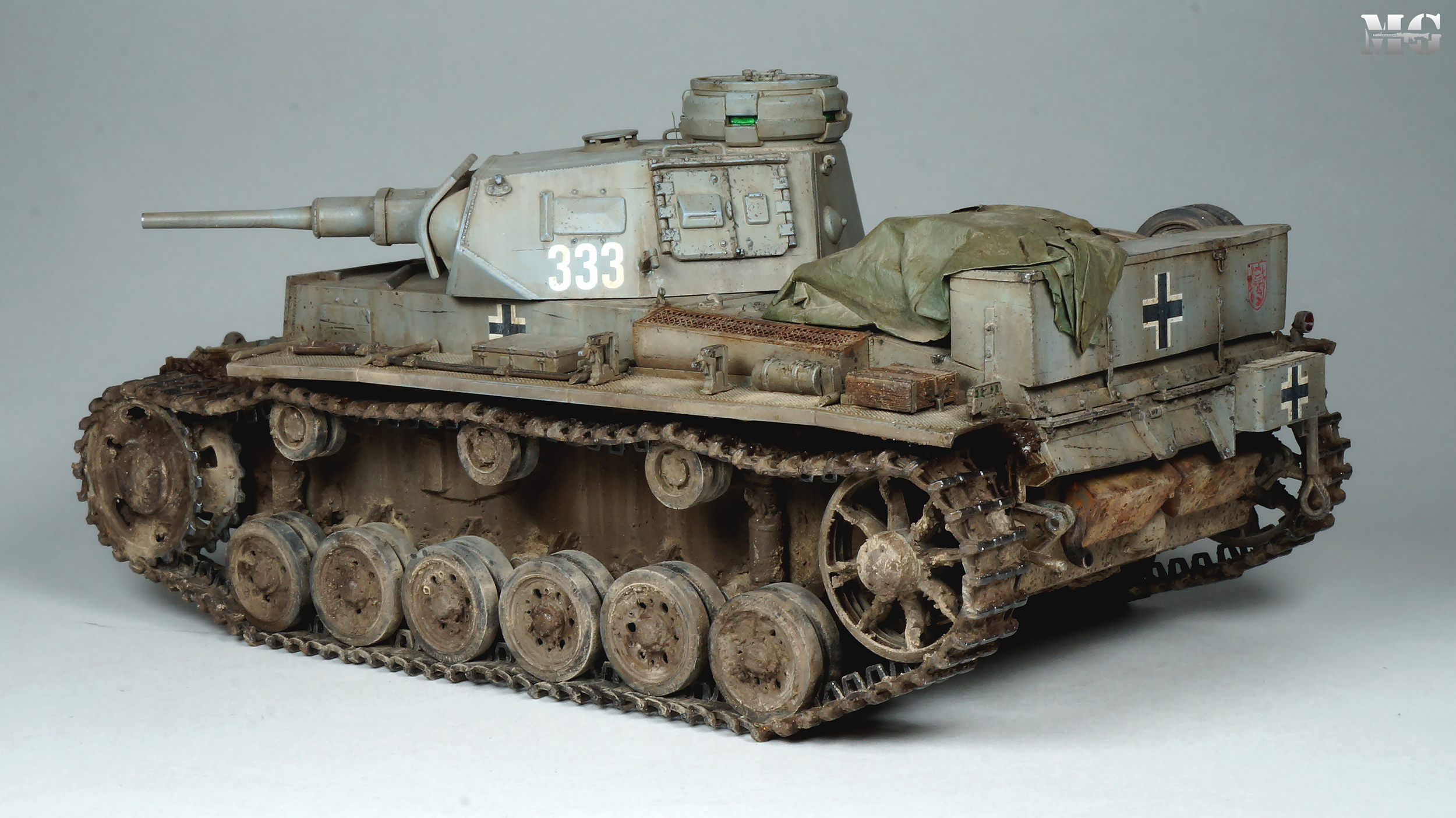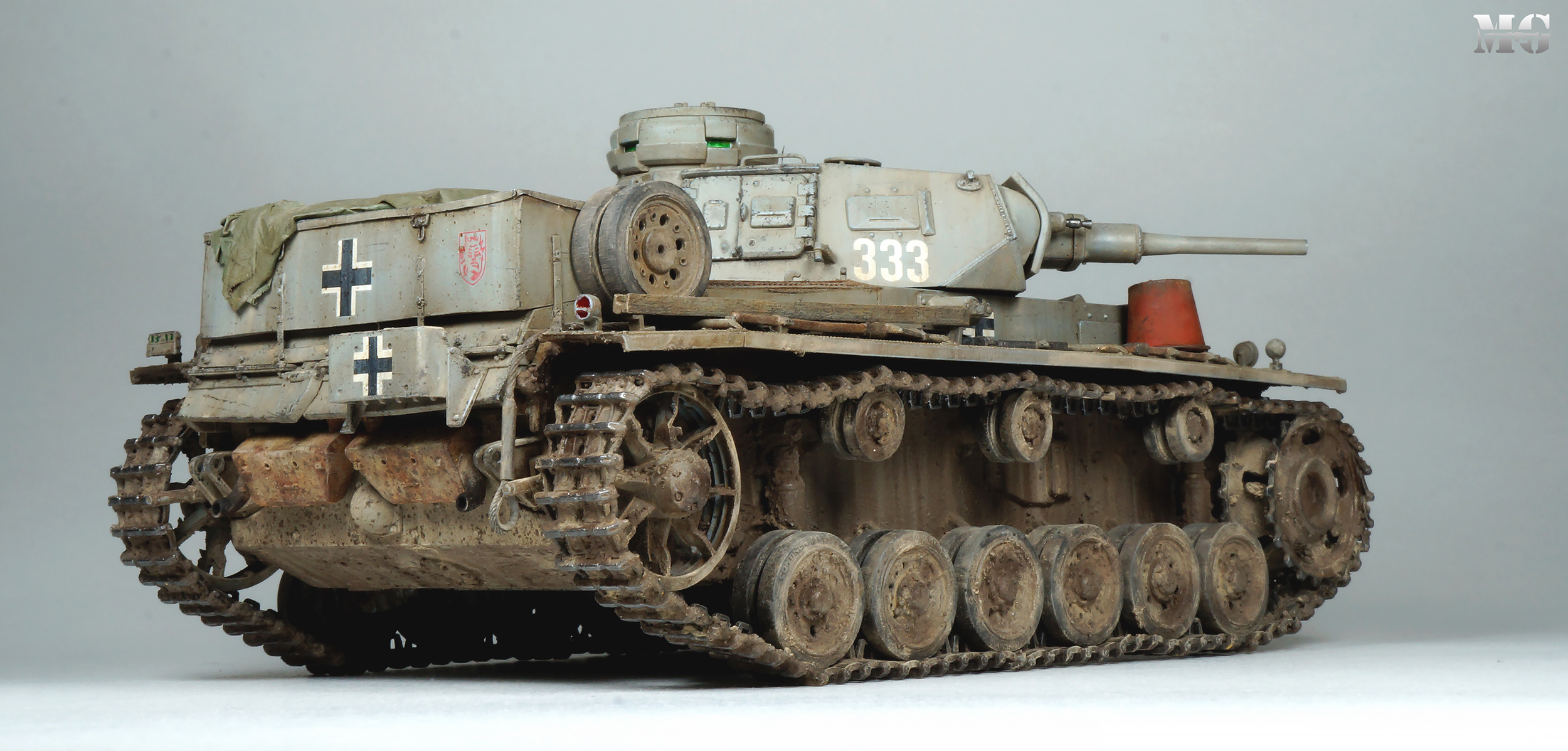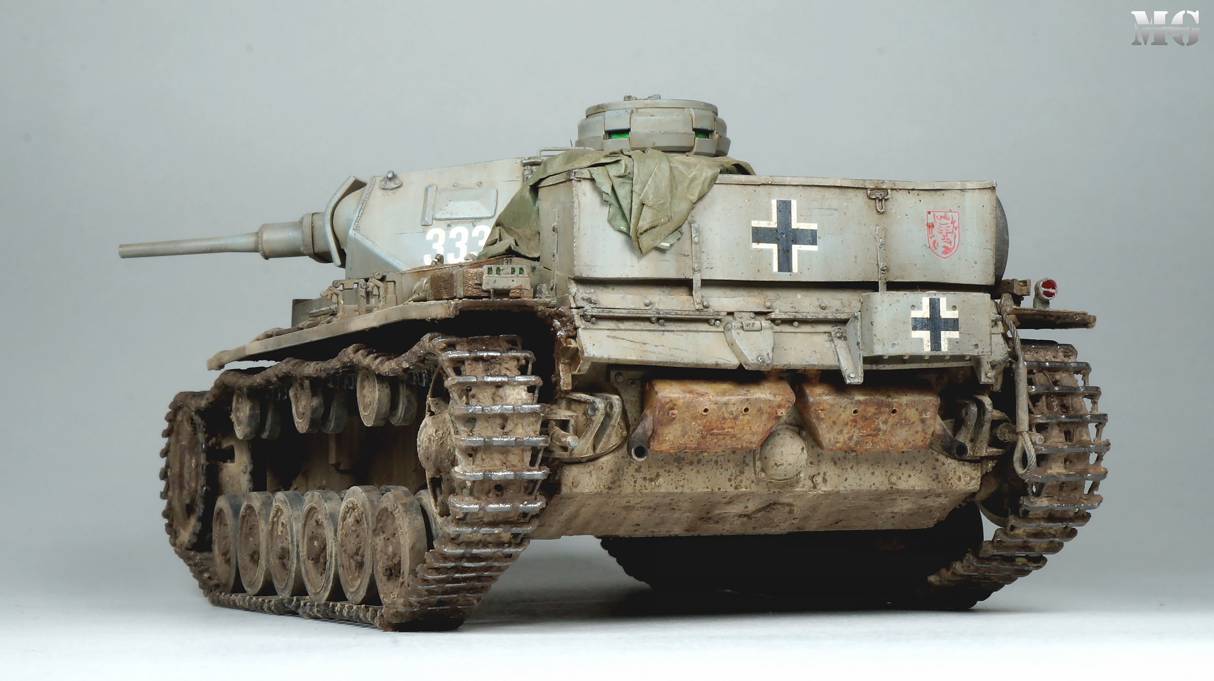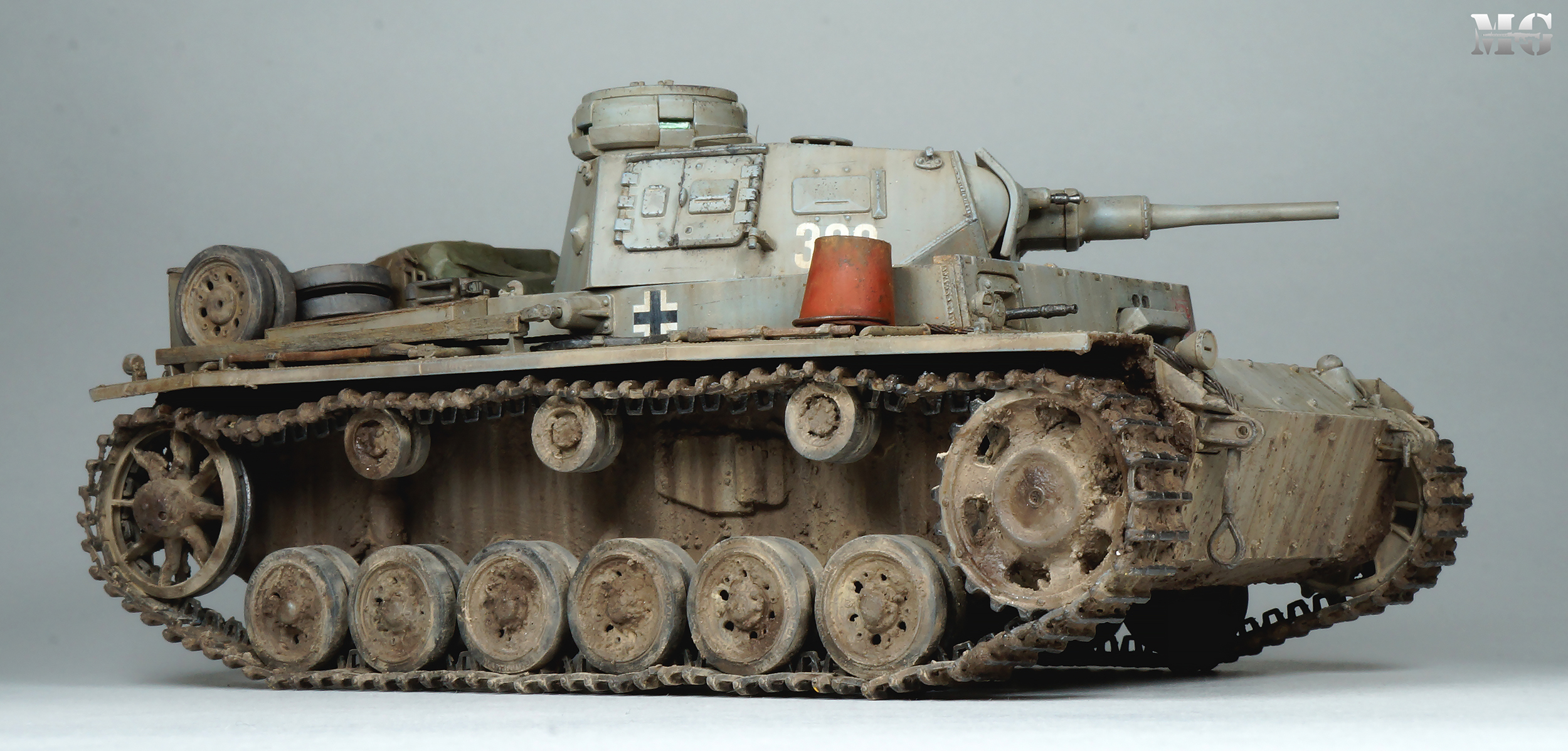 Эффектная модель в плане художки. Панцергрей, на мой взгляд, слишком светлый и Драгон так и не научился делать крепления для шанцевого инструмента. Их надо менять на травление.