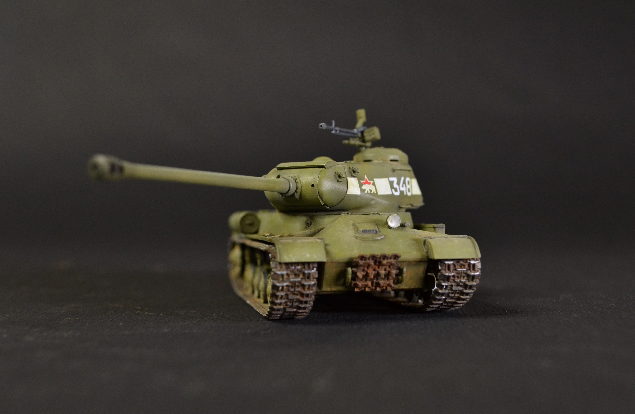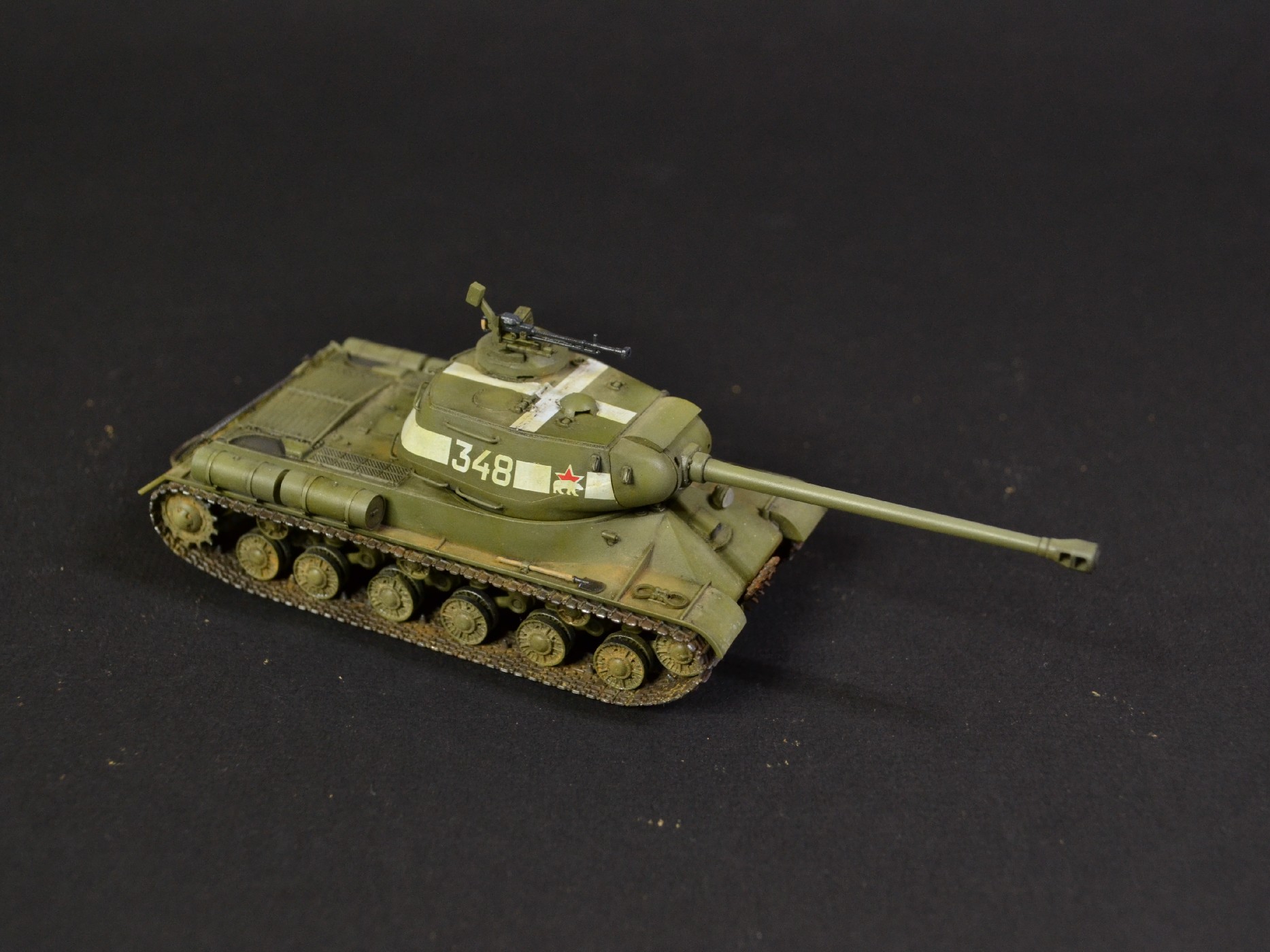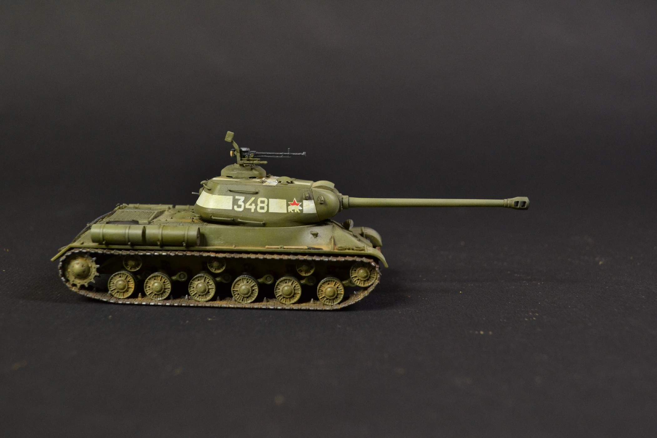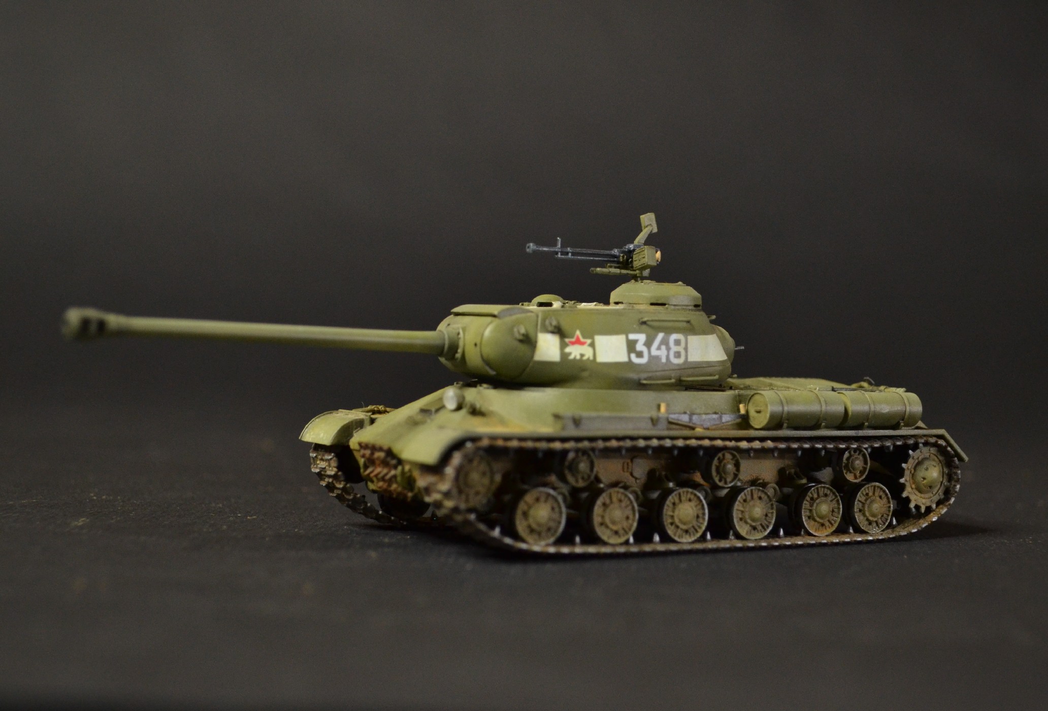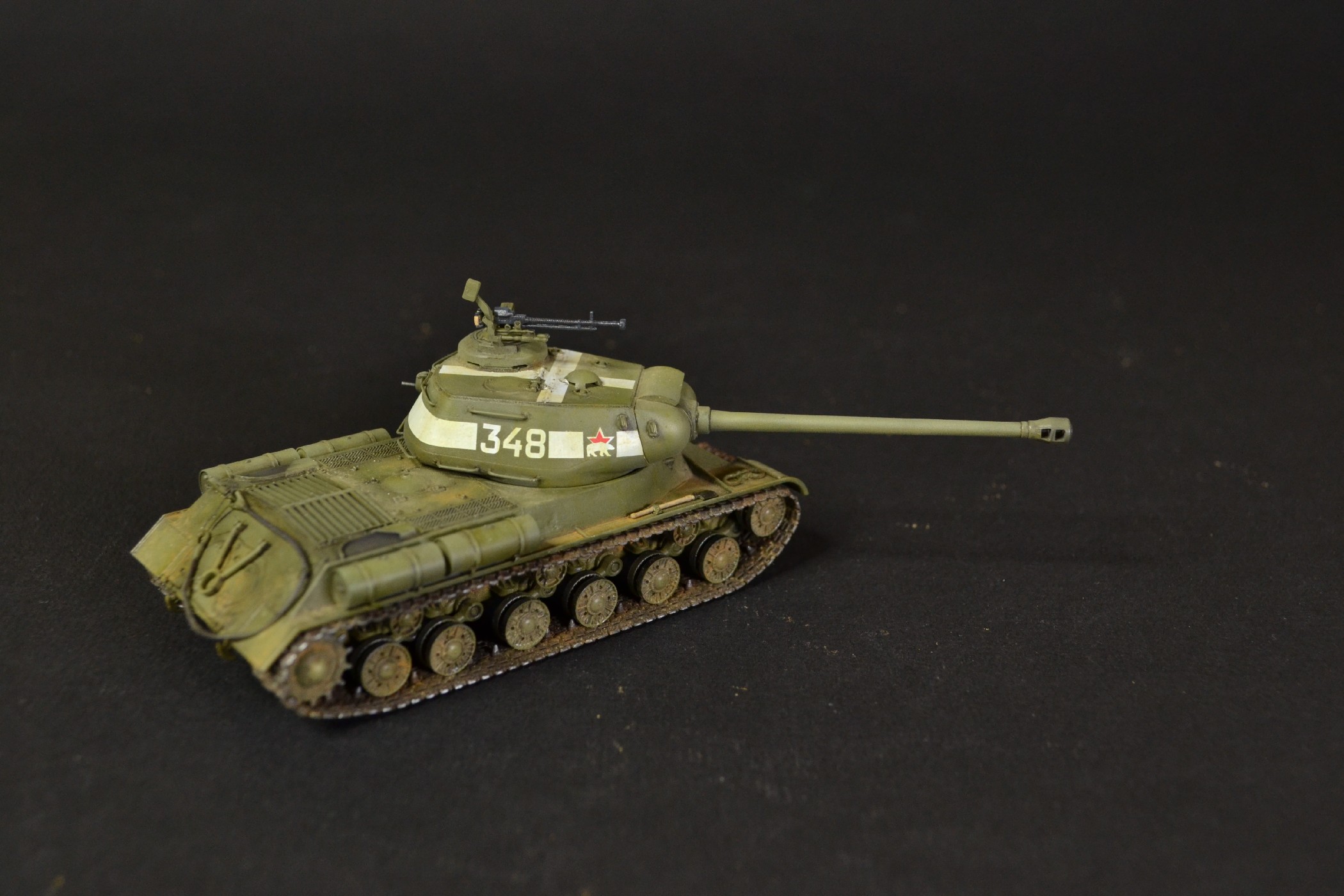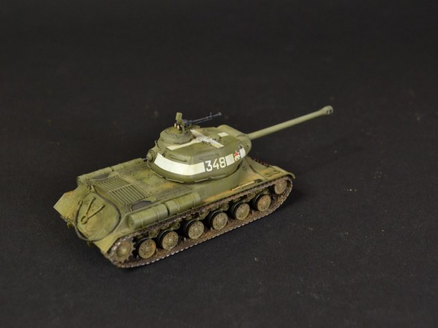 Чтобы отвлечься от 35 масштаба собрал ИС-2 в 1:72 от Звезды (арт. 5011). Сборка изкоробки, добавил только поручни из проволоки на башню и остекление фары из обточенного стразика. Гусеницы собрал отдельно, устанавливал уже после покраски. Поддерживающие катки не хотели садиться на свои места, поэтому пришлось срезать с них штырьки и приклеить как уж сели. Внешне это почти незаметно.