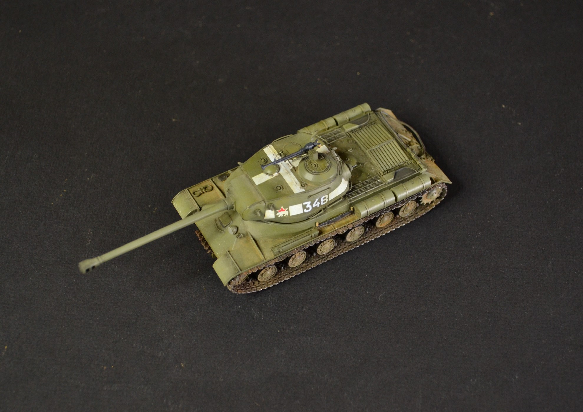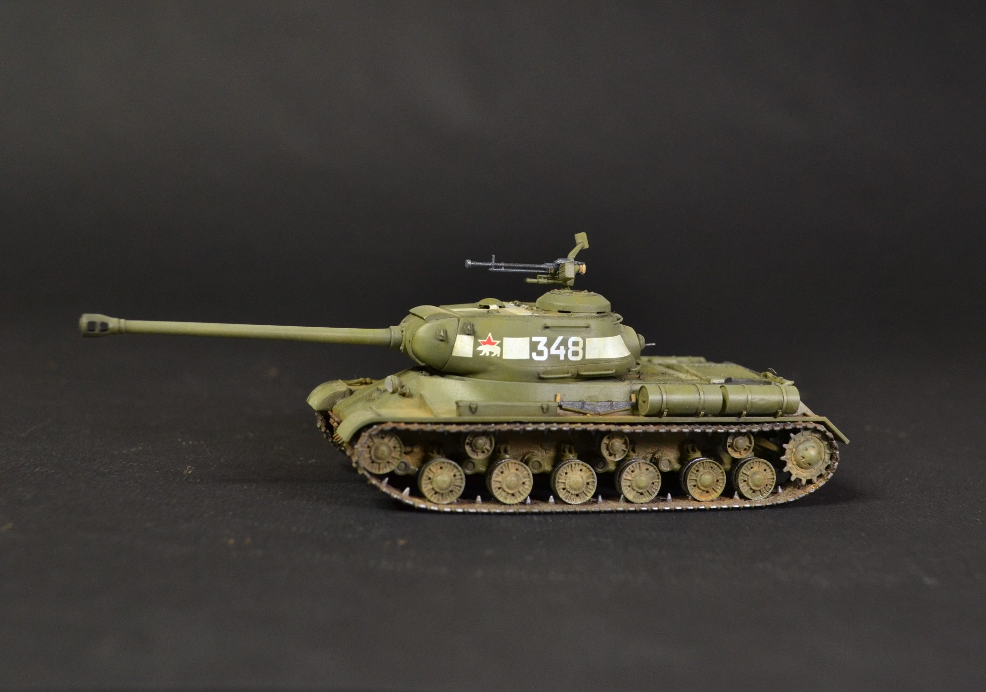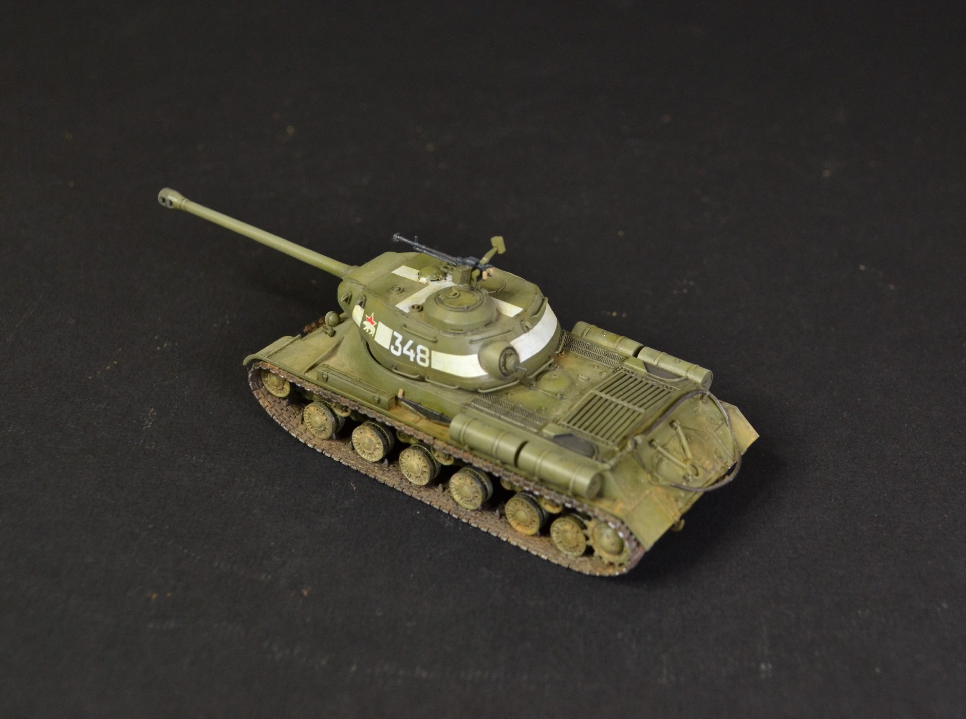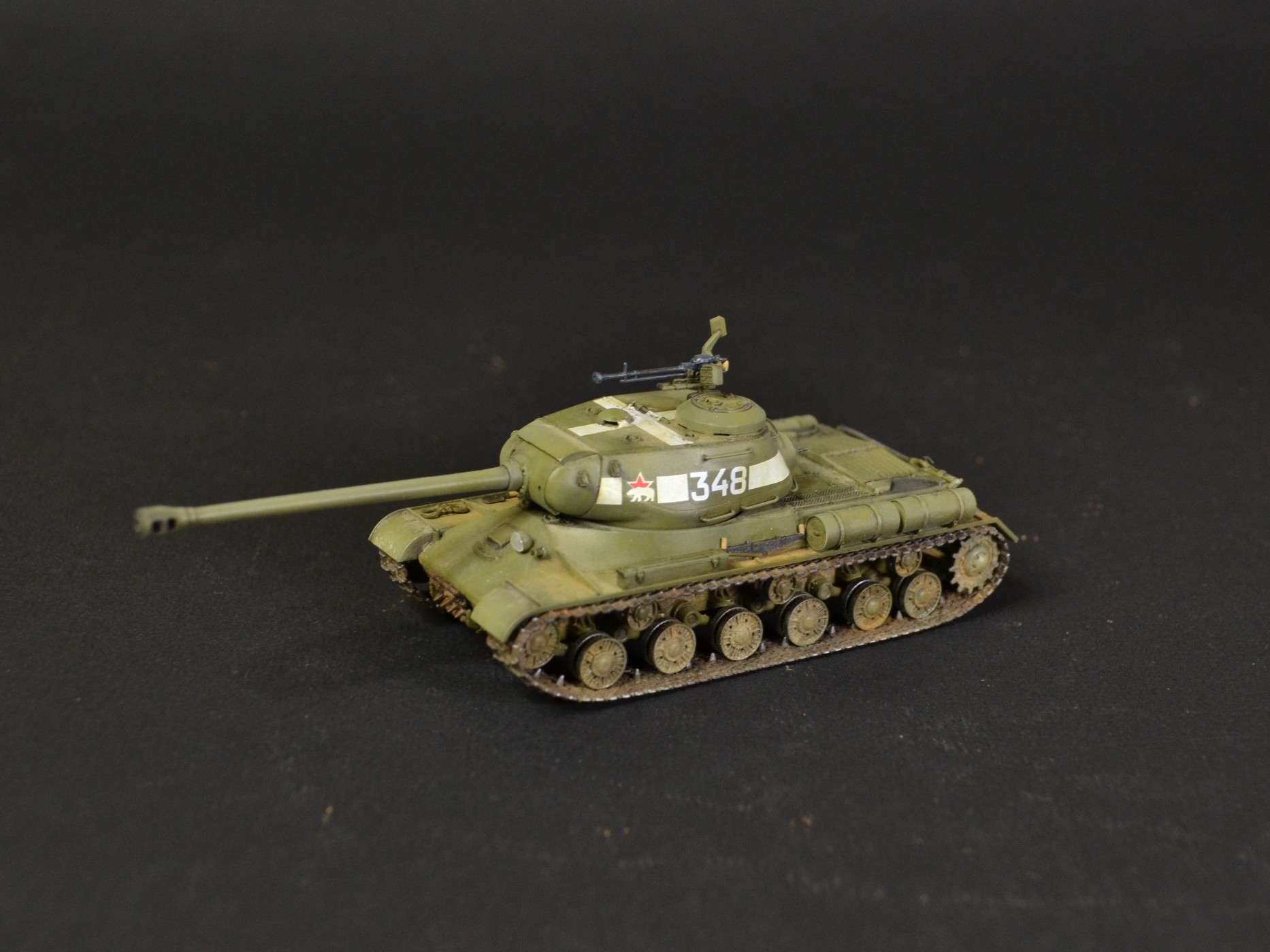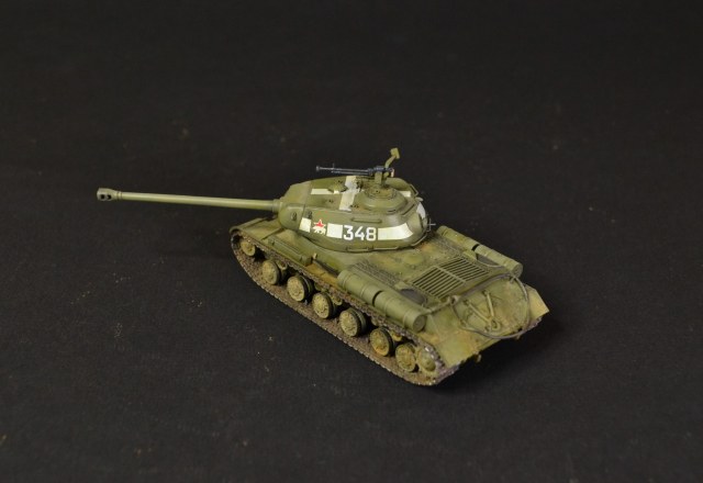 Чтобы отвлечься от 35 масштаба собрал ИС-2 в 1:72 от Звезды (арт. 5011). Сборка изкоробки, добавил только поручни из проволоки на башню и остекление фары из обточенного стразика. Гусеницы собрал отдельно, устанавливал уже после покраски. Поддерживающие катки не хотели садиться на свои места, поэтому пришлось срезать с них штырьки и приклеить как уж сели. Внешне это почти незаметно.
