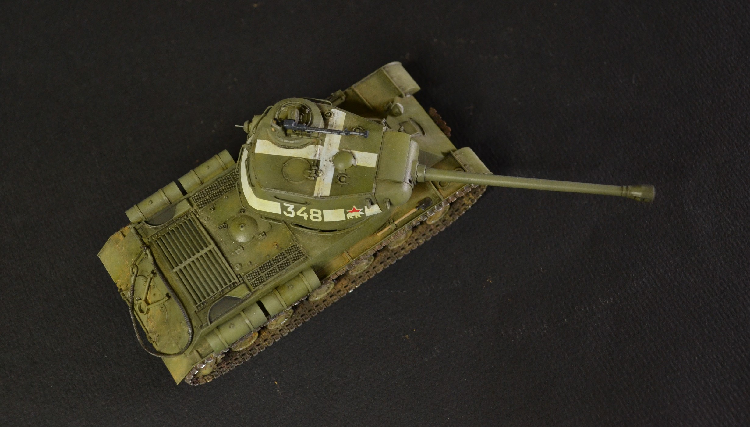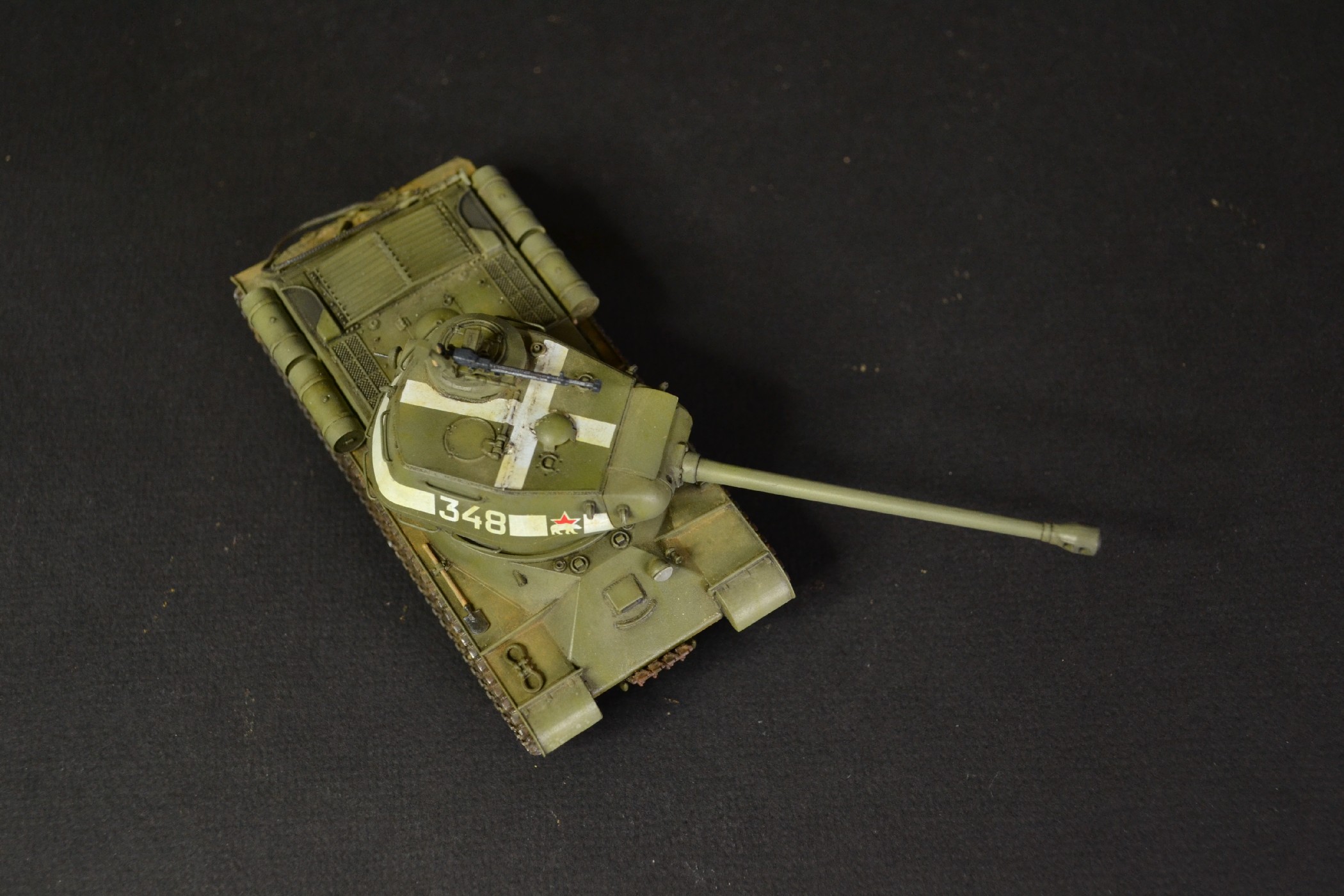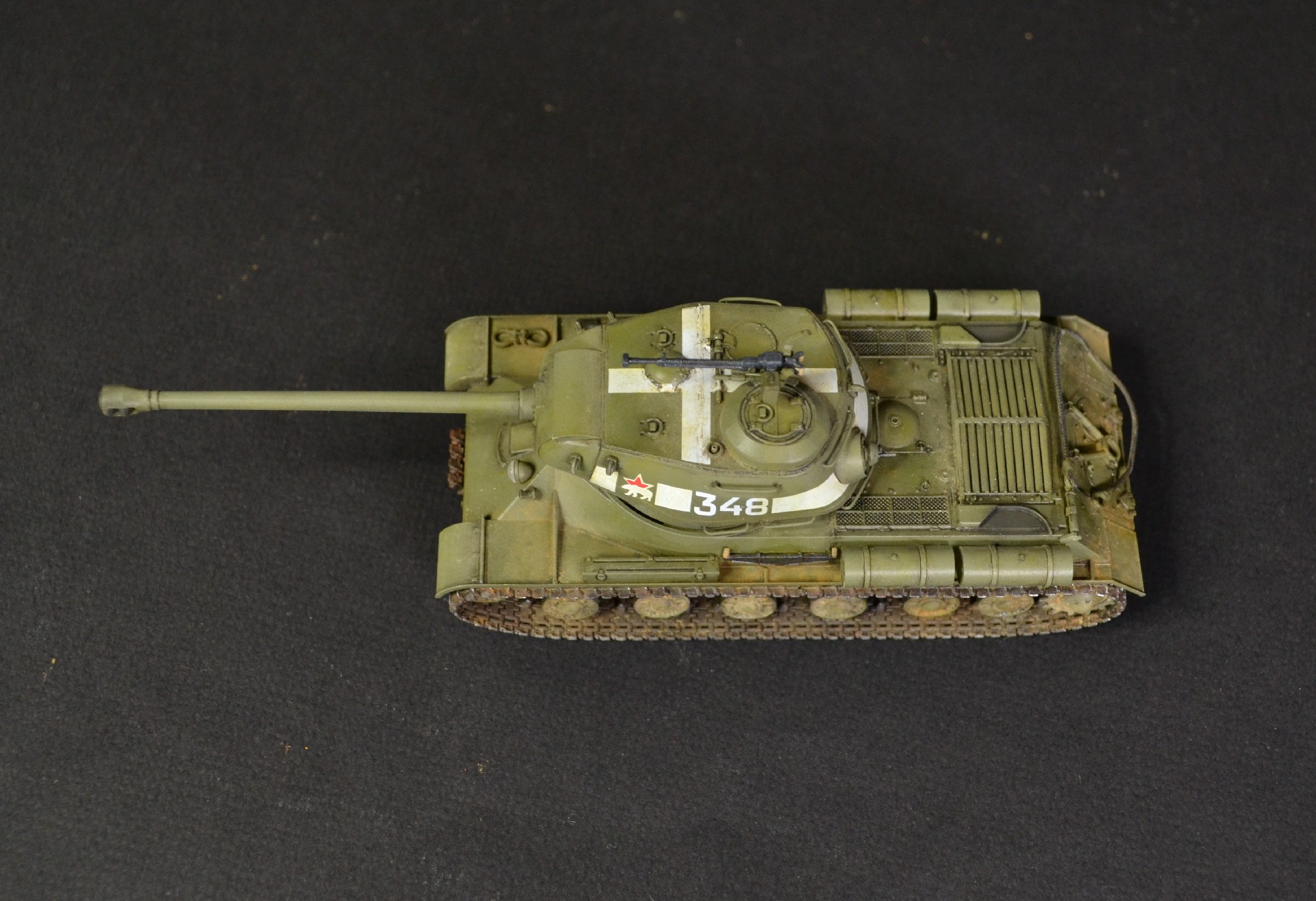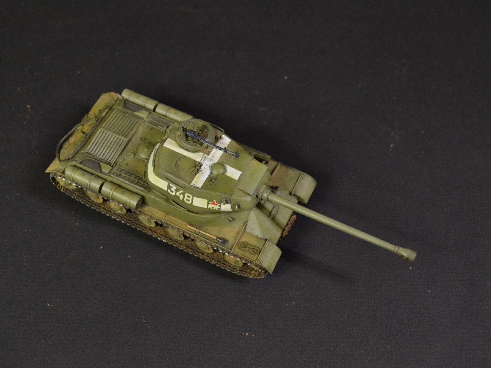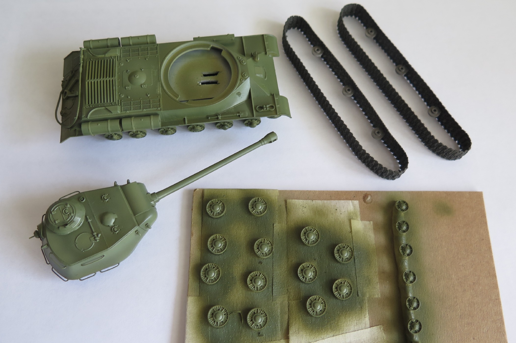 Чтобы отвлечься от 35 масштаба собрал ИС-2 в 1:72 от Звезды (арт. 5011). Сборка изкоробки, добавил только поручни из проволоки на башню и остекление фары из обточенного стразика. Гусеницы собрал отдельно, устанавливал уже после покраски. Поддерживающие катки не хотели садиться на свои места, поэтому пришлось срезать с них штырьки и приклеить как уж сели. Внешне это почти незаметно.