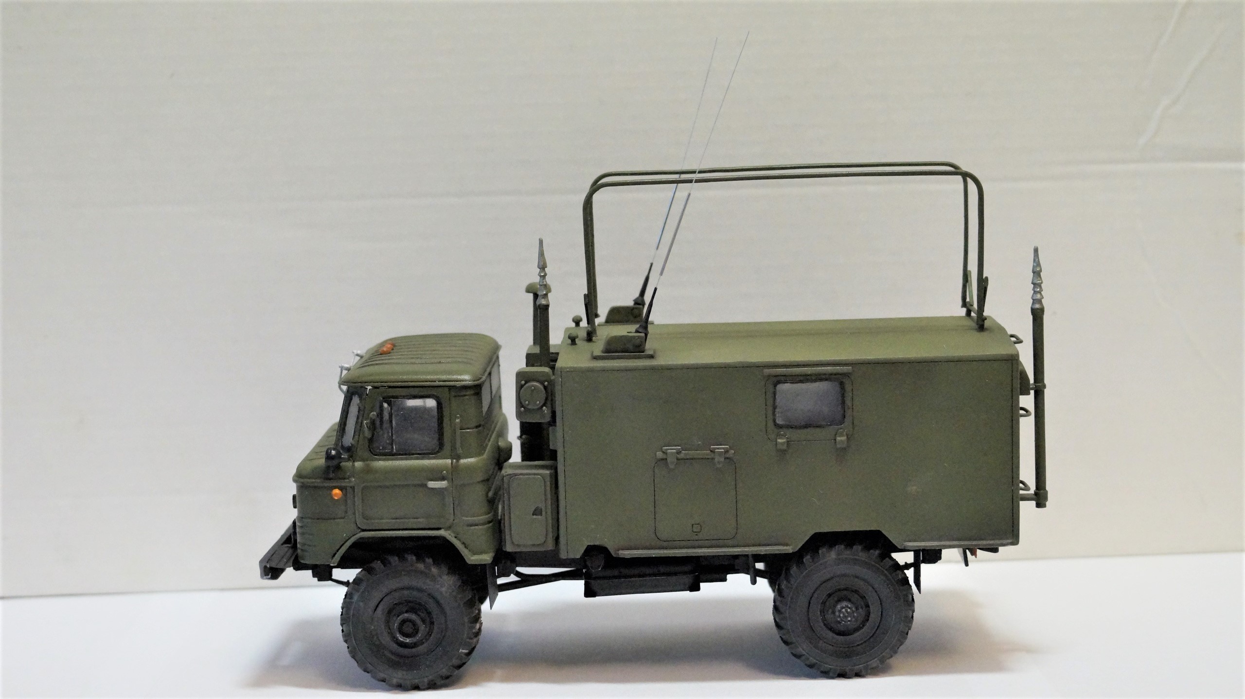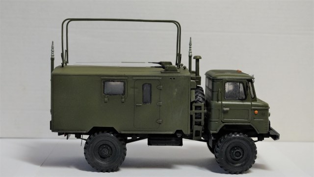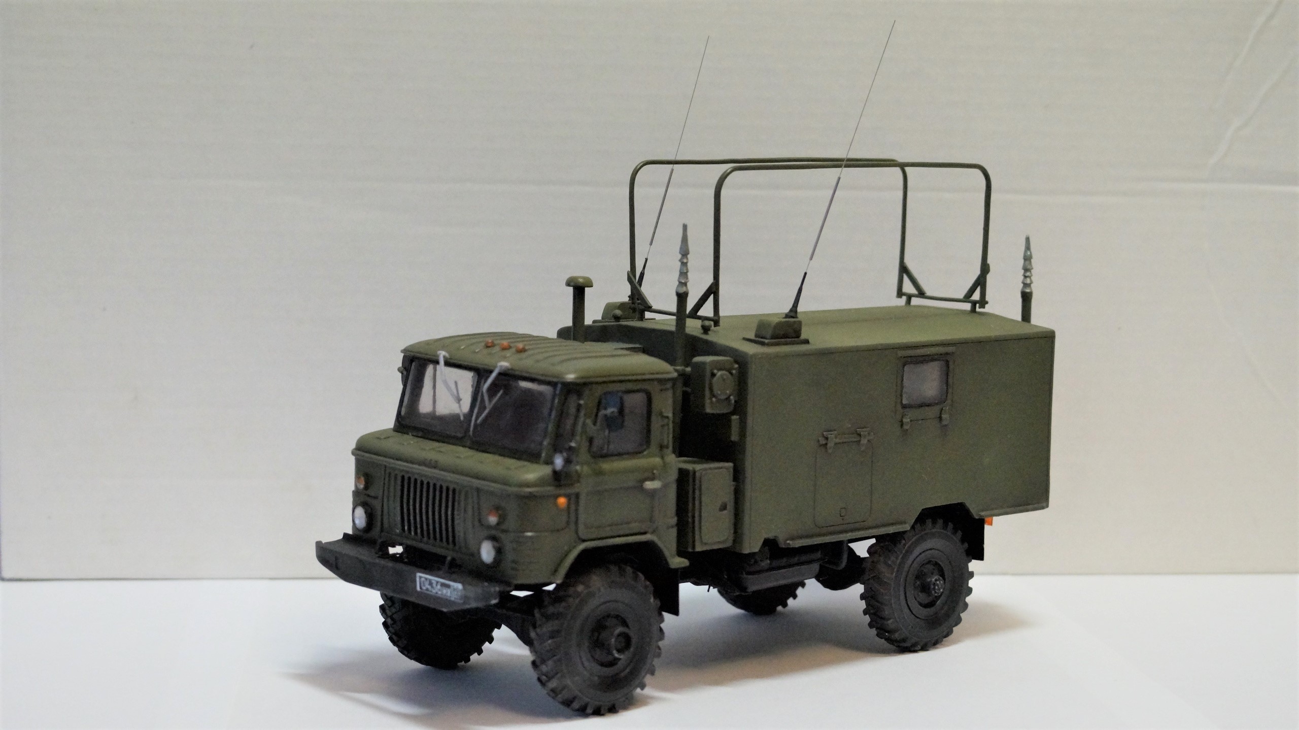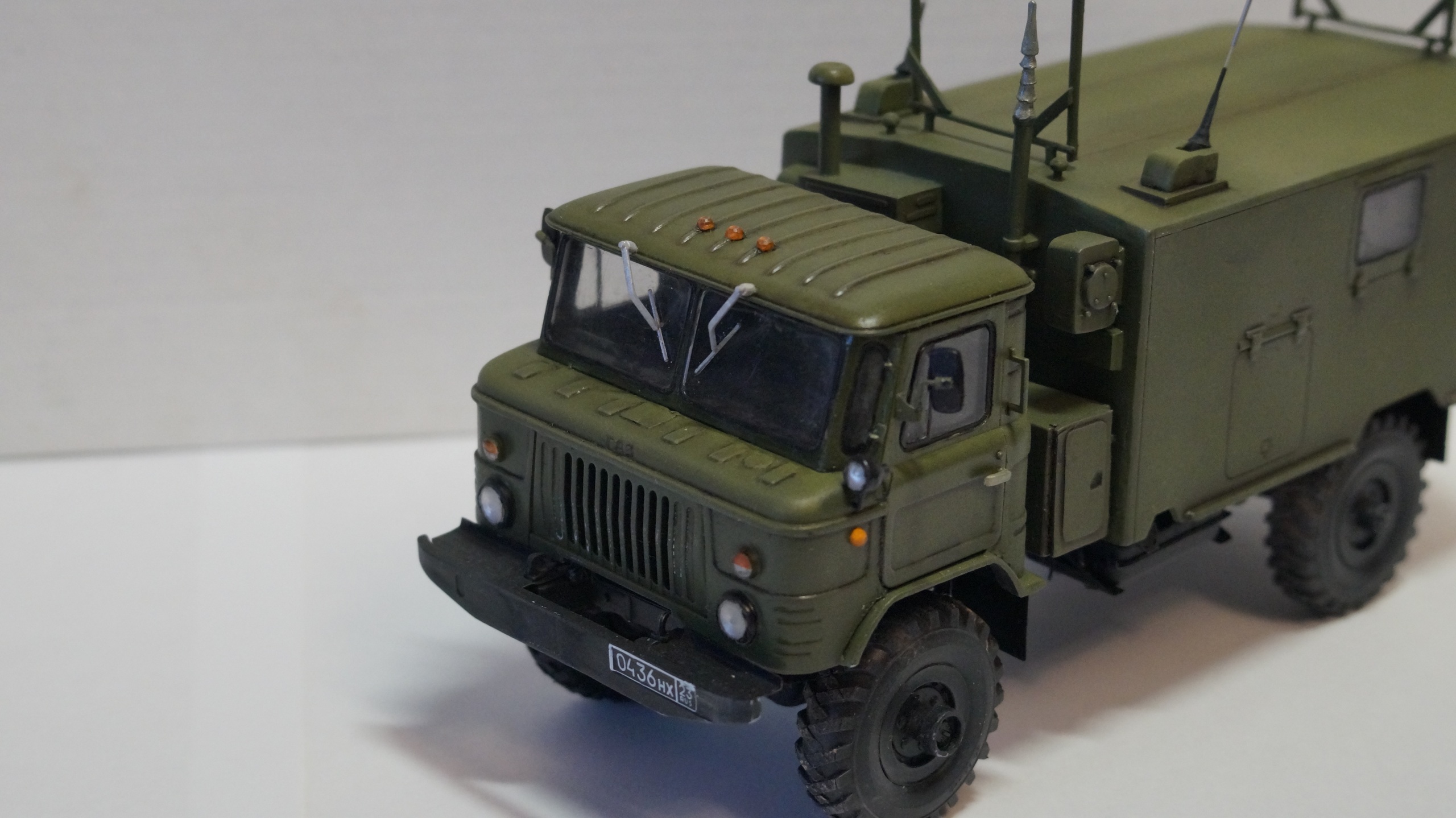 Собрал очередную модель - Р-142Н (ГАЗ-66) от "Восточного экспресса". Так как это вторая моя модель ГАЗ-66 от данного производителя, то в этот раз сборка прошла куда лучше. Даже кабина подвижная. В процессе сборки понял, что не следует собирать кунг по инструкции. Если клеить прибамбасы, что между ним и кабиной точно по местам, указанным в ней, то тогдазапаска не даст поставить кунг на раму. Как вариант - нафиг запаску, видел фото, есть варианты КШМ без нее. Также, опять же, согласно инструкции, на модели два ящика для ЗИПа, один собирается в рамках сборки кронштейна (или как он там называется) для запаски, а другой - в рамках сборки кунга. Получается, что один лишний. При сборке использовал фототравленку от "Микродизайна". Места установки фар рассверлил и вставил туда стекла фар и отражатели от «Elf». Передние поворотники срезал и вставил вместо них уменьшенные в диаметре стекла от фар из родного набора. Задние поворотники самодельные, вырезал из прозрачного ПВХ прямоугольники и раскрасил их цветными лаками от "ZIP". В качестве габаритных огней кабины использовал, предварительно обработав, маленькие пластиковые камушки из мозаичного набора для детей. Также, по мелочам, сделал дополнения: поручни сзади кунга из проволокипровод от боковой фары в кабину, обточил телескопические антенны, поставил антенны от "Magic Models". При тонировании делал прешейдинг модели. В базовый цвет красил краской от «Акана», ходовую часть - от «AK Interaktive». Смывку, лак и пигмент для запыления для передних поворотников использовал также от «AK Interaktive». Глянцевый и матовый лаки – от «MR Hobby». Получился, конечно, далеко не шедевр, однако, в целом я доволен результатом работы. Жаль, что фотографии получились так себе, но с освещением у меня просто беда.