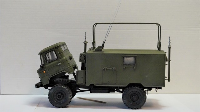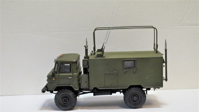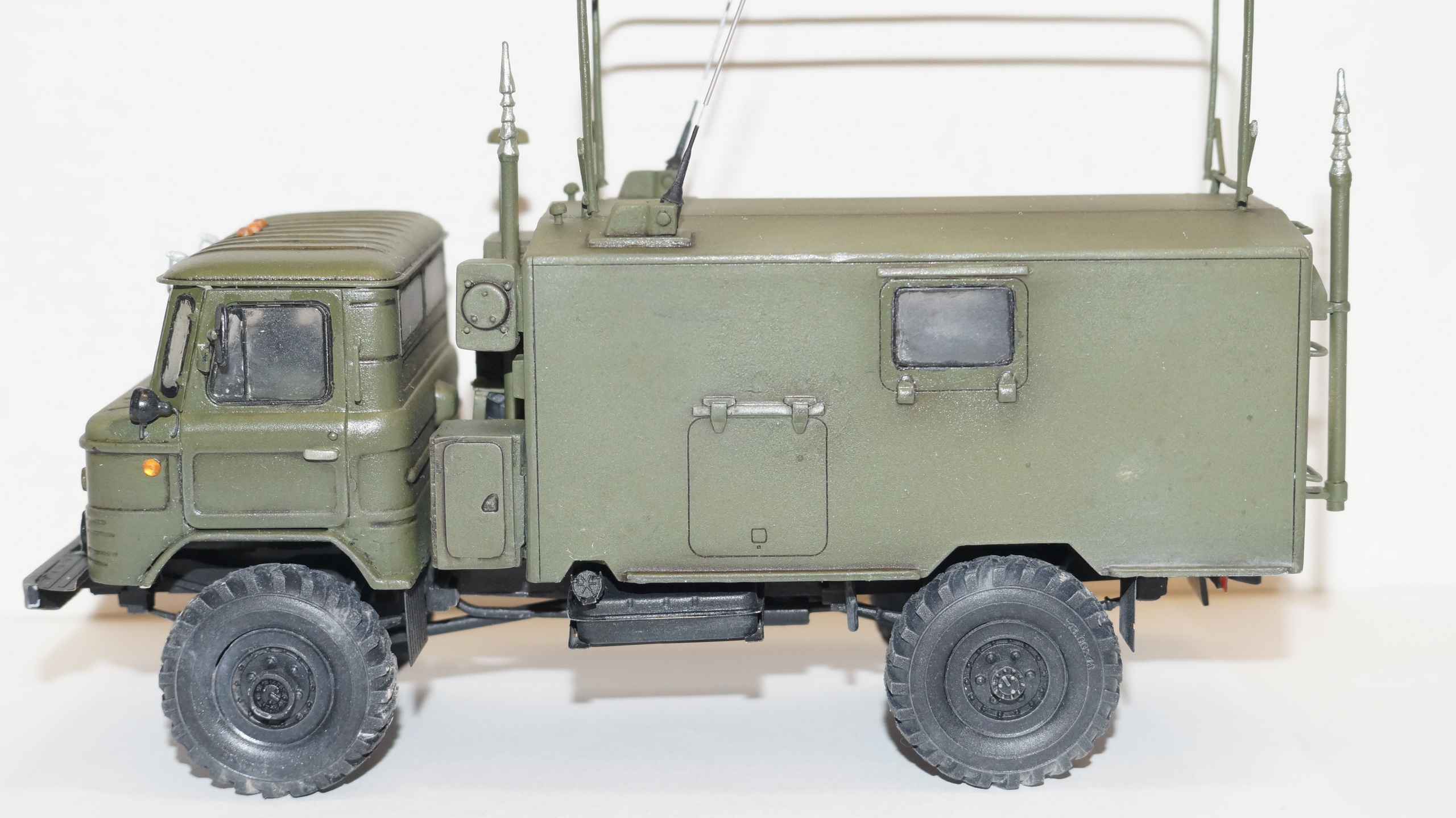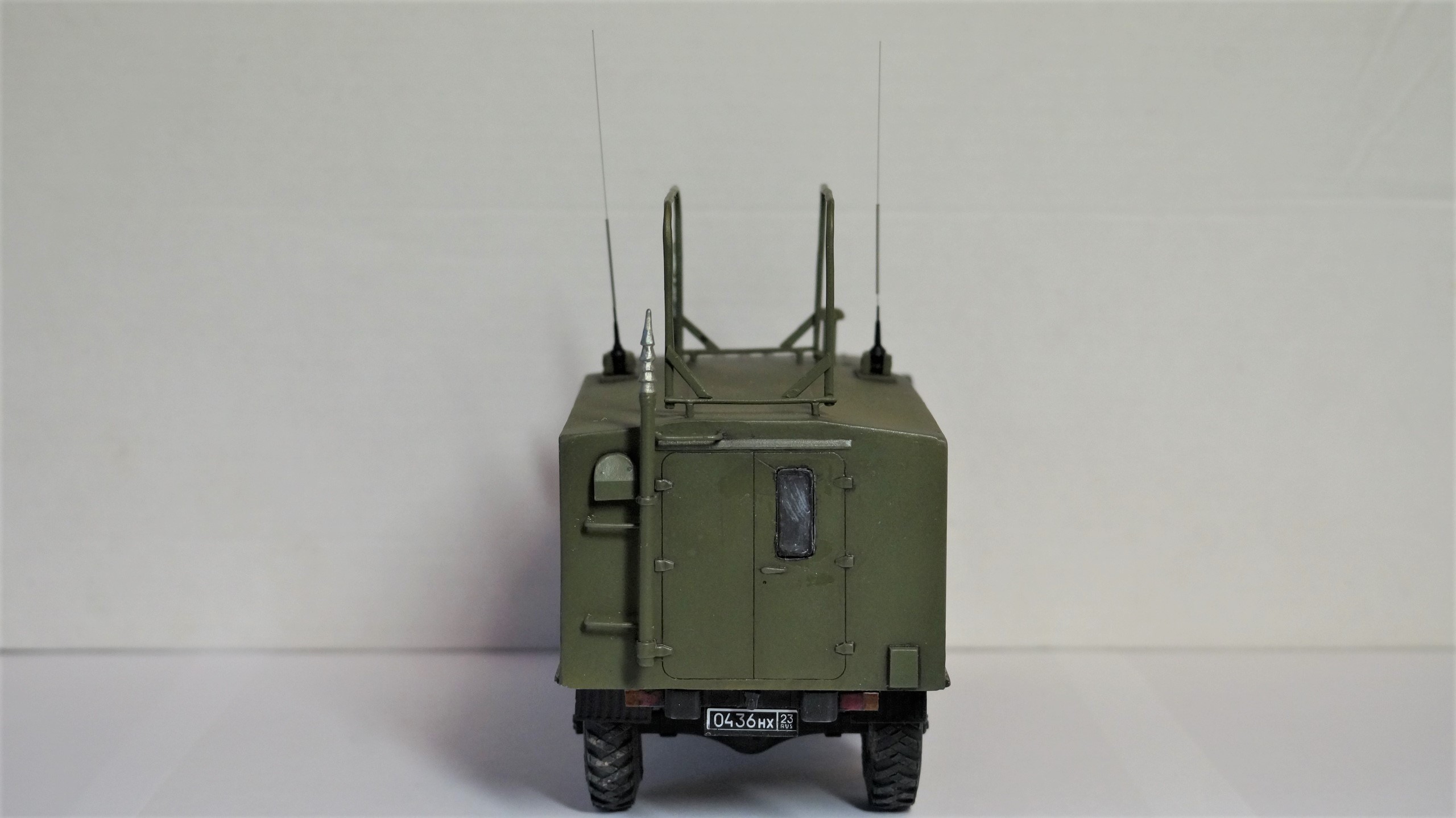 КШМ-ка ПОХОЖА, но есть не много не точностей. Я я два года отколесил на этом чудовище по дорогам германии 83-85. Мачты опускались гораздо ниже и и в походном были зачехленные.Сам кунг , это две изолированные зоны. Первая, это отсек для двух (радистов-связистов), 6-8 радиостанций гермо перегородка и отсек для (ОСОБЫ) с двумя полками ПОД КОТОРЫМИ НАХОДИЛИСЬ ЯЩИКИ С НЗ как у купе СВ, ОТКИДНОЙ СТОЛИК... Так вот на крыше был ещё кондиционер. Не знаю как было в союзе, но в ГСВГ КШМ-142-ки были оборудованы именно с кондиционером. А ещё они более интересны в развёрнутом состоянии с мачтами,натянутым диполем, выставленным движком и на фоне стареньких 405-х, 409-х и на то время современных 412-х(Тропосфера).