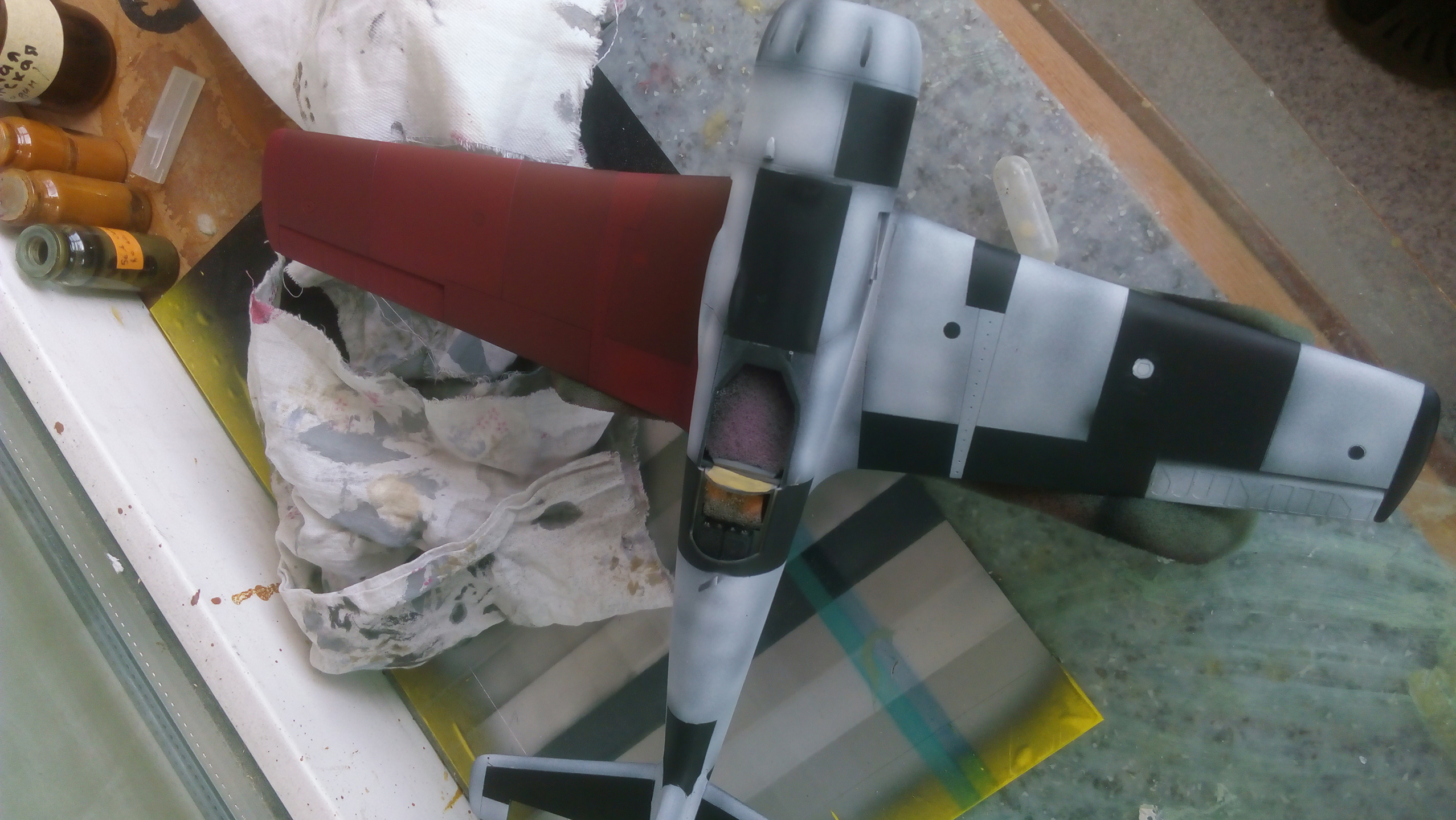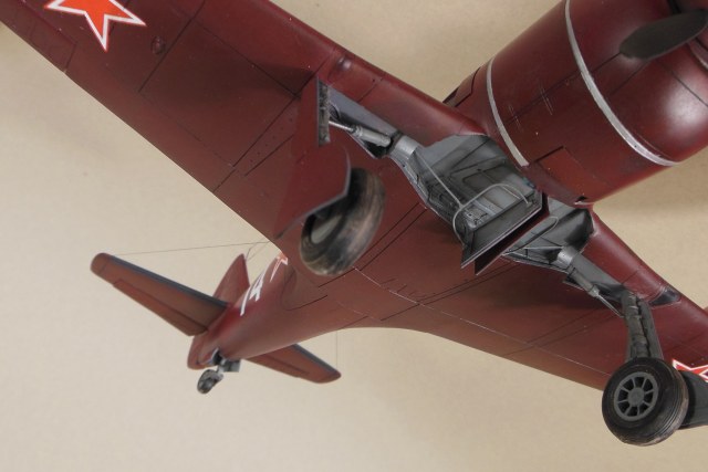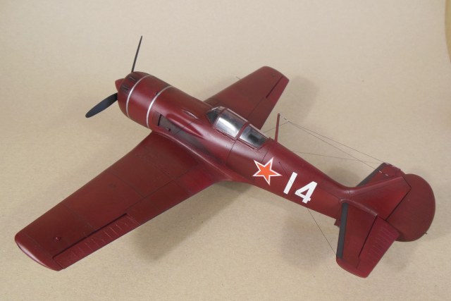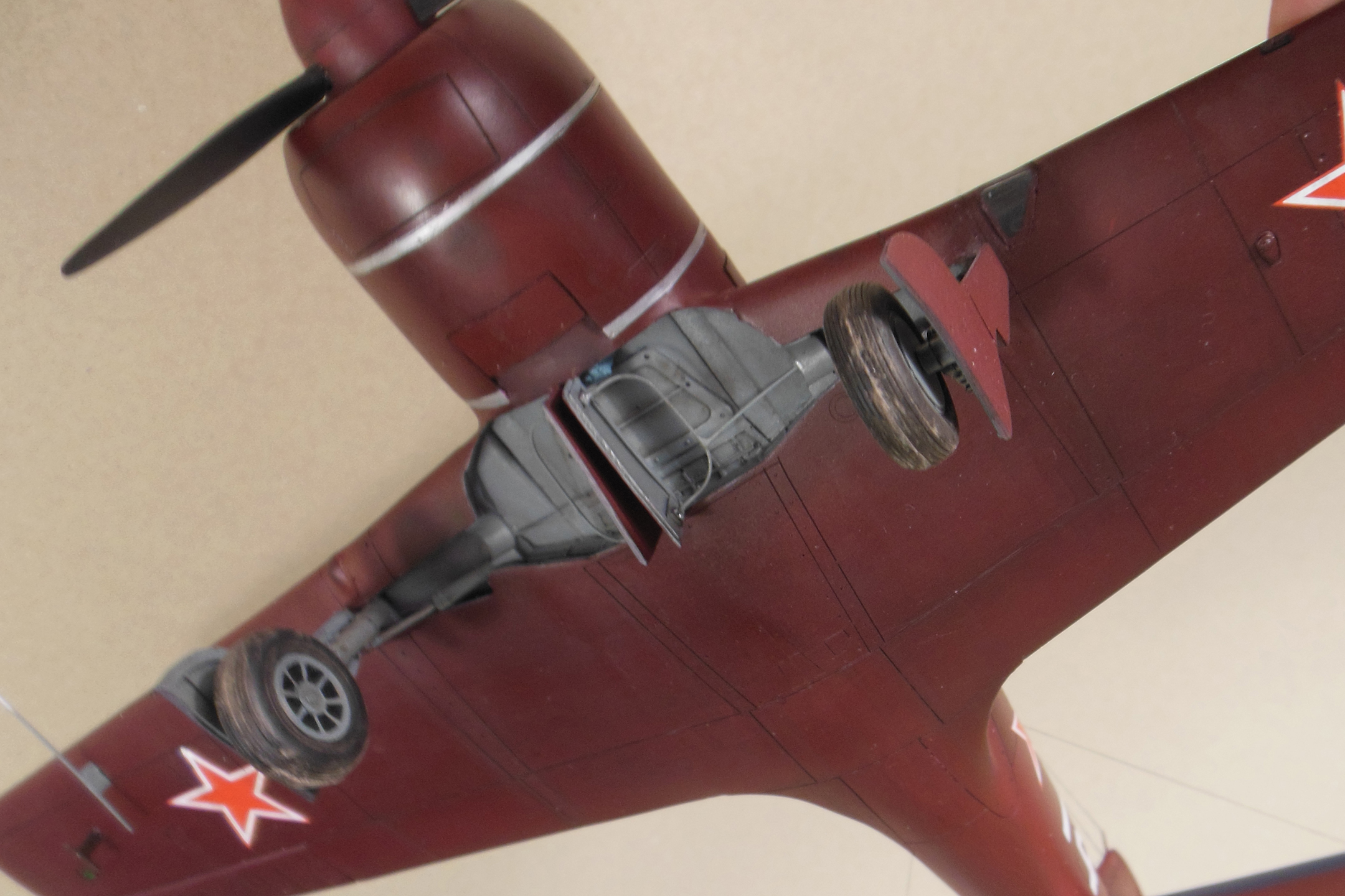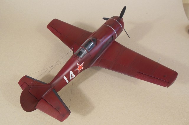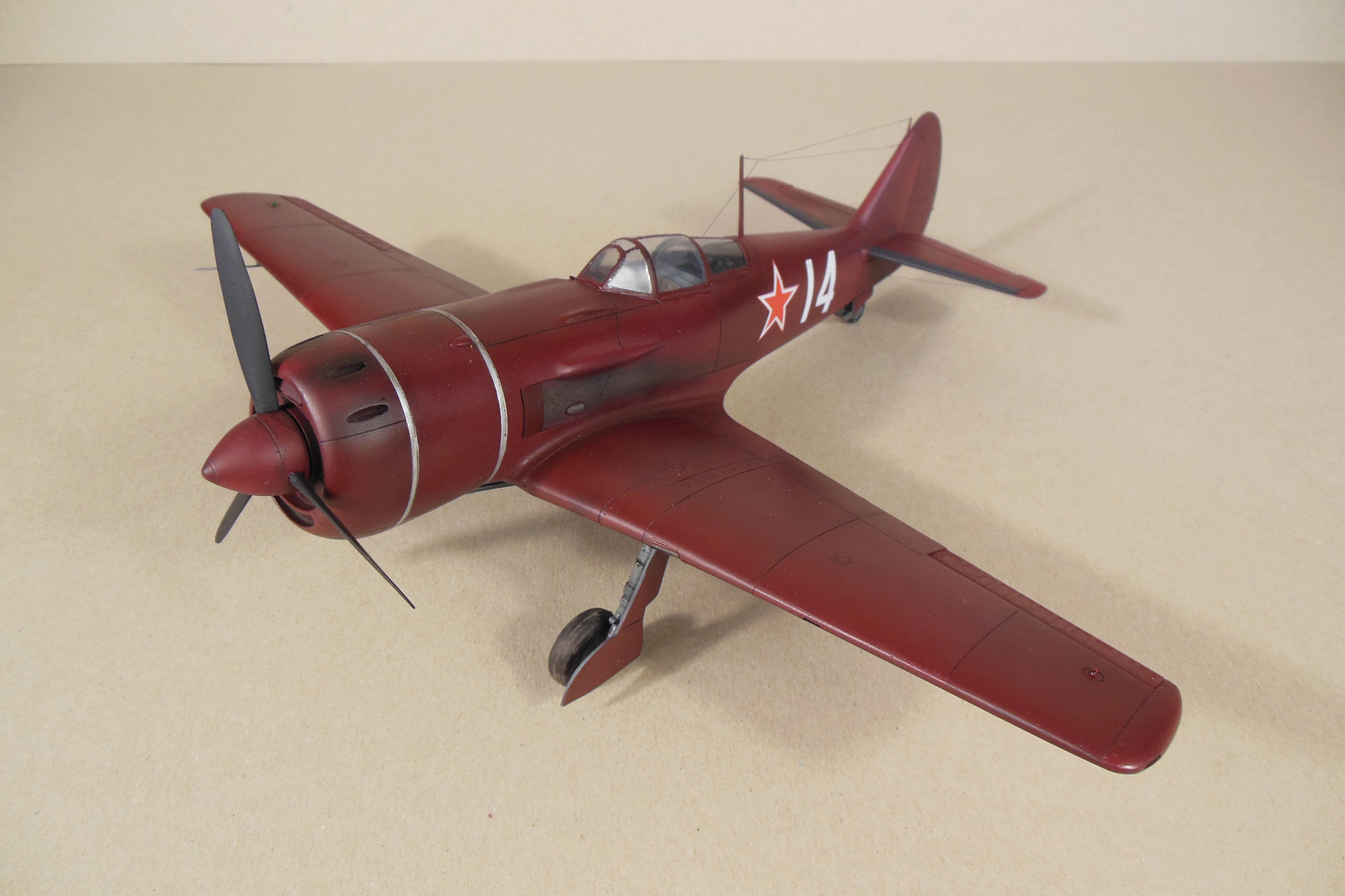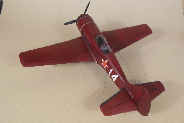 Кабина собирается моноблоком и вклеивается в фюзеляж, дается пленка с имитацией приборной доски, которую традиционно лучше сточить до приемлемой толщины, и прочее внутреннее убранство такое как кресло, прицел и т.д. Фонарь дается в двух экземплярах. Ниша также вклеивается в фюзеляж, для ее установки необходимо доработать нижнюю часть фюзеляжа. Консоли сделаны полыми для облегчения конструкции, также в них делаются вырезы для установки ниш основных стоек шасси. Трудностей в сборке не возникло, все стыкуется хорошо, кое-где использовал шпатлевку. В окраске пошел по новому, не апробированному мной пути, чтобы показать как-то игру панелей планер грунтовал белой (TAMIYA) и черной (Mr.Hobby) грунтовками, а после уже окрашивал красной, которая имея слабую укрывистость просвечивала белый грунт создавая тем самым «панельный» эффект. Мачты антенны традиционно выпилены из металла для живучести, просверлен ввод в задней части фонаря, БАНО от ЭЛЬФа, стяжные ленты на капоте окраска под алюминий, в этот раз их не стал делать как на Ла-9РД из фольги, антенна – нить с имитацией изоляторов. Декаль из набора отличного качества, тонкая и хорошо переводится без применения каких-либо вспомогательных жидкостей. Для страховки дунул ее лаком. На капоте имеется характерный знак 21 завода «ЛА-11», который идет в наборе. Фотографирование проходило в два этапа, декаль «Ла-11» запорол, пришлось переделывать, поэтому первые фотки еще без нее. Несколько фото из процесса, кабины, как и от Ла-9 РД нет, извиняйте. Приятного просмотра.