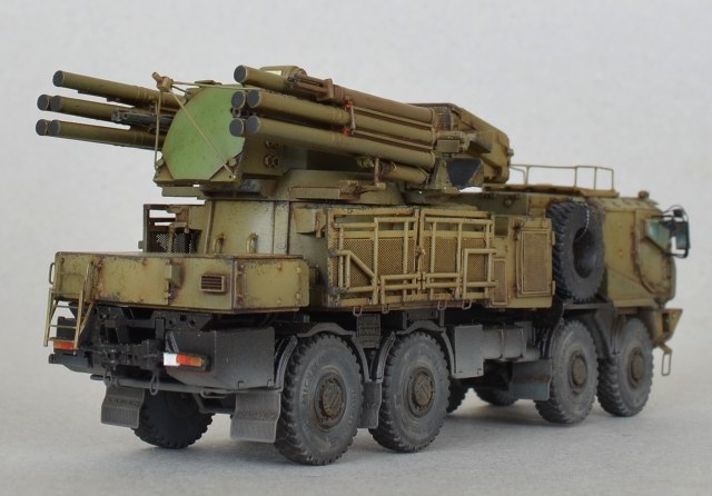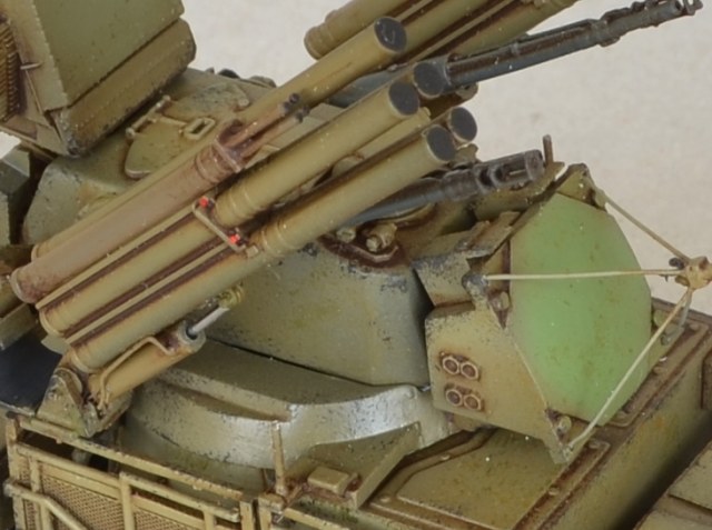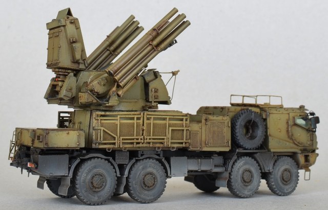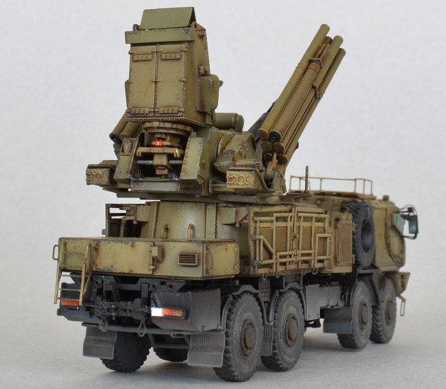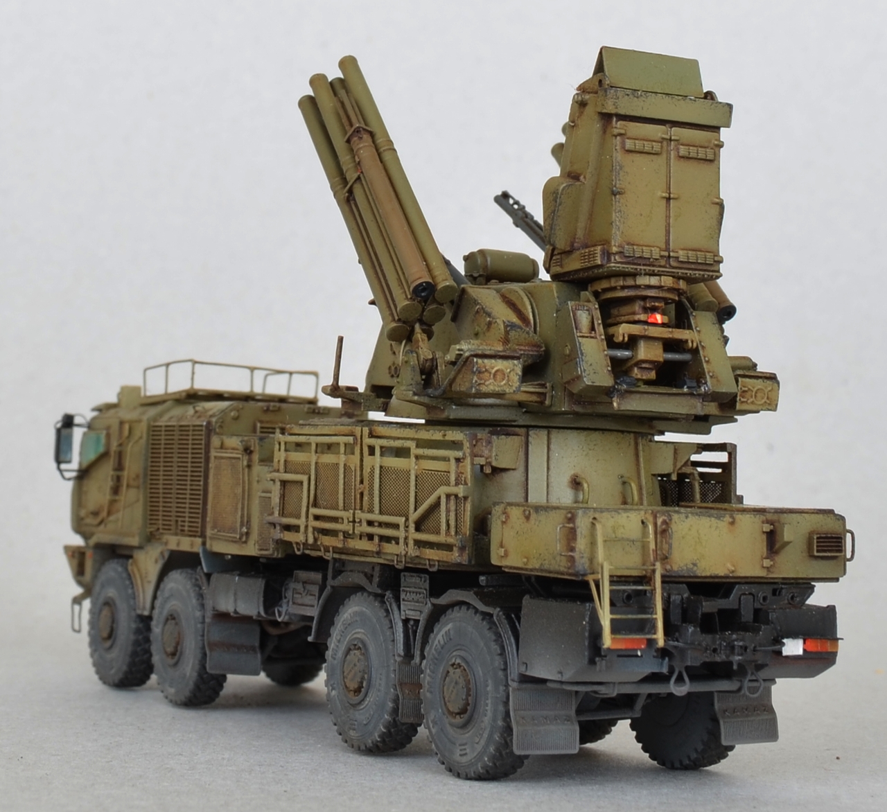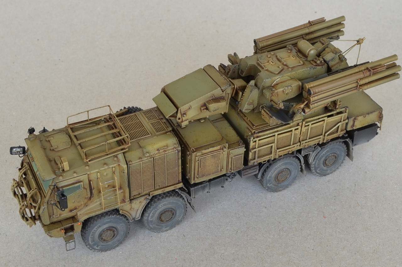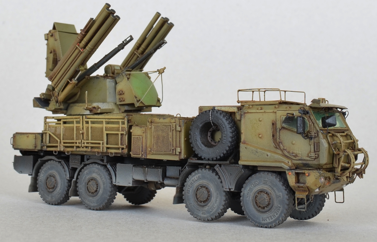 - Всем добрый день.Еще один Панцирь от W-Model .Собирается все неплохо.Из минусов набора это отсутствие остекления и упрощенная ходовая сетки могли бы быть травленые а так пришлось их заменять .Так же сделал рабочим механизм подъема ракетной установки и антены.Ручки изготовил из проволки.Стекло из зеленой пленки.