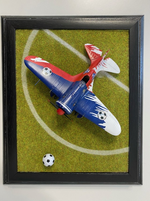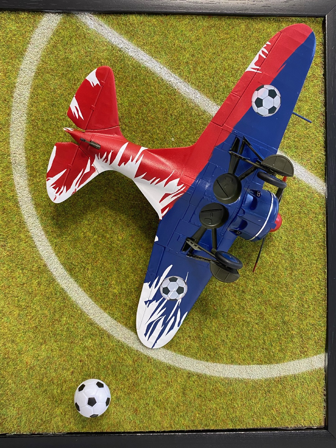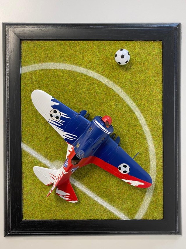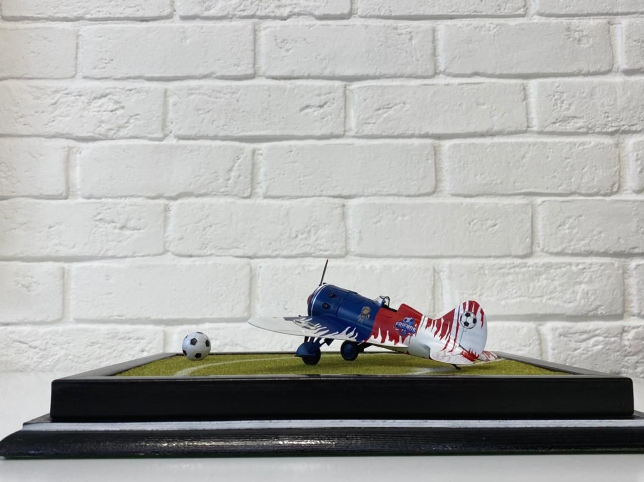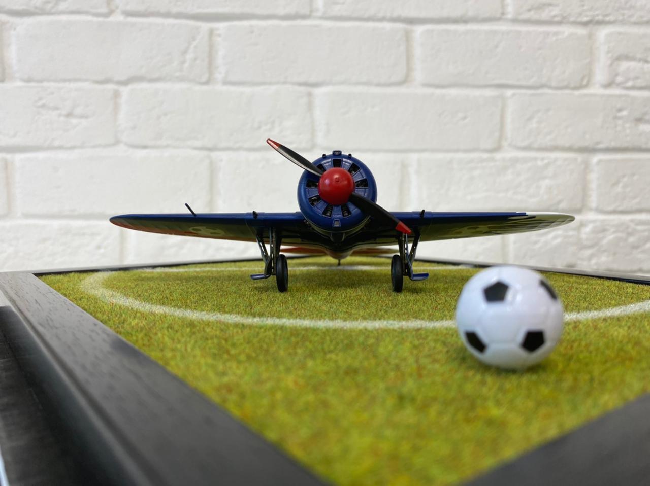 У одного из наших коллег были заказаны декали. Представленные цвета являются парадными для этого клуба, есть еще домашние и выездные. Самолет также сделан парадным, чистым и блестящим. Матчасти не ищите, ее нет. Для сохранности изготовлена подставка с искусственной травой и заказан стеклянный колпак.